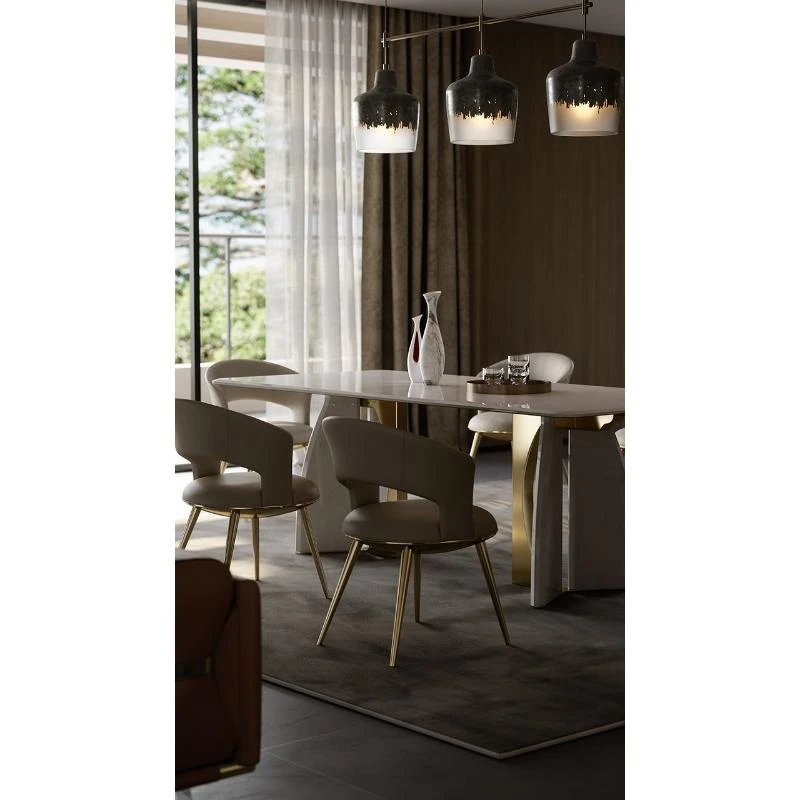 ダイニングテーブル/2.0M/カリアイスストーン/シャンパンゴールド