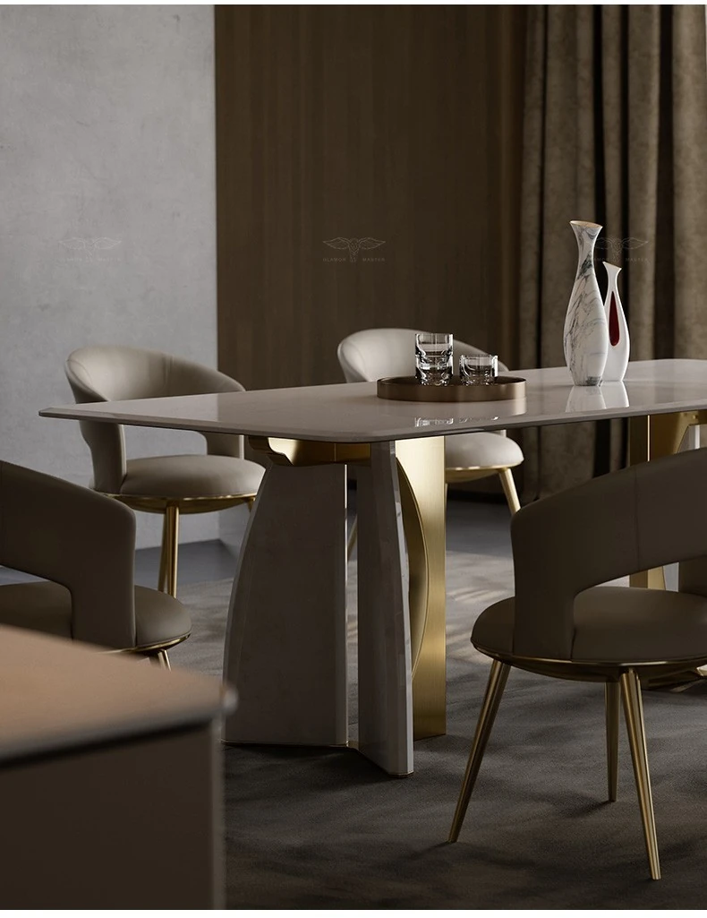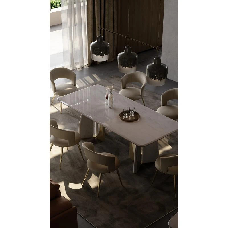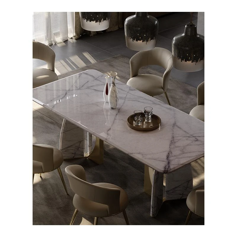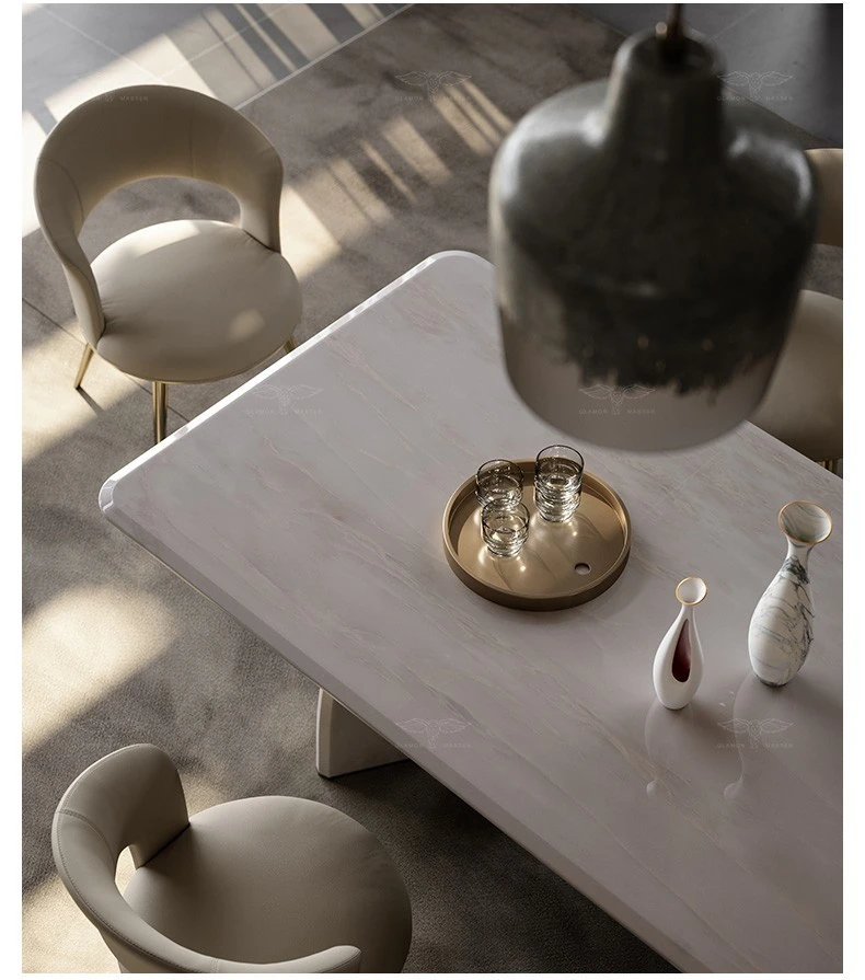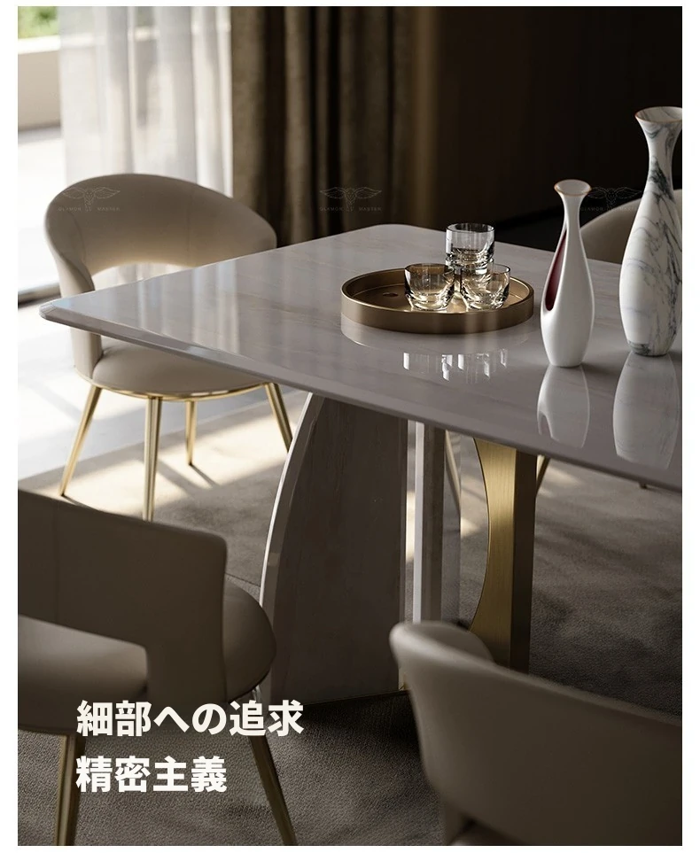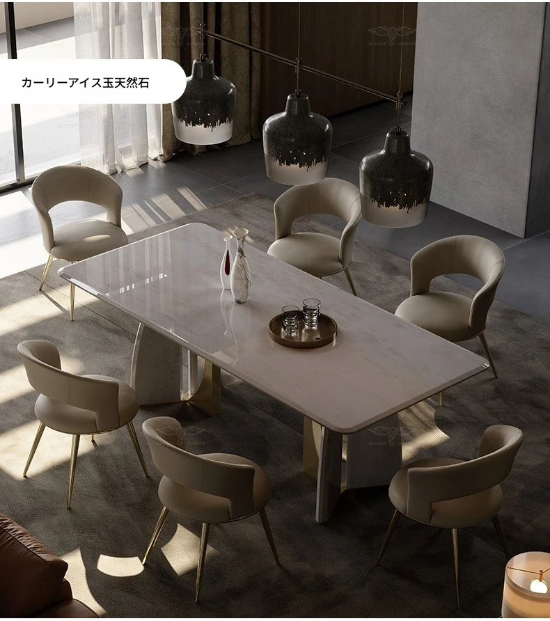 洗練されたモダンな天然大理石ダイニングテーブル - ヴィラや広々とした空間にぴったりのデザイナー新作長方形テーブル。高級感と機能性を兼ね備えた一品で、食卓を華やかに演出します。