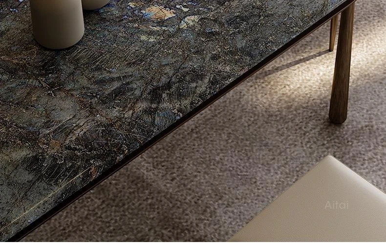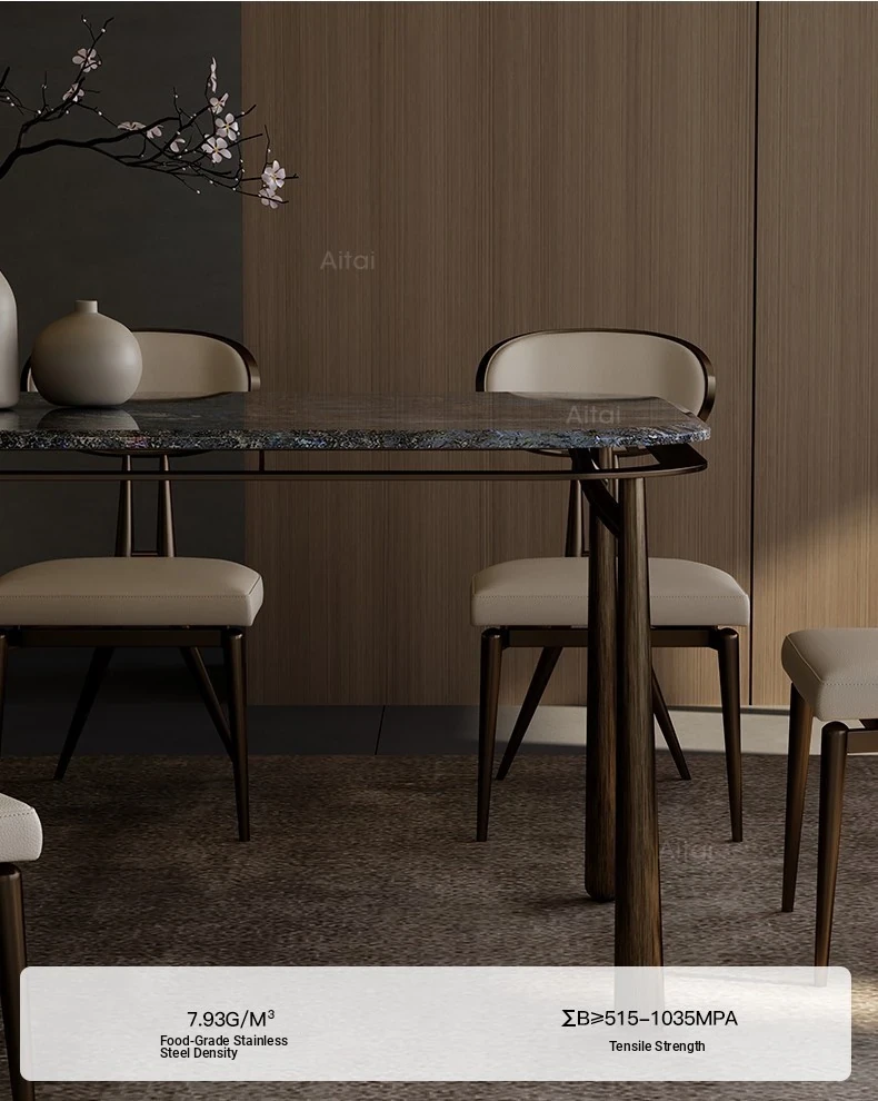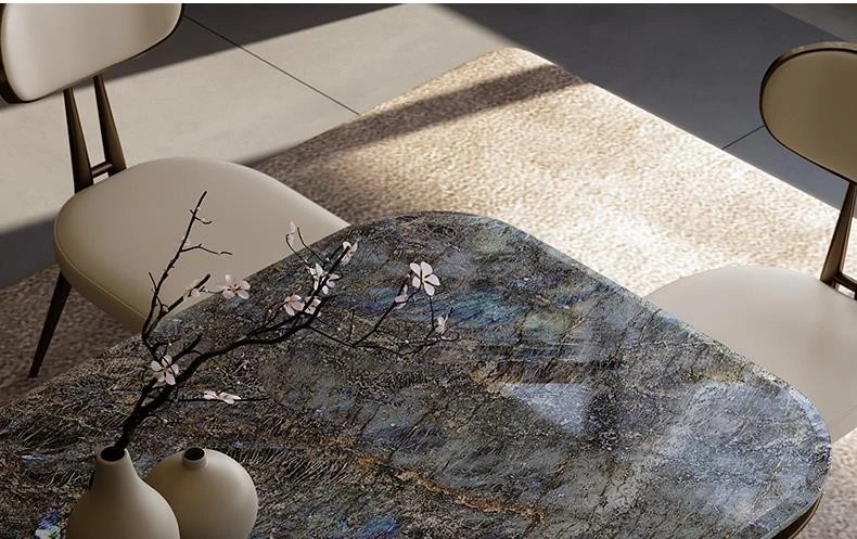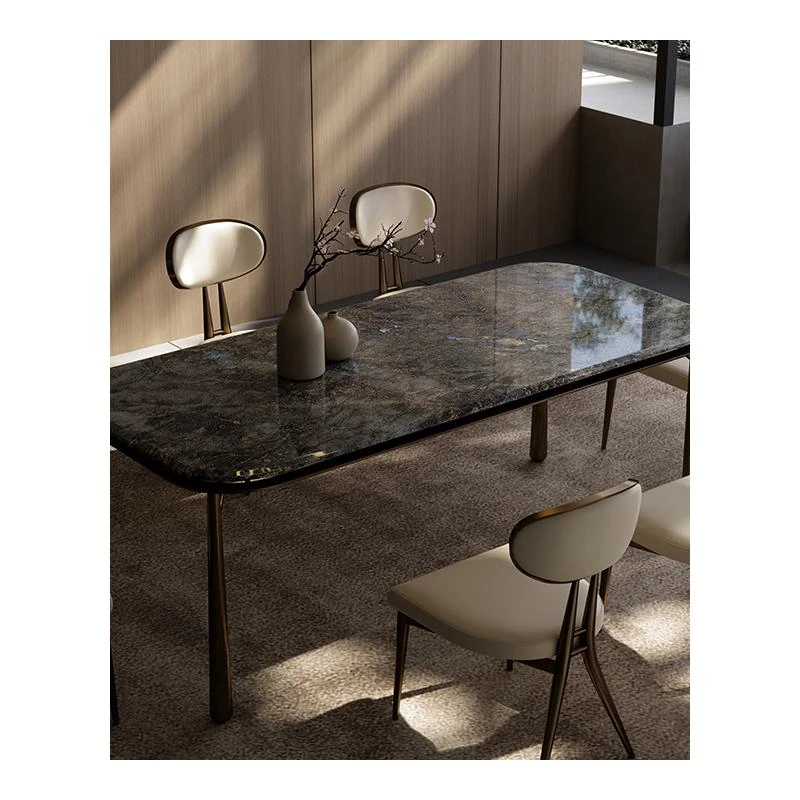 Elegant Natural Marble Dining Table Set - Modern Minimalist Long Dining Table with Four Chairs for Luxurious Dining Experience