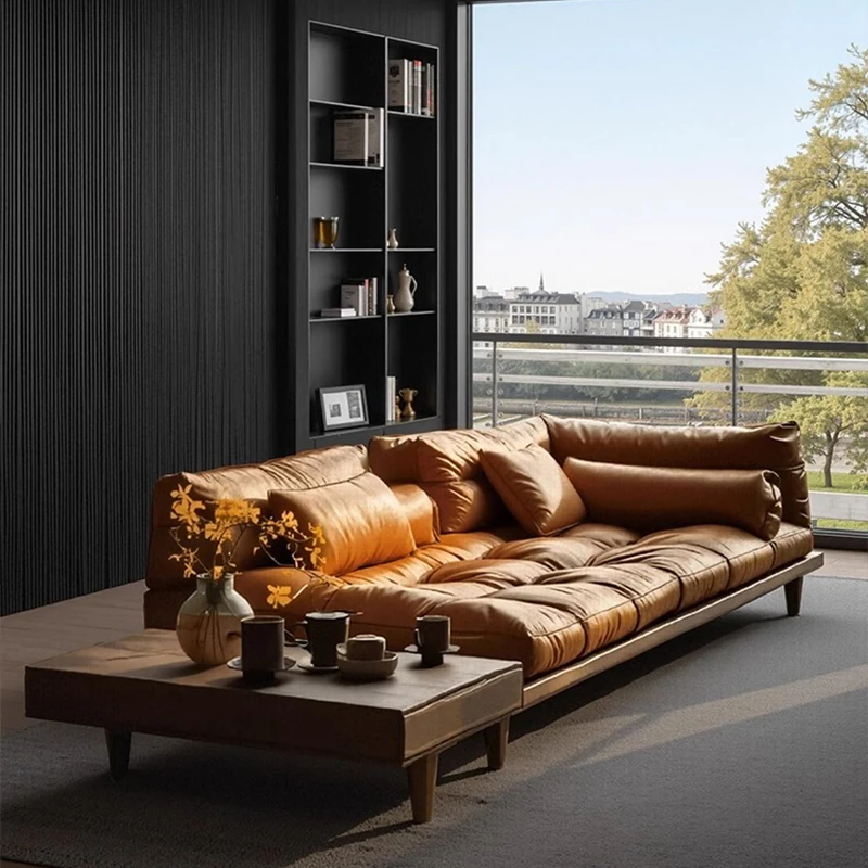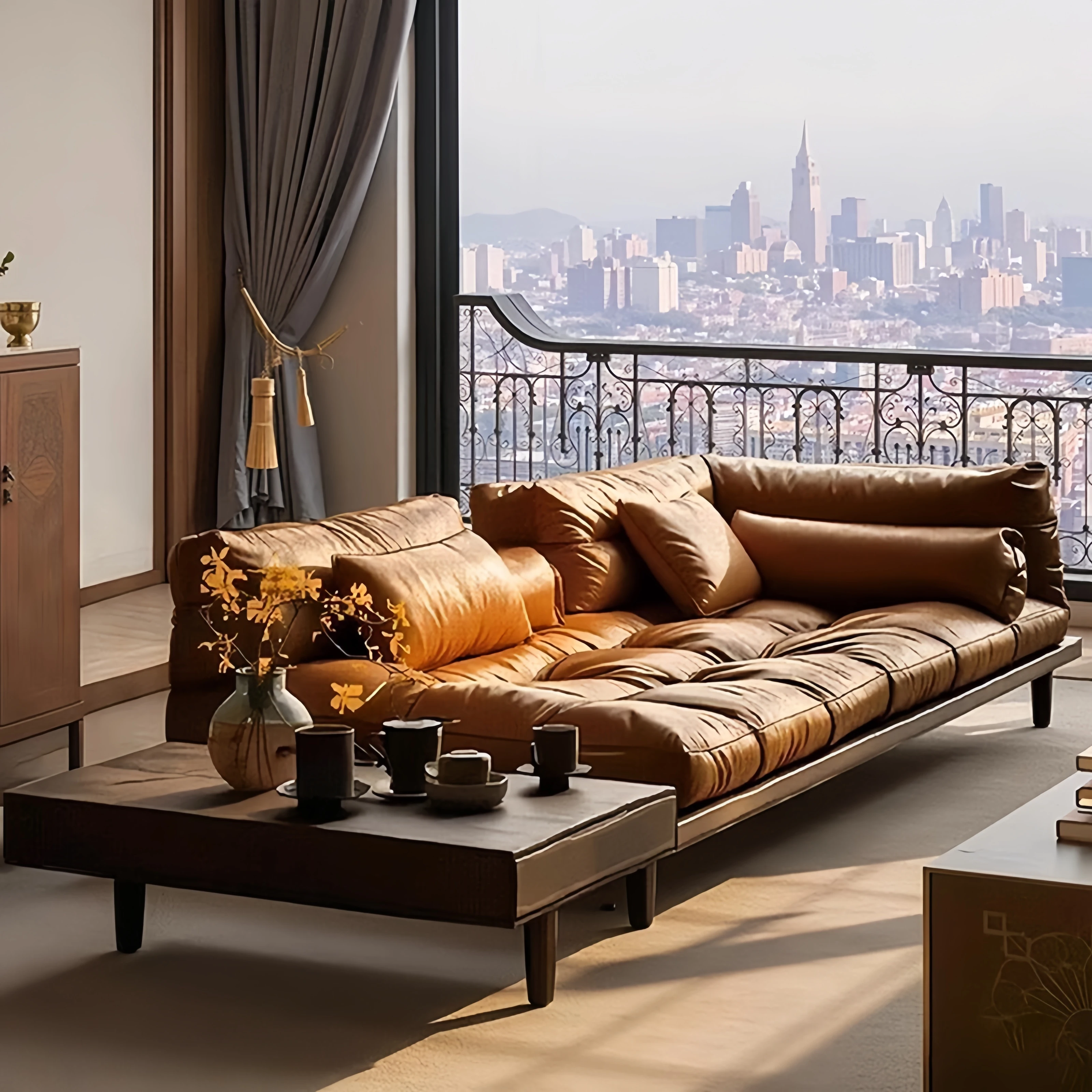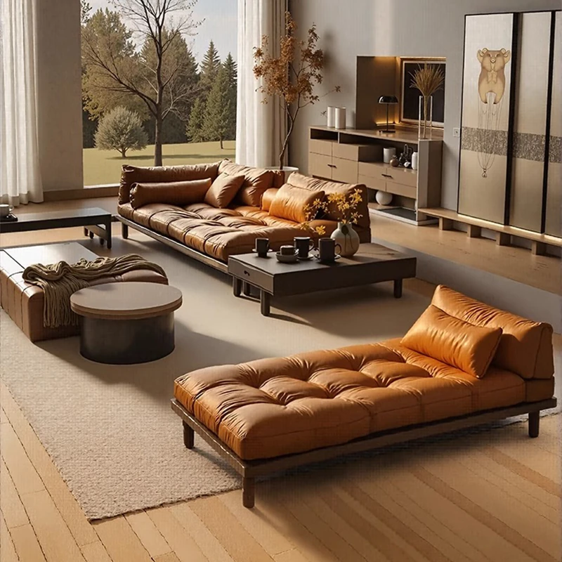 新中式スタイルの無垢材&レザー製ソファー!贅沢で洗練されたデザインの貴妃ソファーセット。北米産のブラックウォールナット使用、客室やホテルに最適。あなたのリビングを格上げする一品!