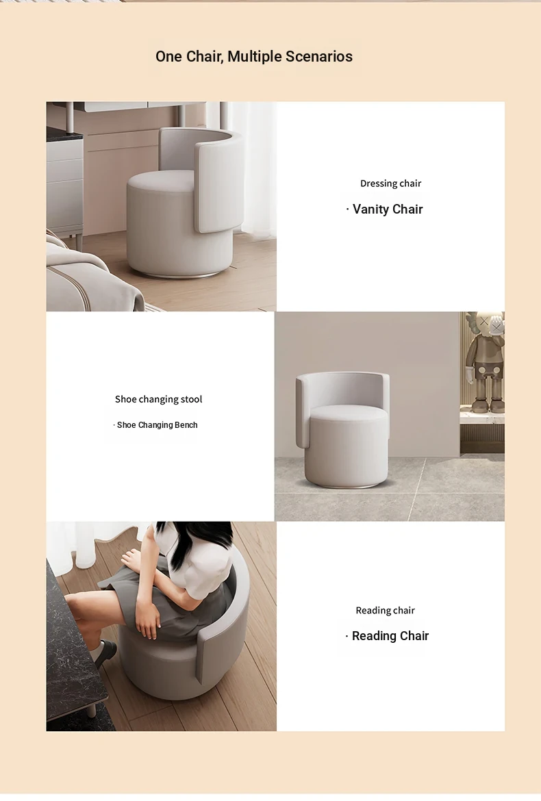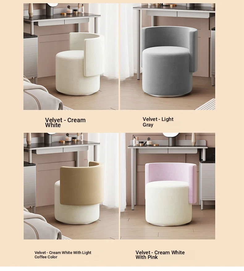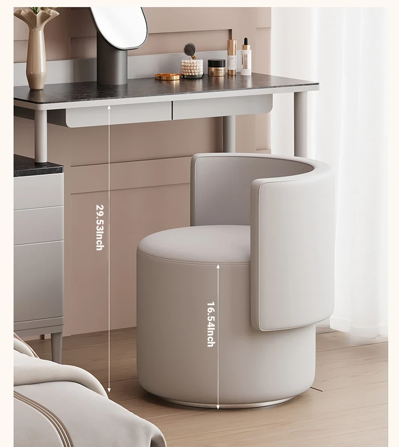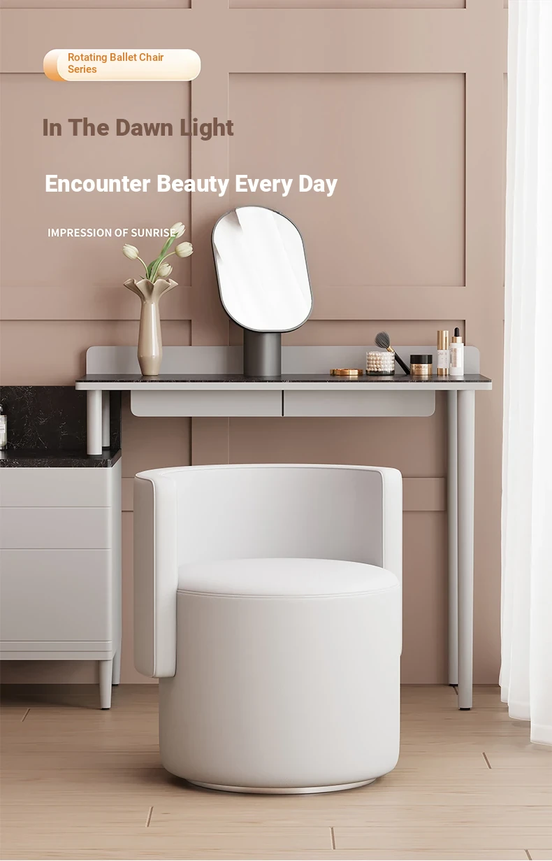 Elegant Rotating Makeup Vanity Stool - Modern Minimalist Design for Home Use, Perfect for Bedroom Dressing Tables, Stylish Round Chair with Backrest, Ideal for Effortless Glamour.