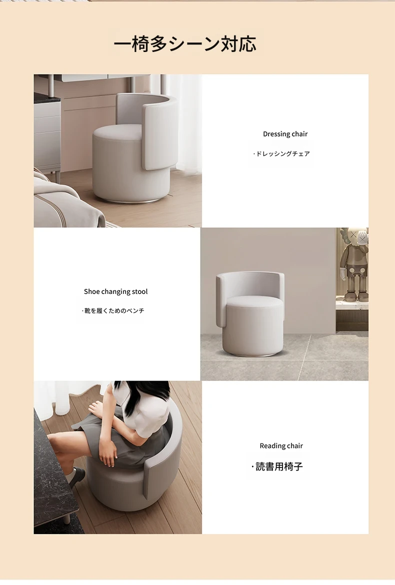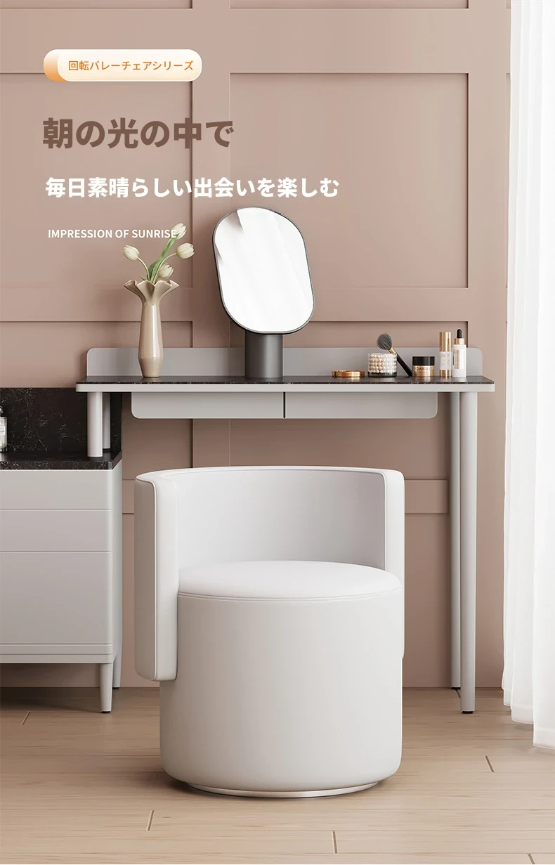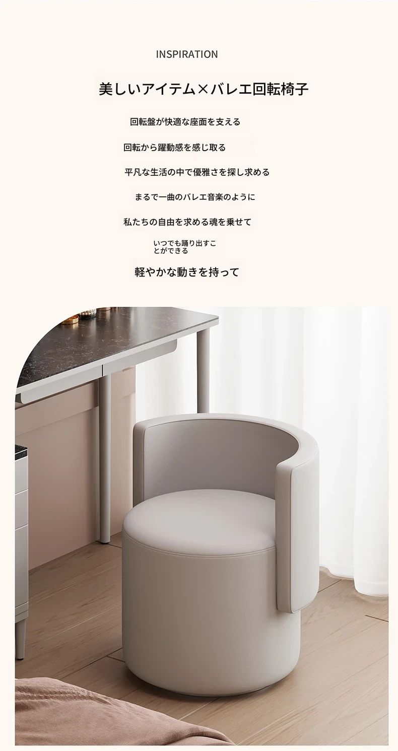 軽奢華の化粧台用回転椅子!シンプルで上質なデザイン、寝室にぴったりなコンパクトなサイズ。サロンのような贅沢なひとときを、自宅で楽しめます。