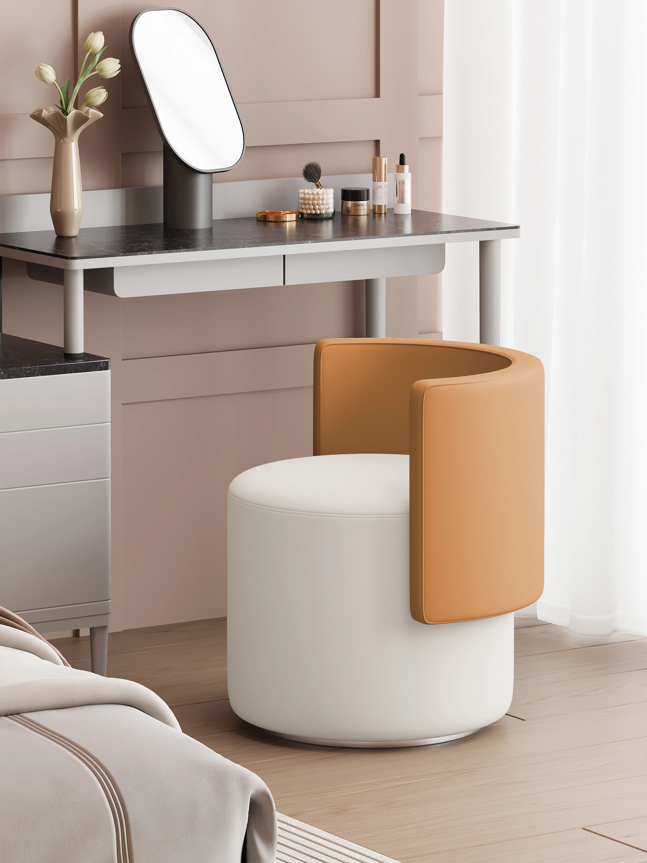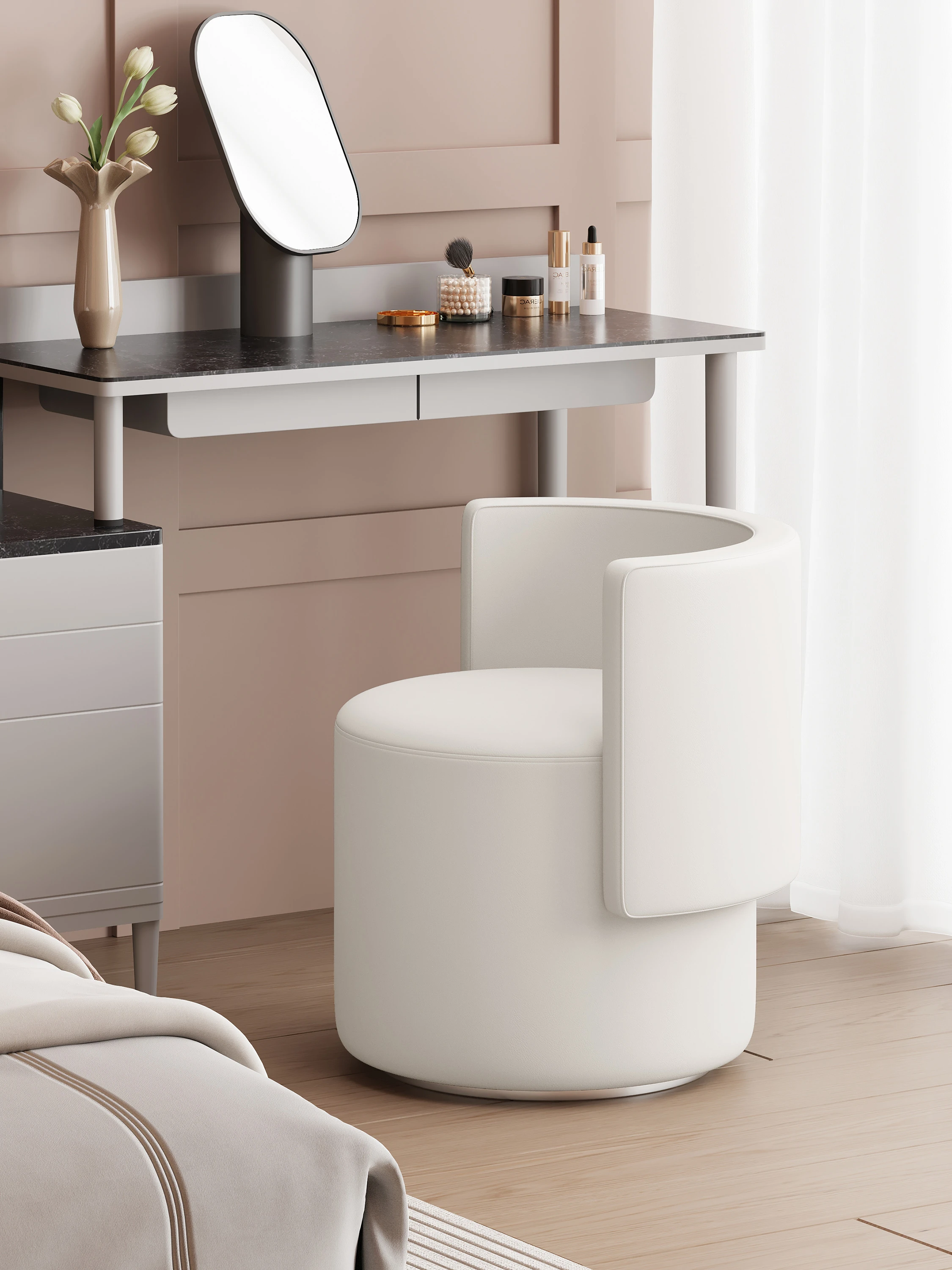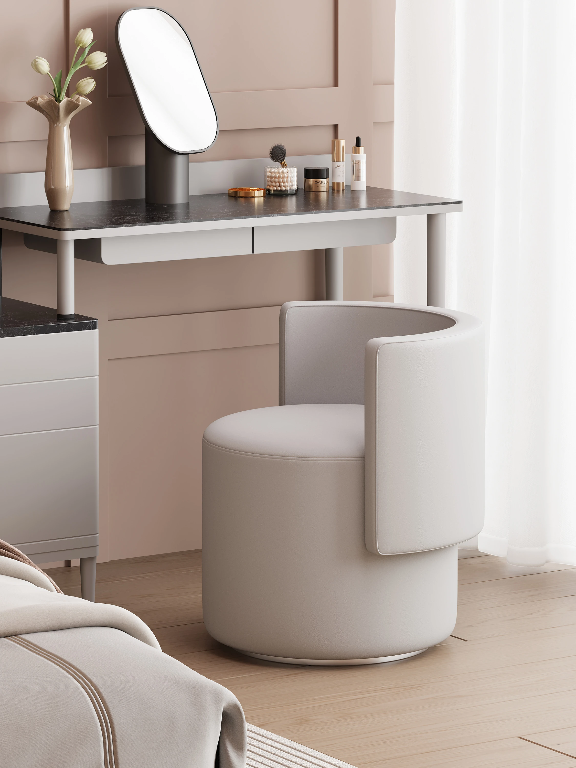 軽奢華の化粧台用回転椅子!シンプルで上質なデザイン、寝室にぴったりなコンパクトなサイズ。サロンのような贅沢なひとときを、自宅で楽しめます。