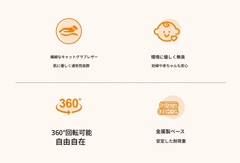 米白+オレンジ 【360°静音回転 猫爪素材】