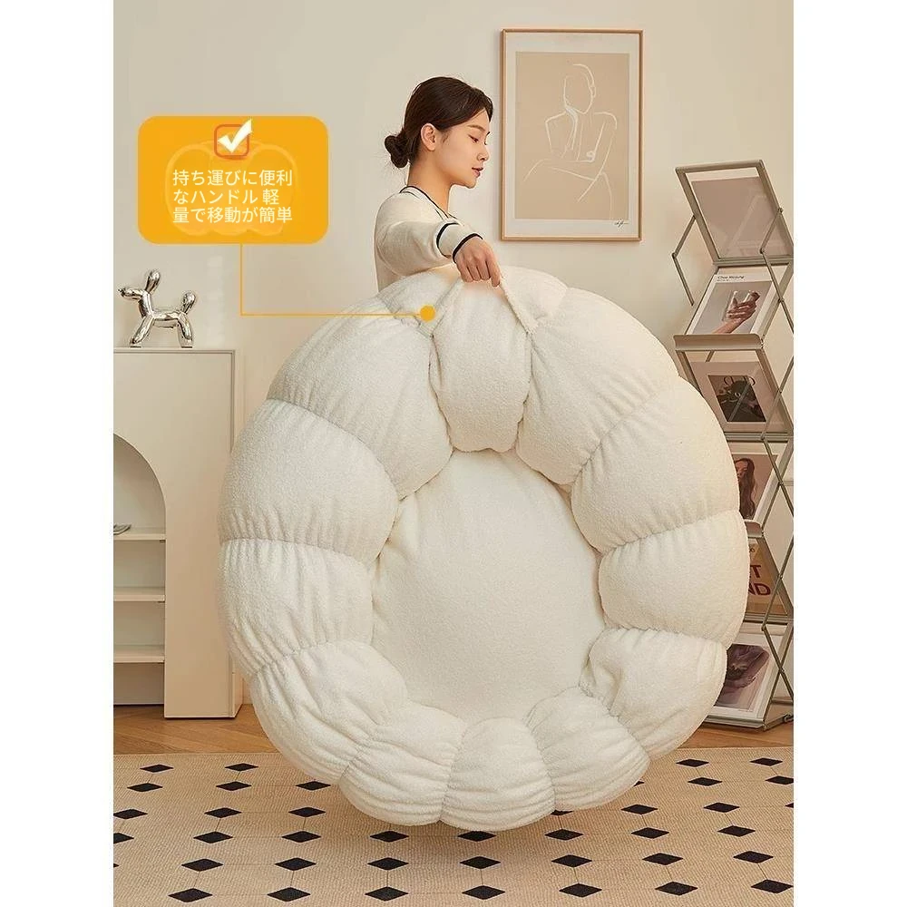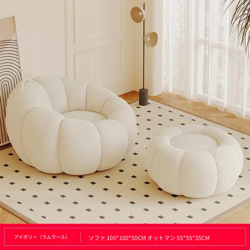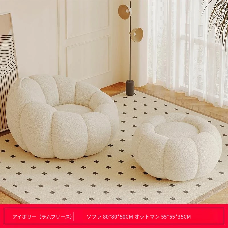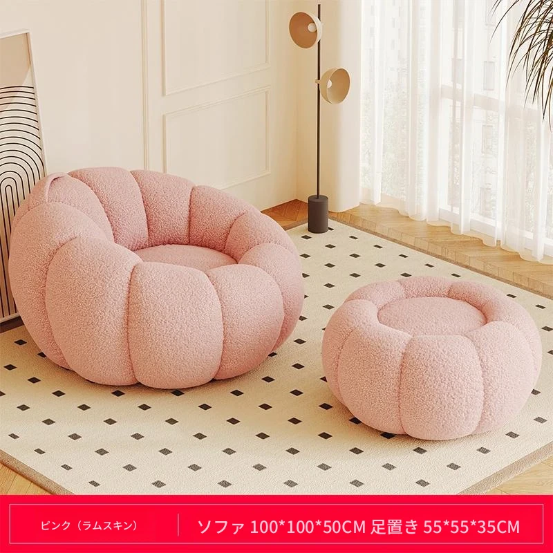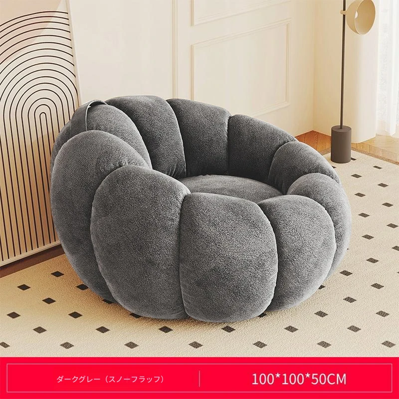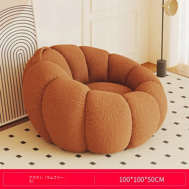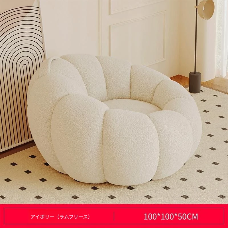 送料無料!香港発★ラクラクリクライニングソファ☆寝転んでもOK♪シングル&ダブルサイズ対応☆ふわふわのシープボア素材使用☆南瓜デザインの畳みソファ♪寝室やバルコニーに最適!