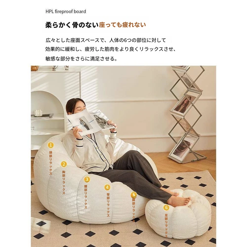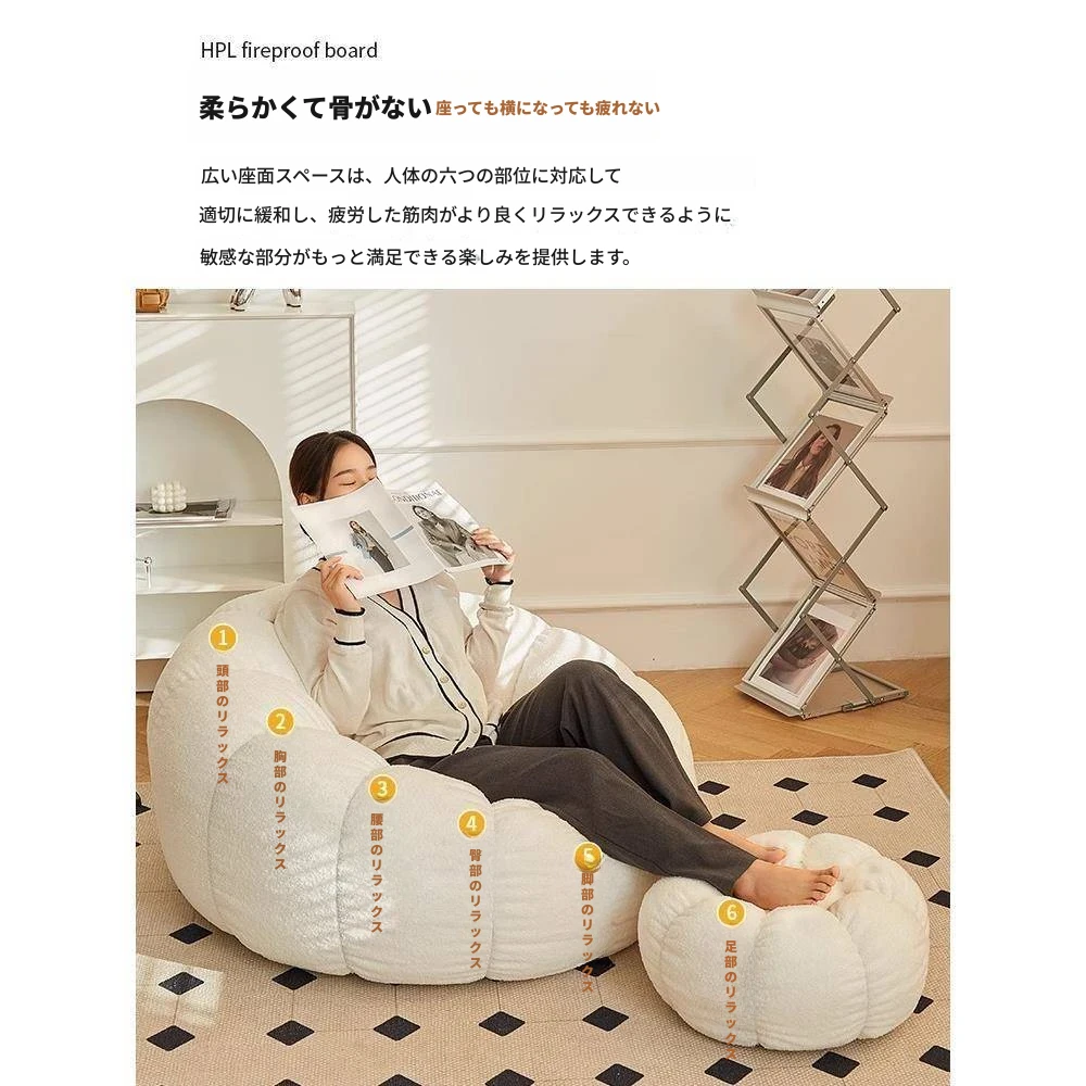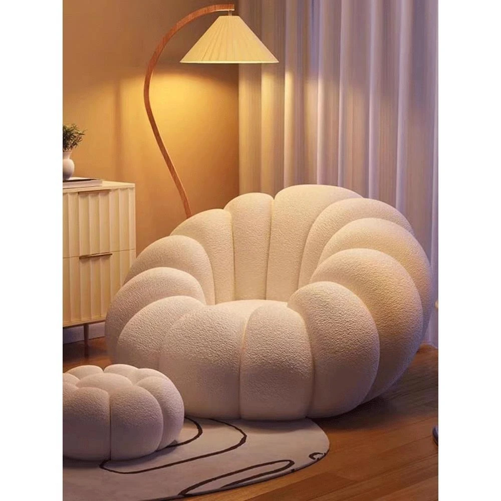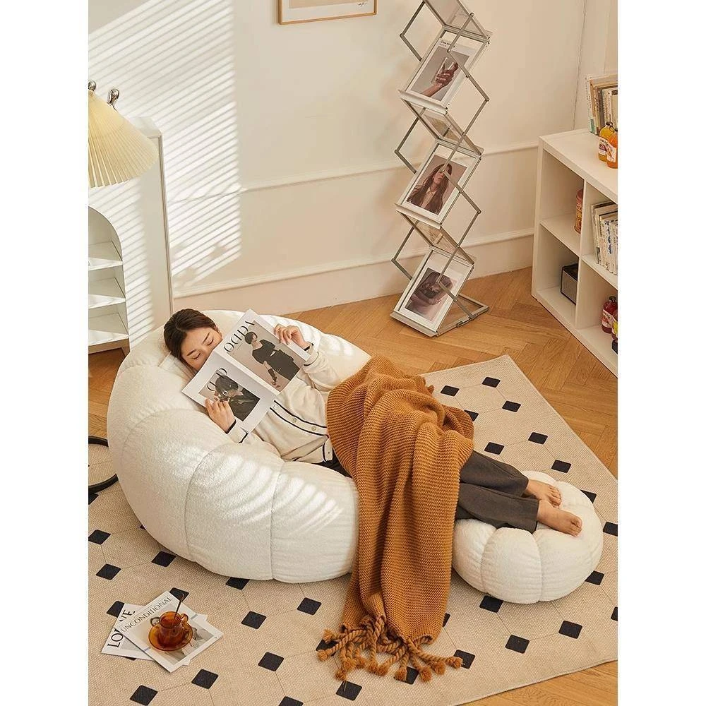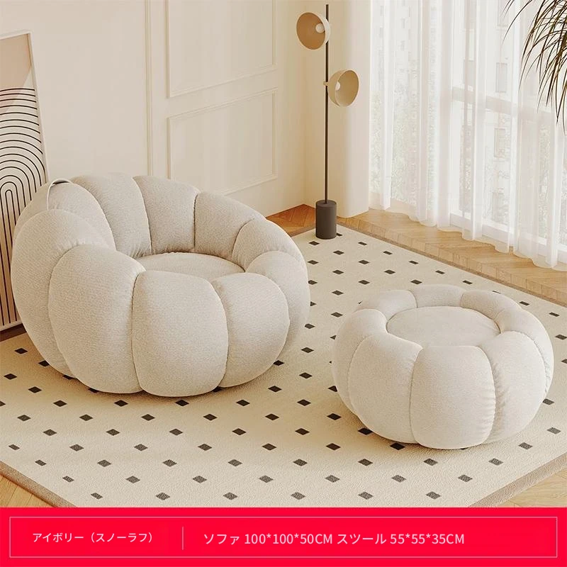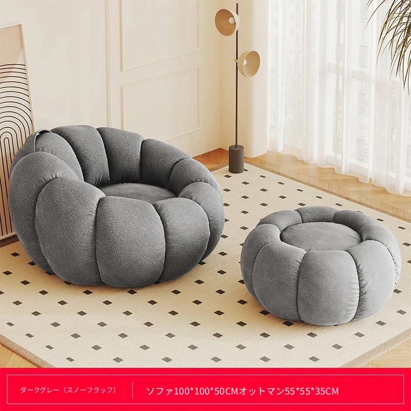 送料無料!香港発★ラクラクリクライニングソファ☆寝転んでもOK♪シングル&ダブルサイズ対応☆ふわふわのシープボア素材使用☆南瓜デザインの畳みソファ♪寝室やバルコニーに最適!