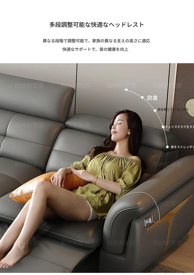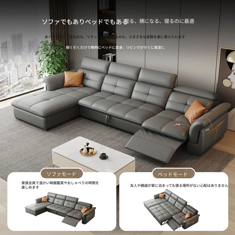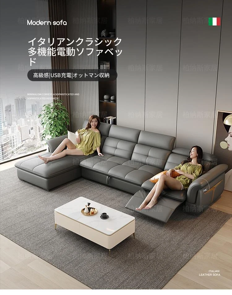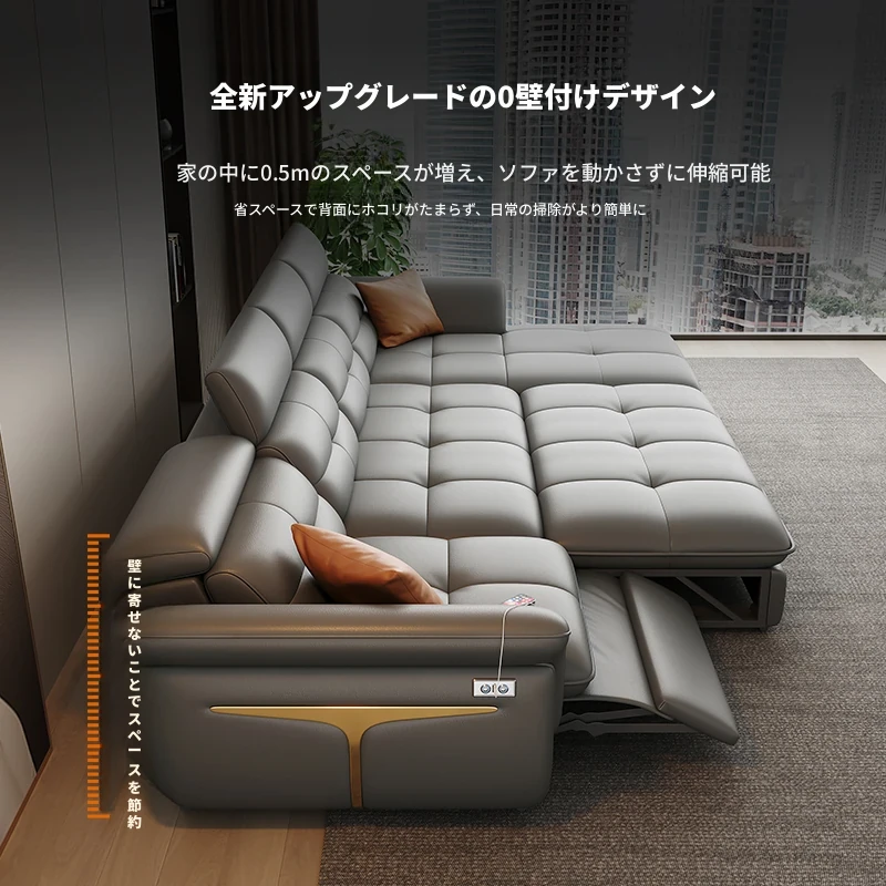 香港送料無料!本革使用の高級モダンソファ、0壁掛け電動折りたたみ式の2WAYファーストクラスデザイン!快適なリビング空間を実現し、贅沢なひとときをお楽しみください。