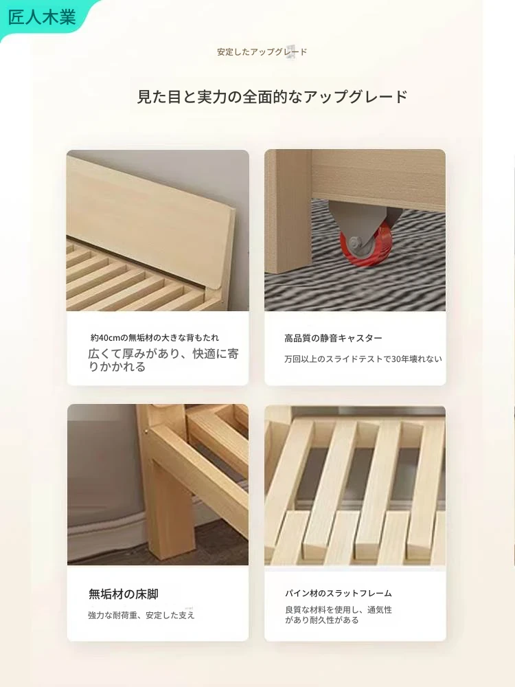 【香港送料無料】全木製折りたたみソファベッド|多機能コンパクトサイズ|伸縮可能な小型ベッド|お子様向け引き出し式ベッド|省スペースで快適な生活を実現!