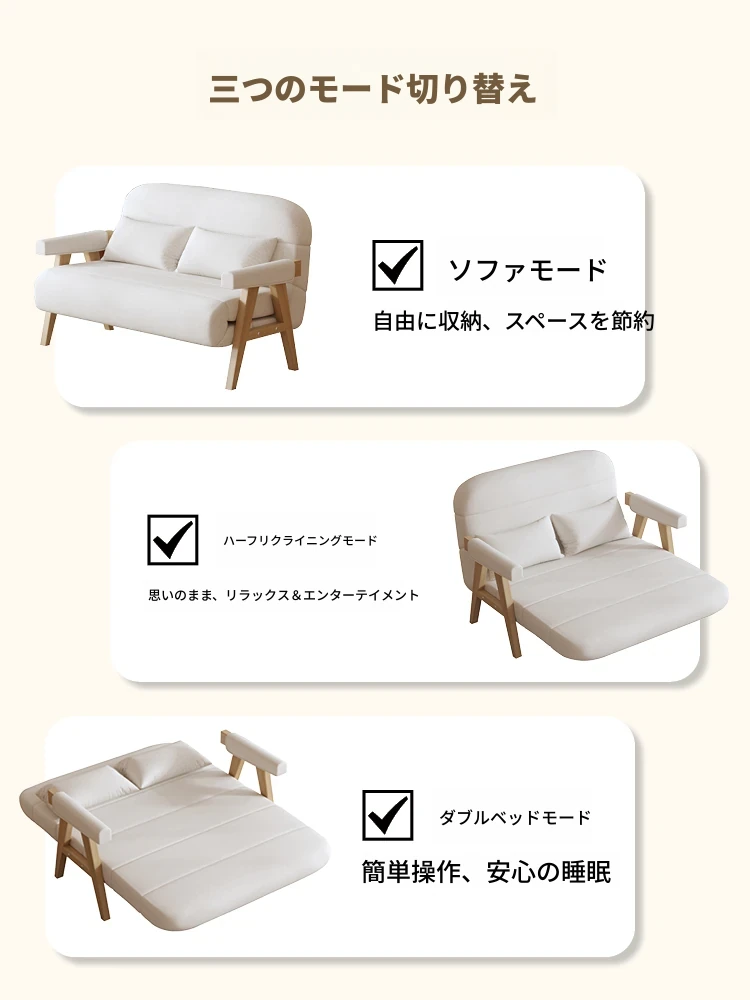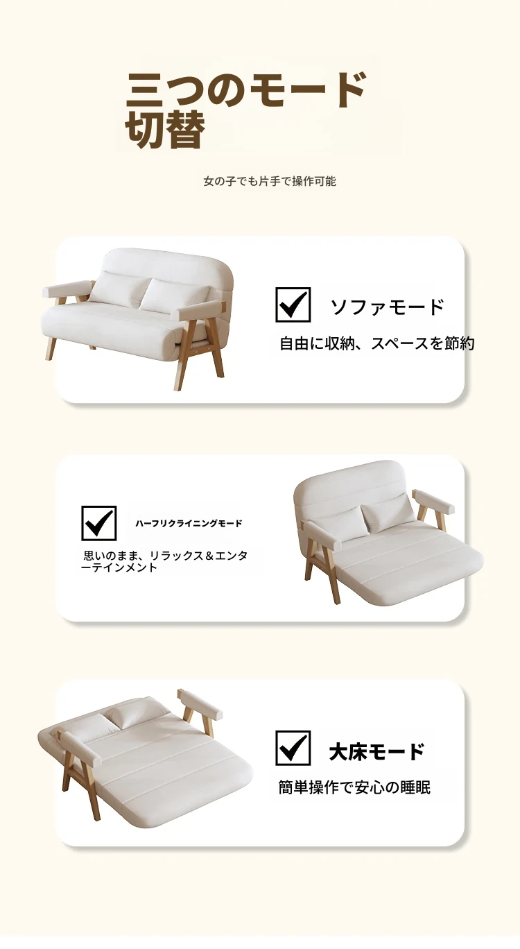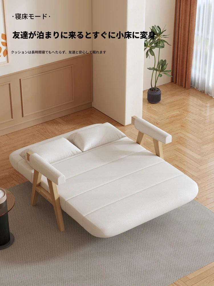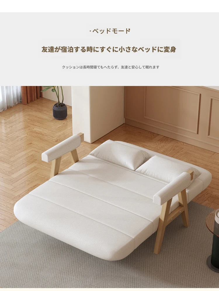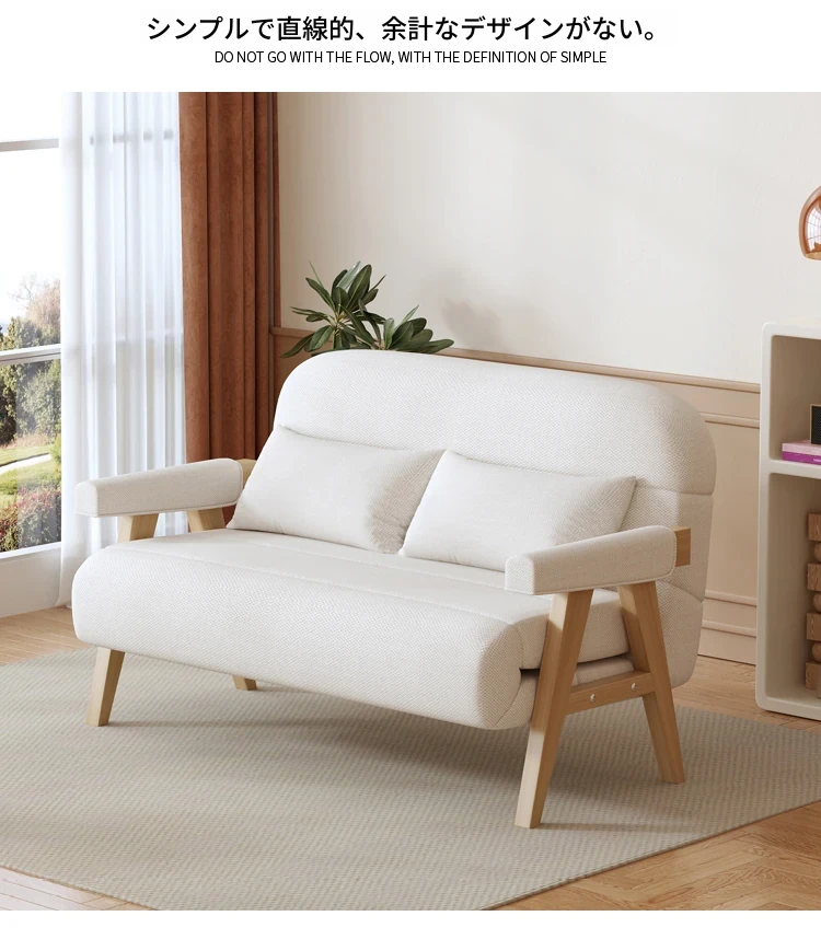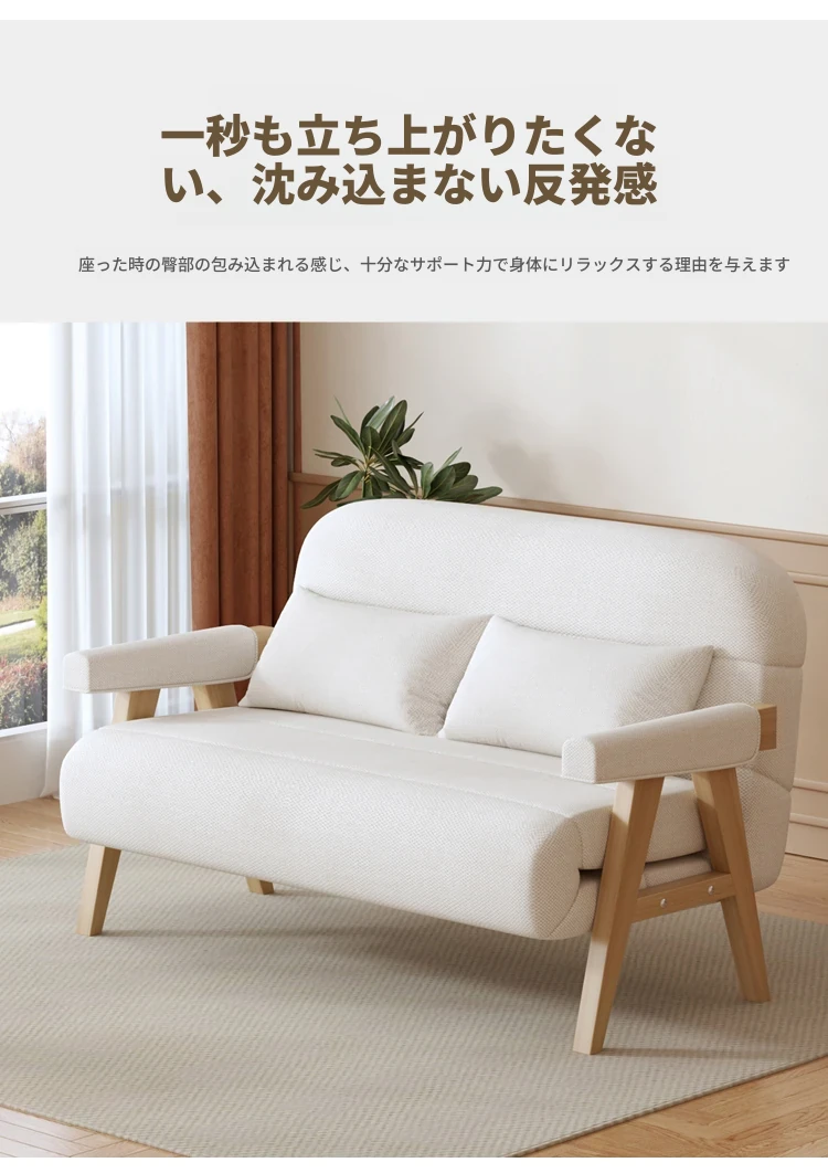 【香港送料無料】新作!おしゃれな布製ソファベッド、折りたたみ可能な実木製。小型スペースにぴったりな2人用ソファベッド!快適さとスタイルを両立させ、あなたのリビングを華やかに彩ります!