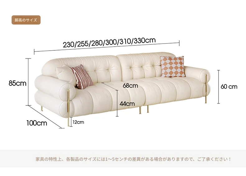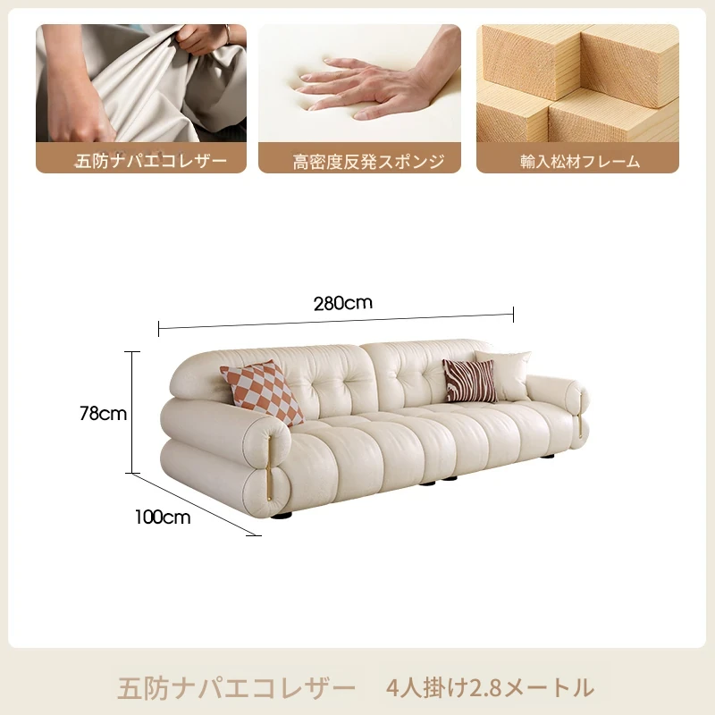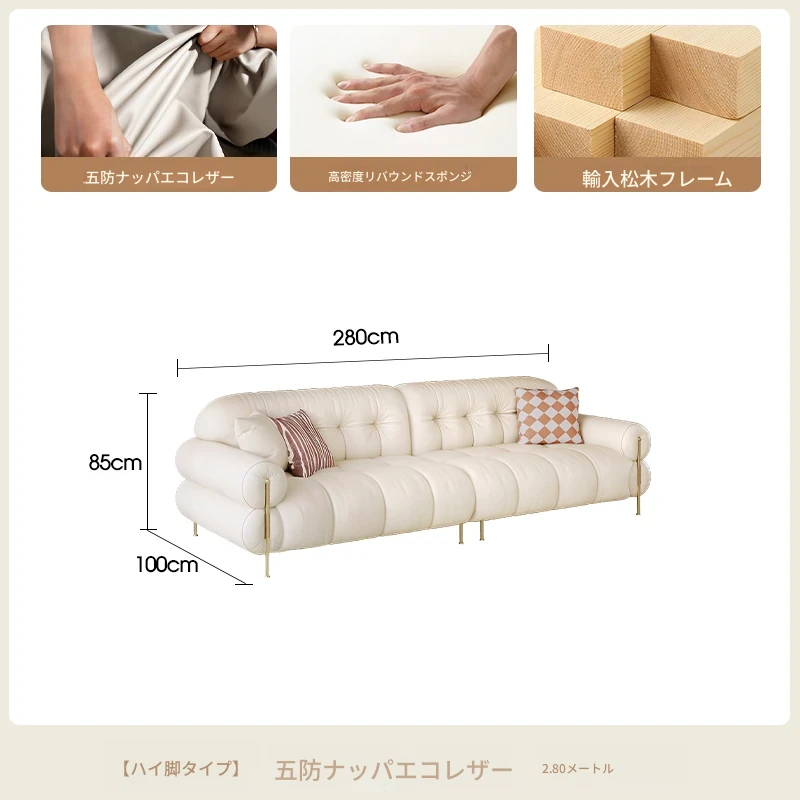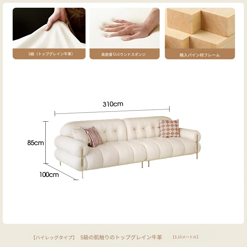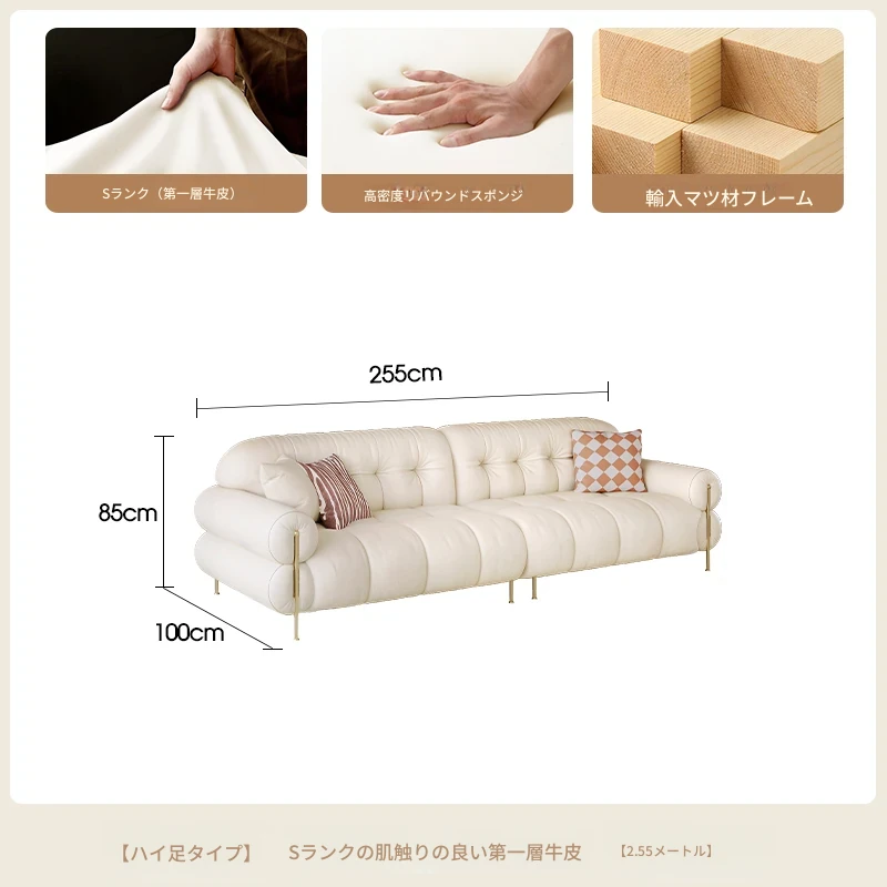 【ハイレッグタイプ】S級肌触りのトップグレード牛革【大3人用2.55メートル】