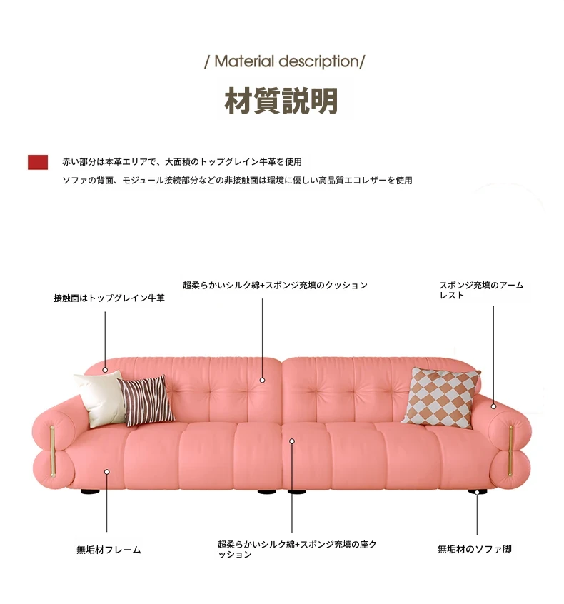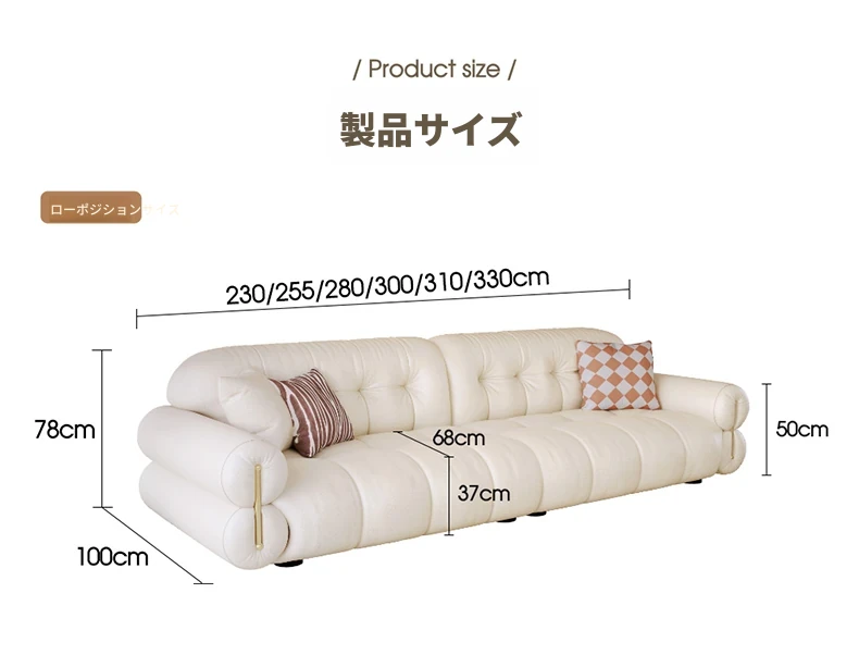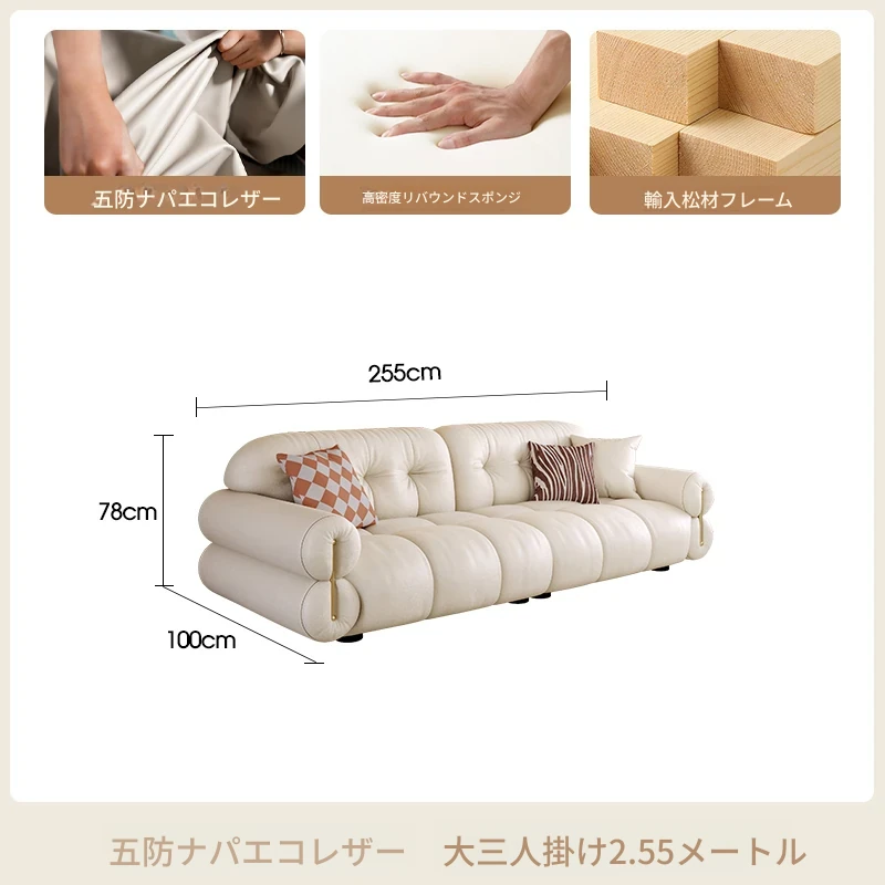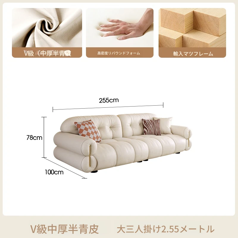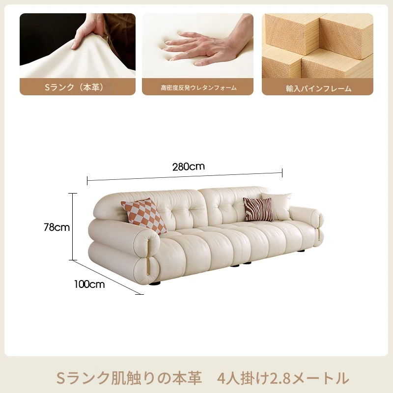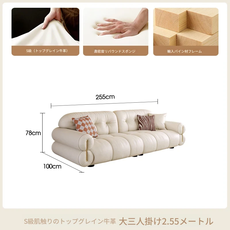 【ローレッグタイプ】S級肌触りのトップグレード牛革【大3人用2.55メートル】