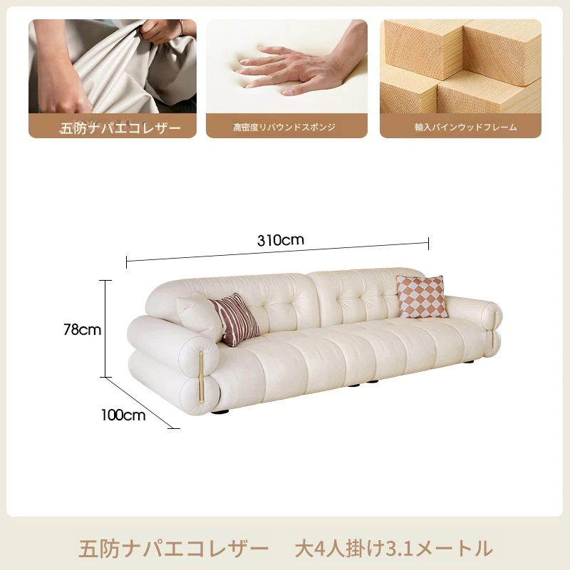 【ハイレッグタイプ】S級肌触りのトップグレード牛革【大4人用3.1メートル】