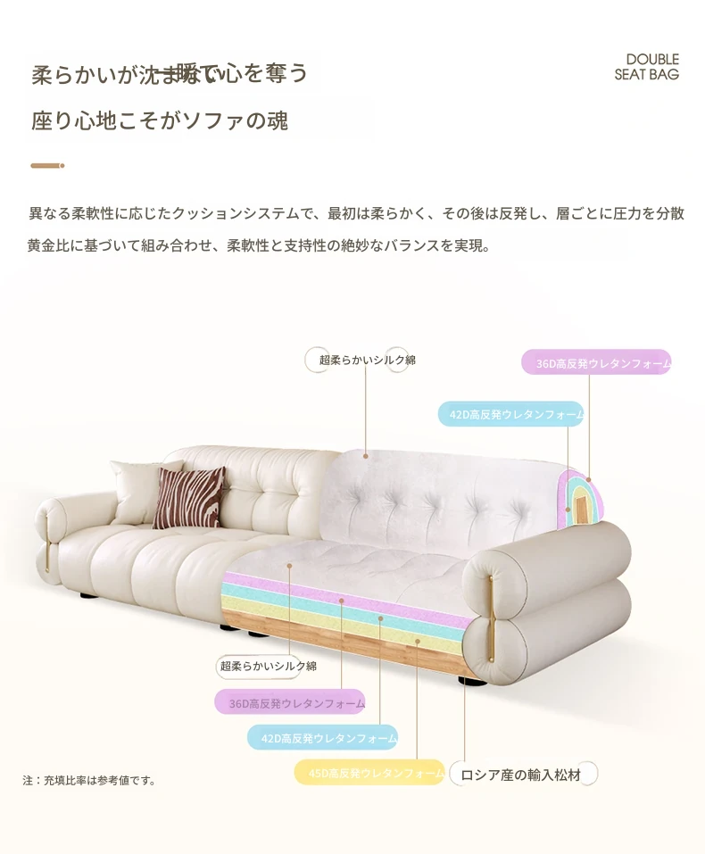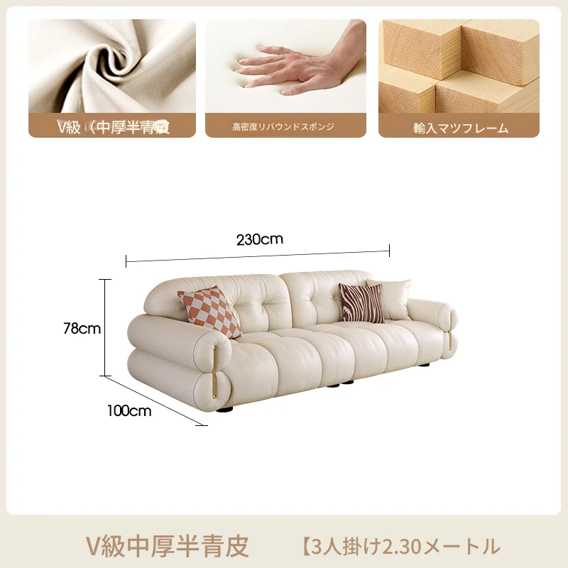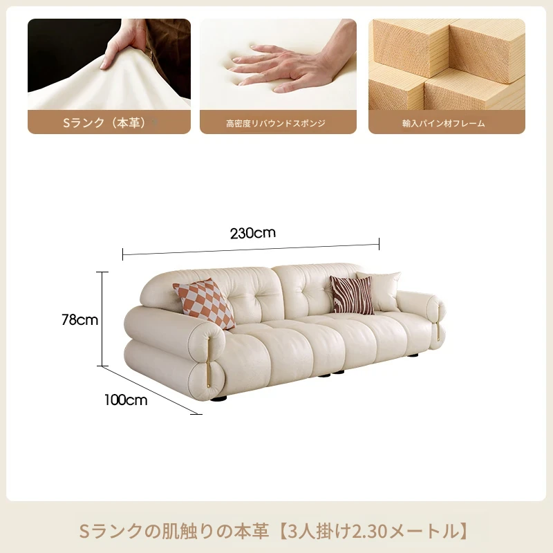 【ローレッグタイプ】S級肌触りのトップグレード牛革【3人用2.3メートル】