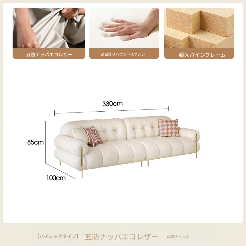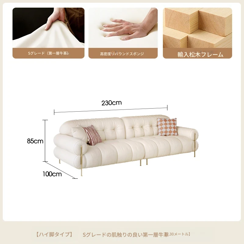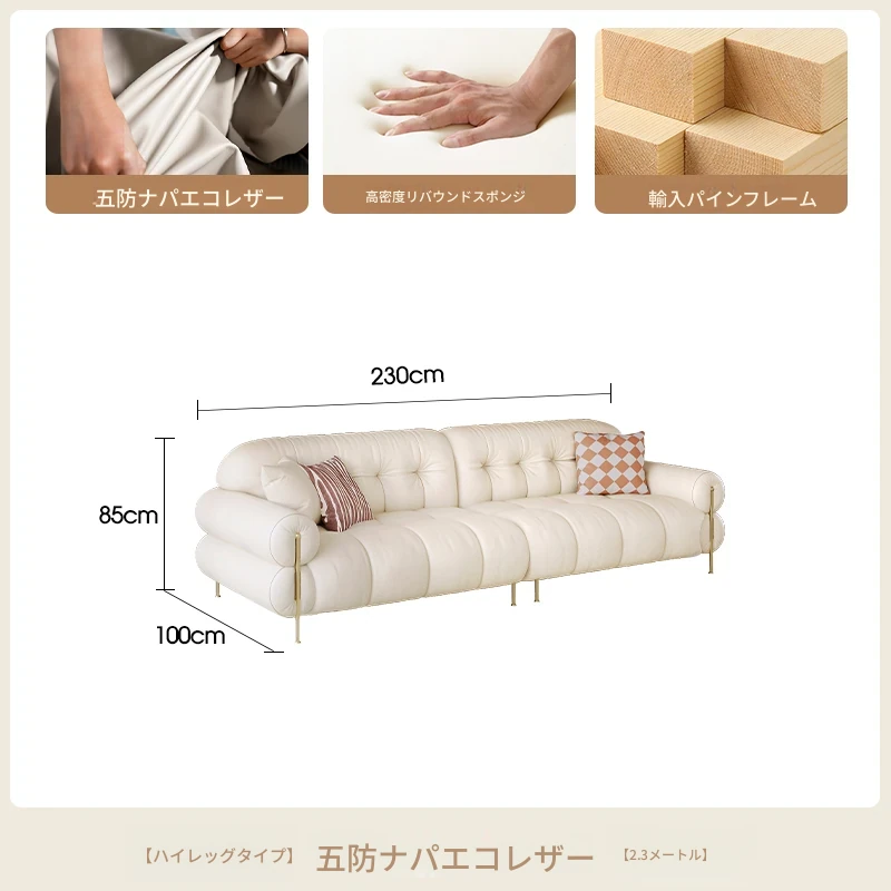 【ハイレッグタイプ】S級肌触りのトップグレード牛革【3人用2.3メートル】