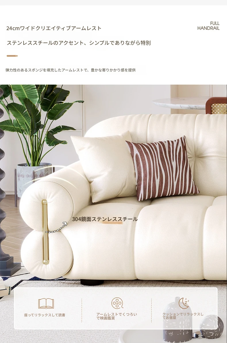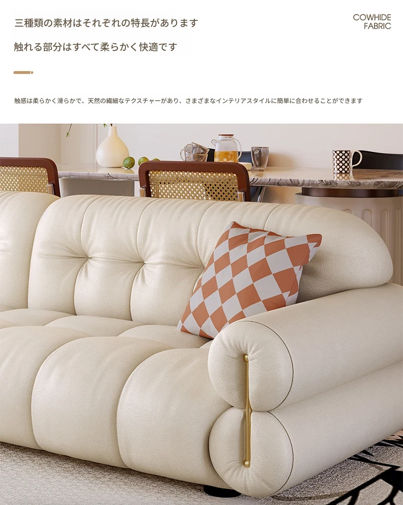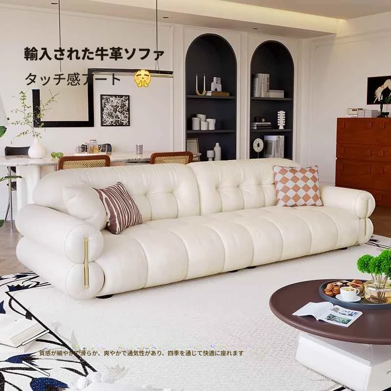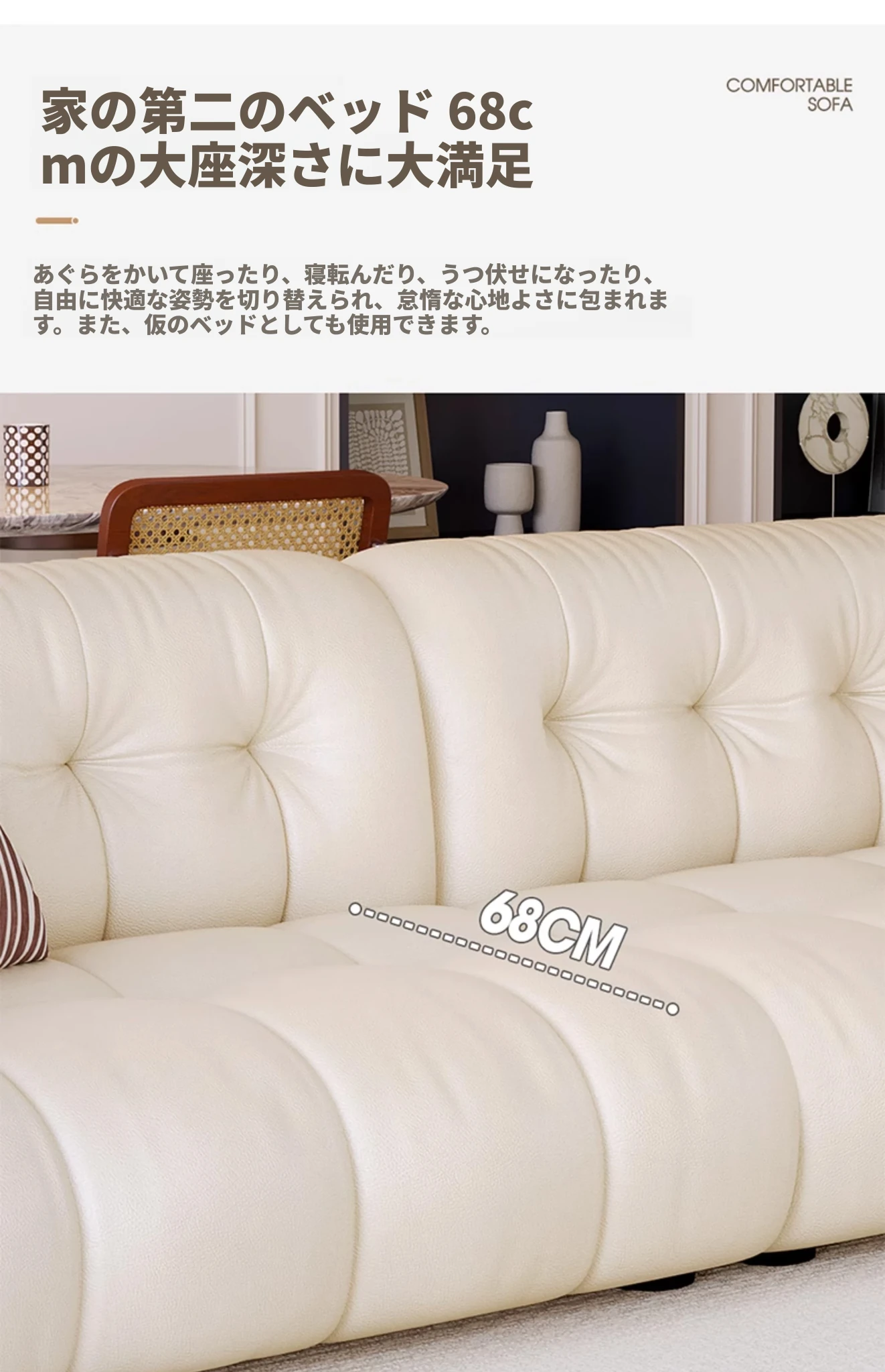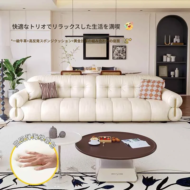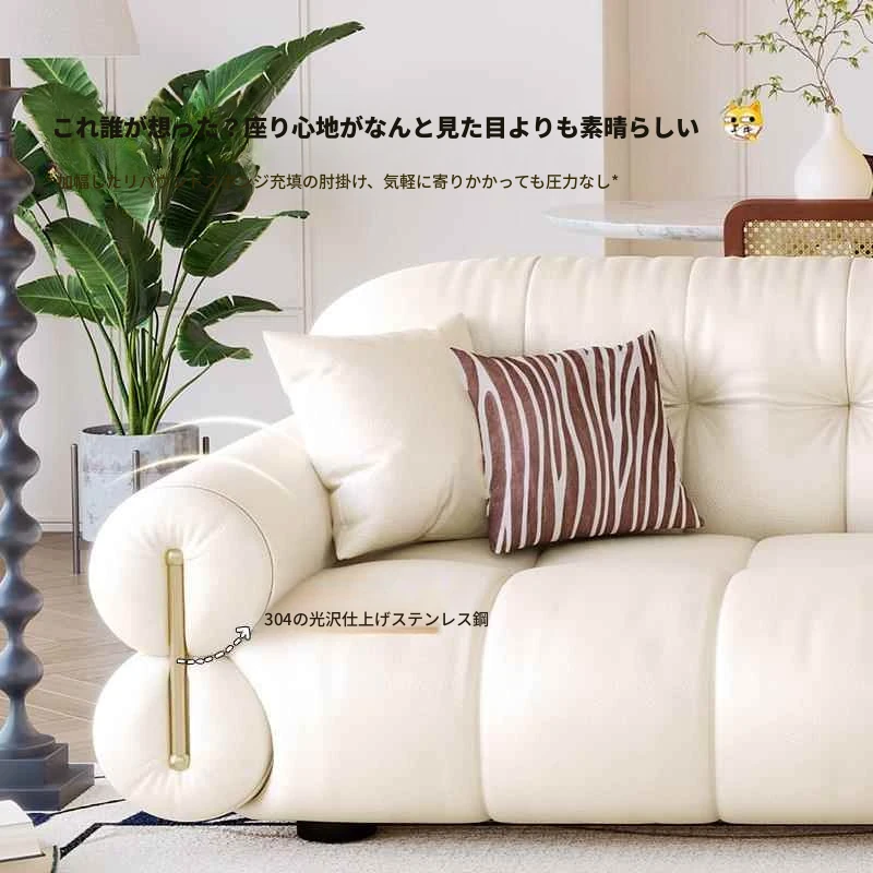 【香港送料無料】本革製モダンシンプルソファ 2024年新作 小型アパート向け フレンチクリーム風 キャラメルカラー