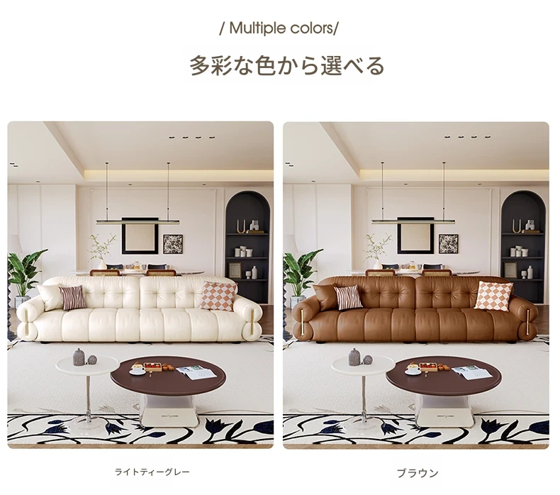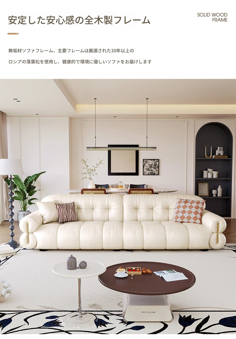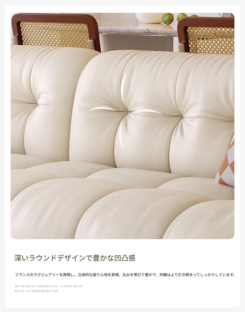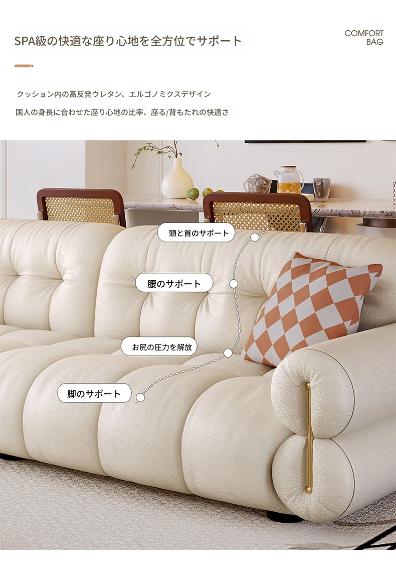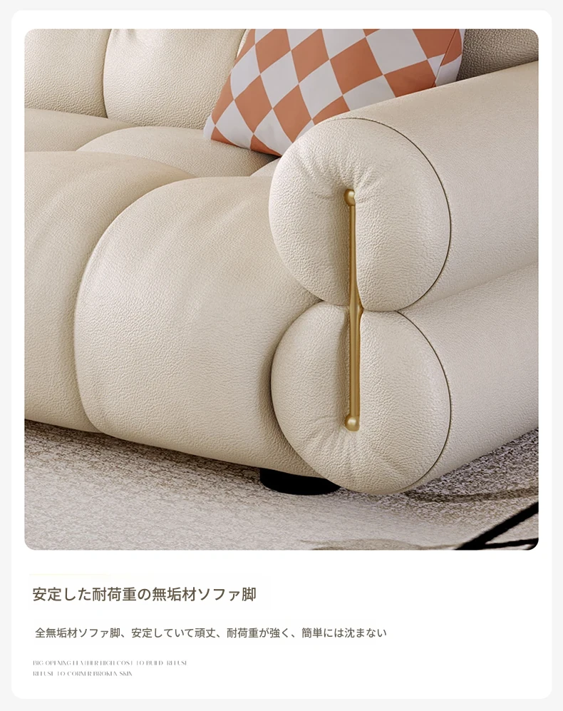 【香港送料無料】本革製モダンシンプルソファ 2024年新作 小型アパート向け フレンチクリーム風 キャラメルカラー