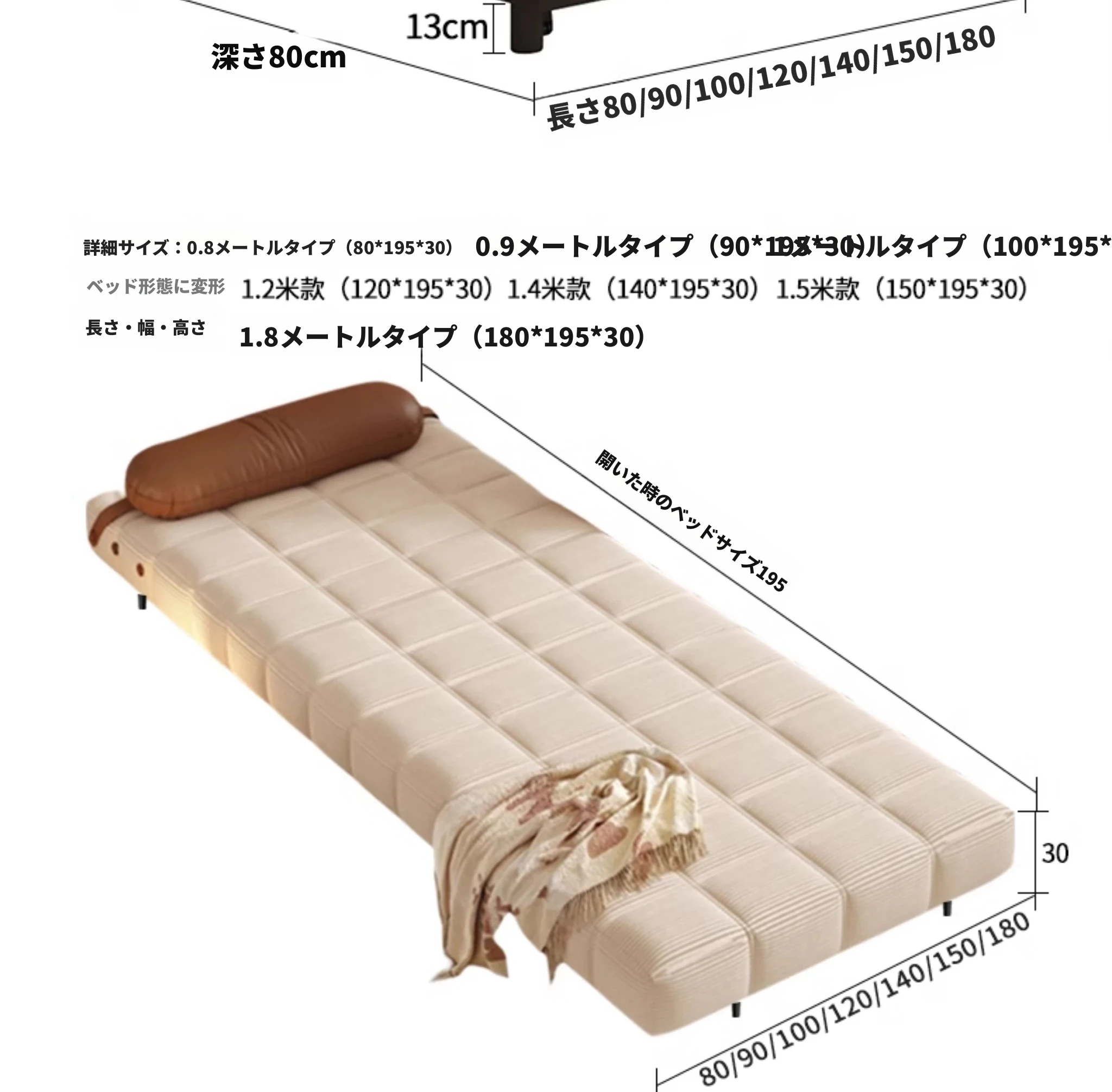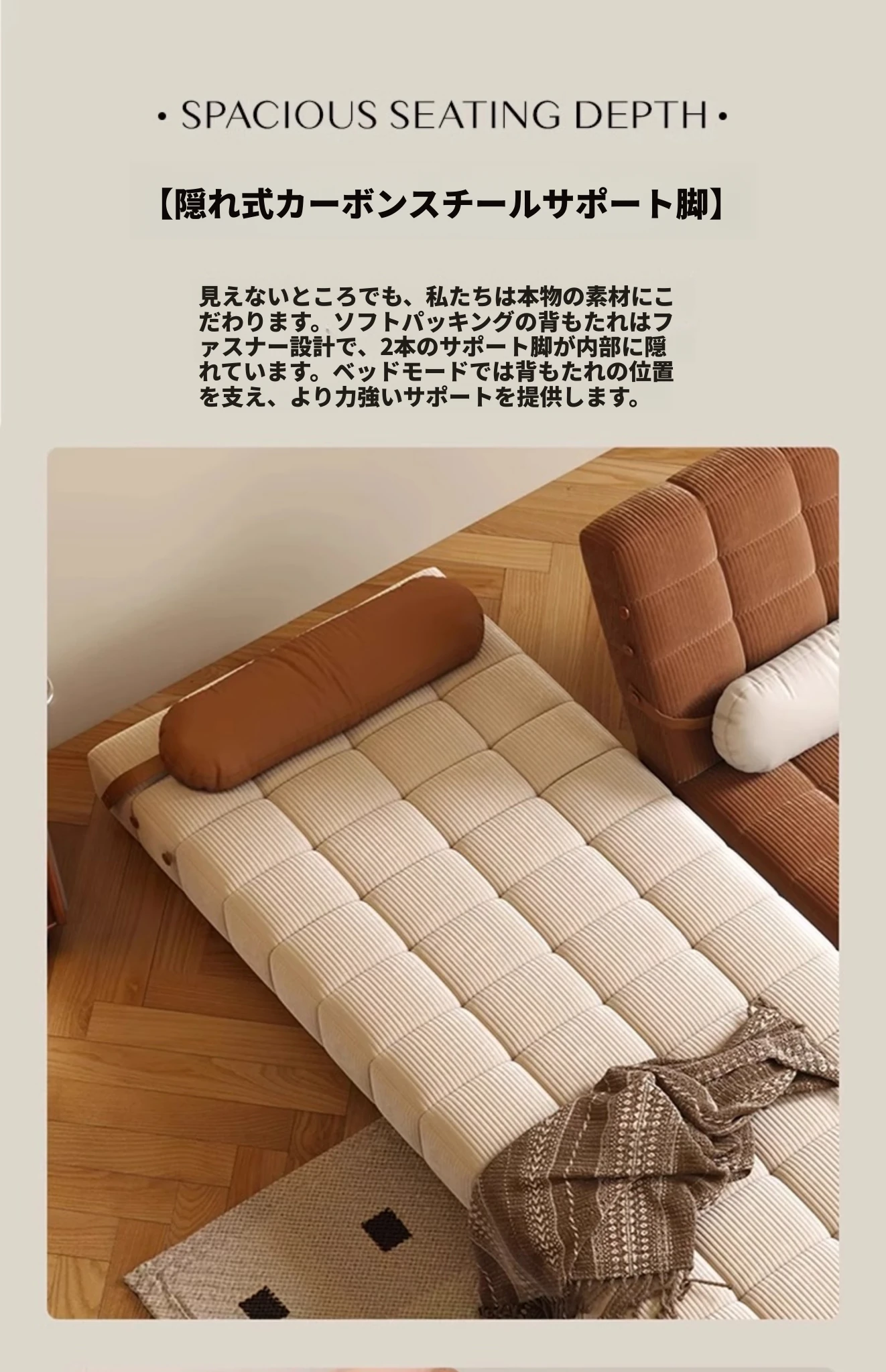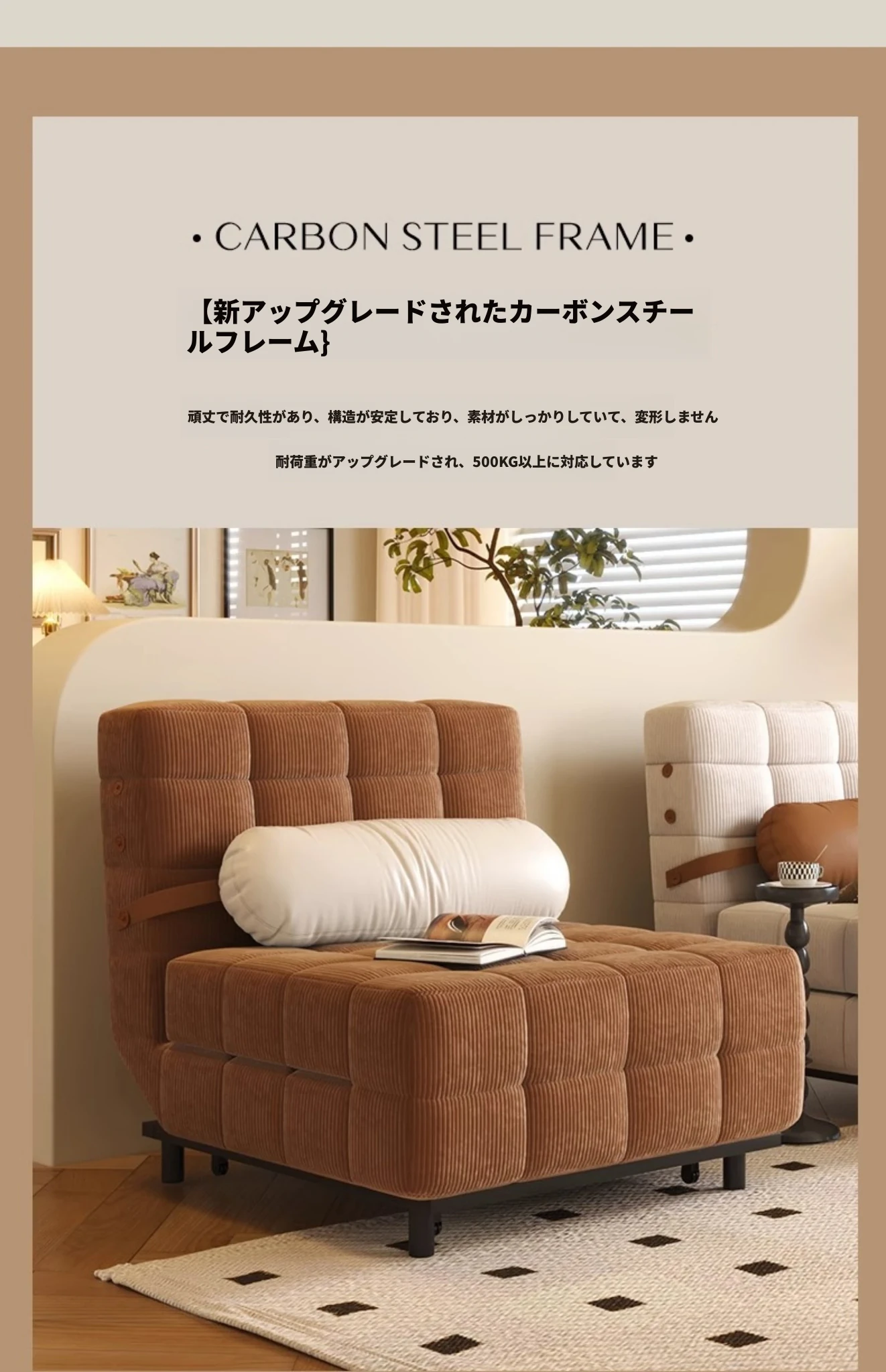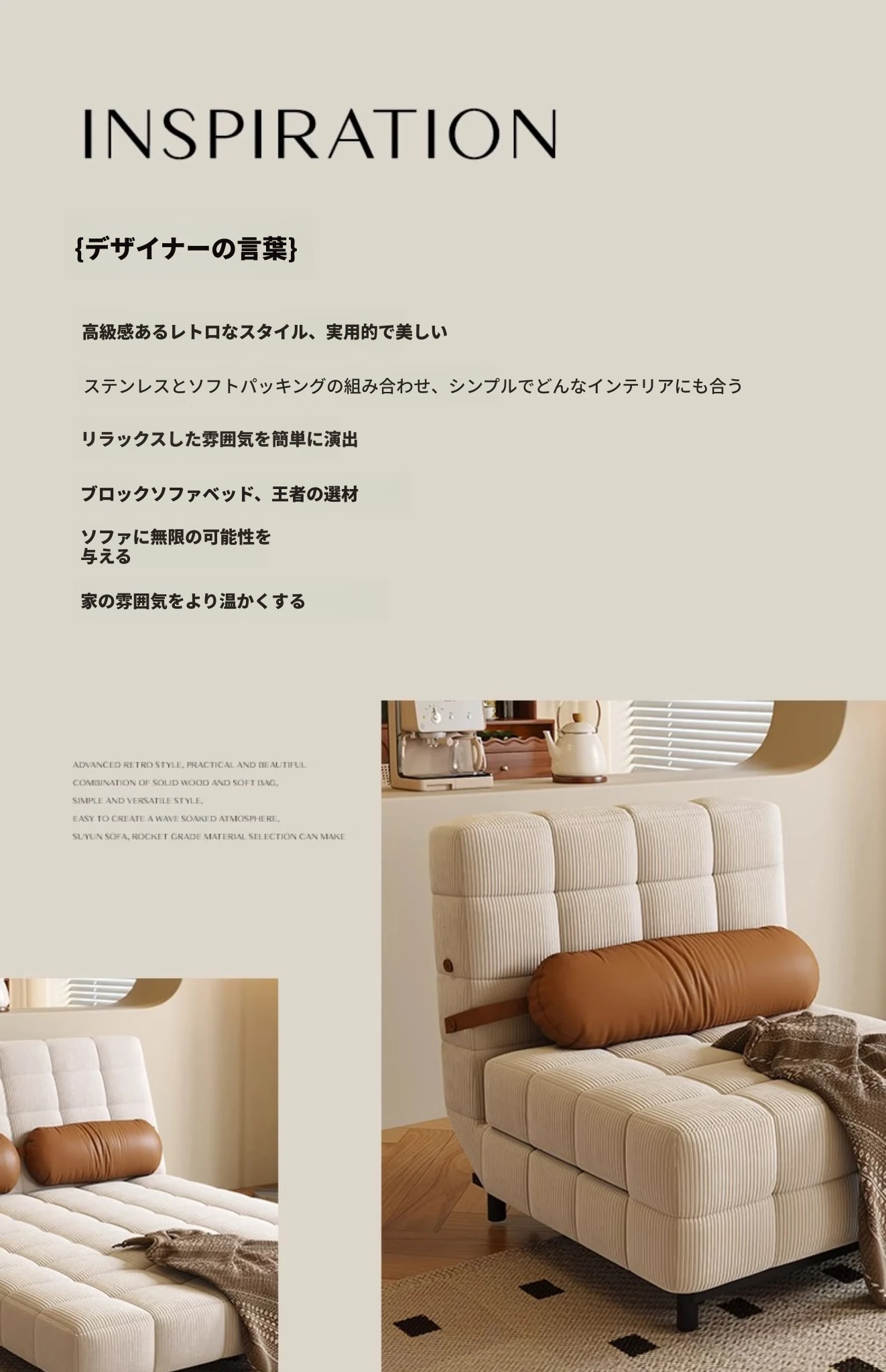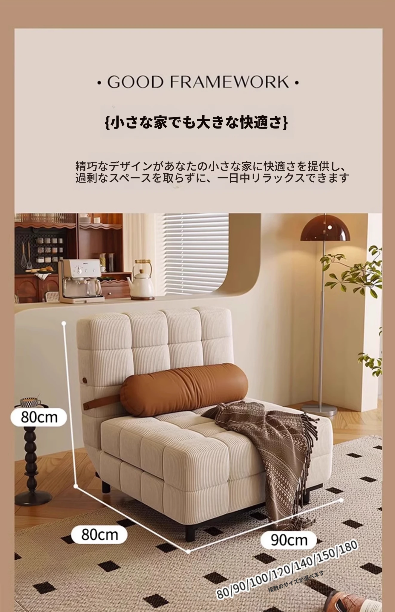 【香港送料無料】フレンチクリームソファベッド 折りたたみ式 二用途 小型リビングに最適 レトロデザイン 多機能 シングルサイズ