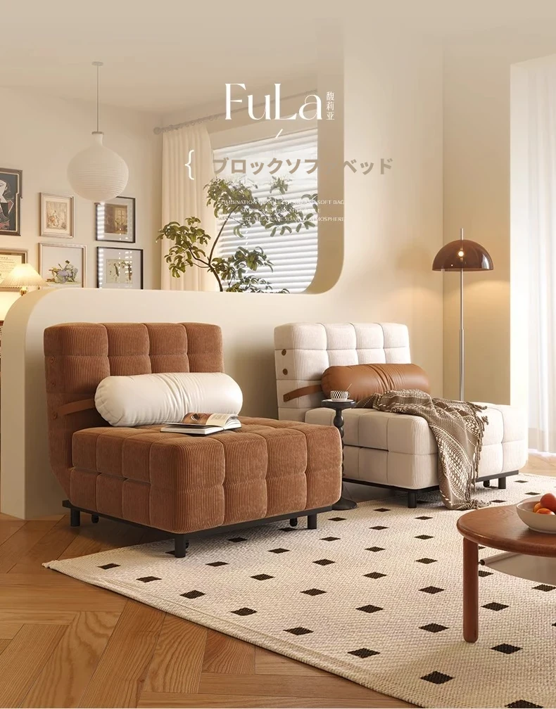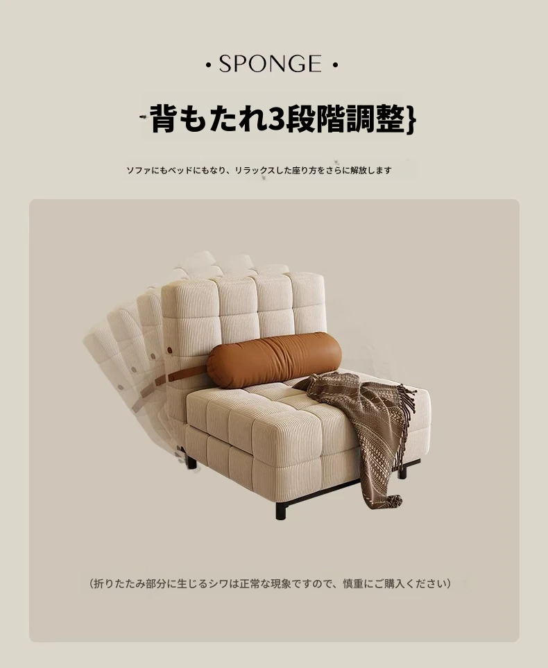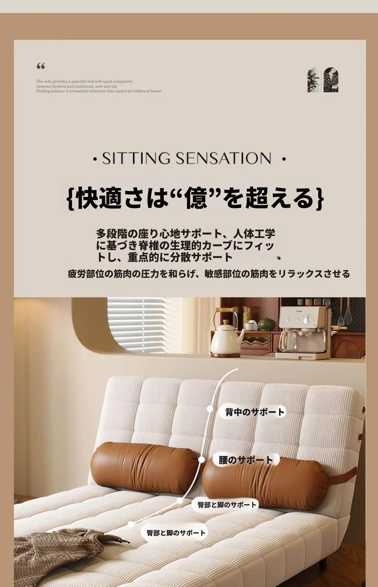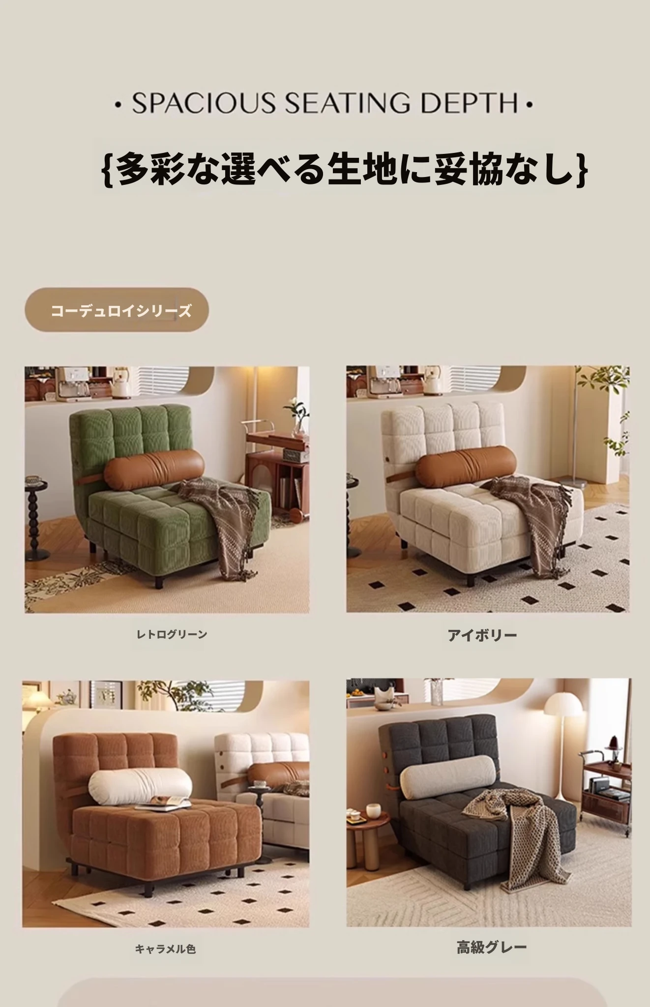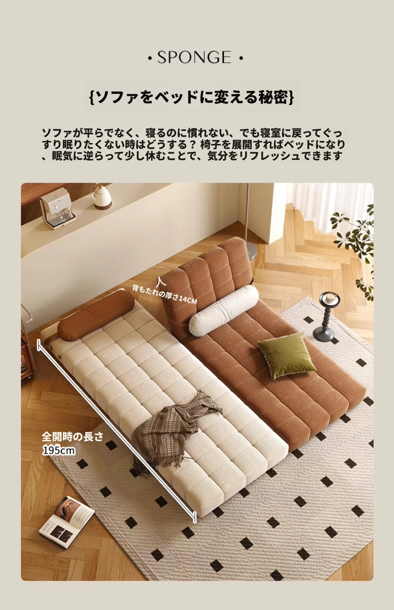 【香港送料無料】フレンチクリームソファベッド 折りたたみ式 二用途 小型リビングに最適 レトロデザイン 多機能 シングルサイズ