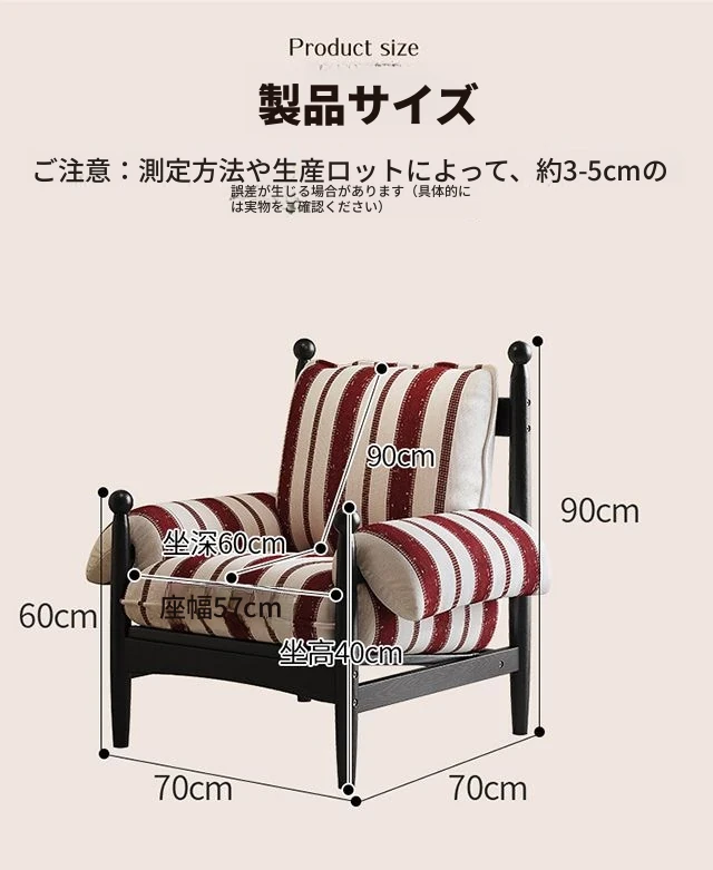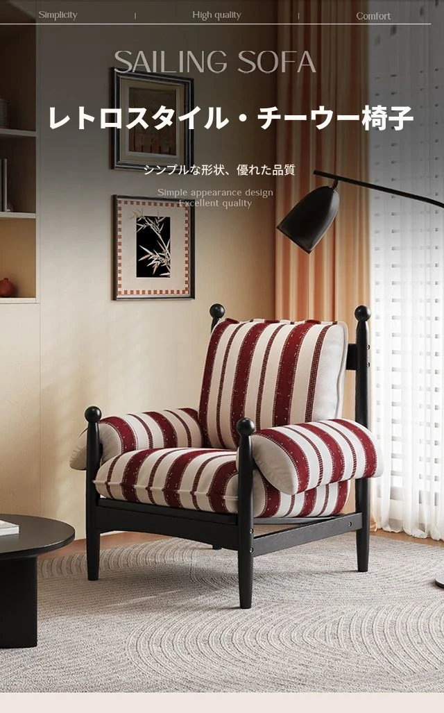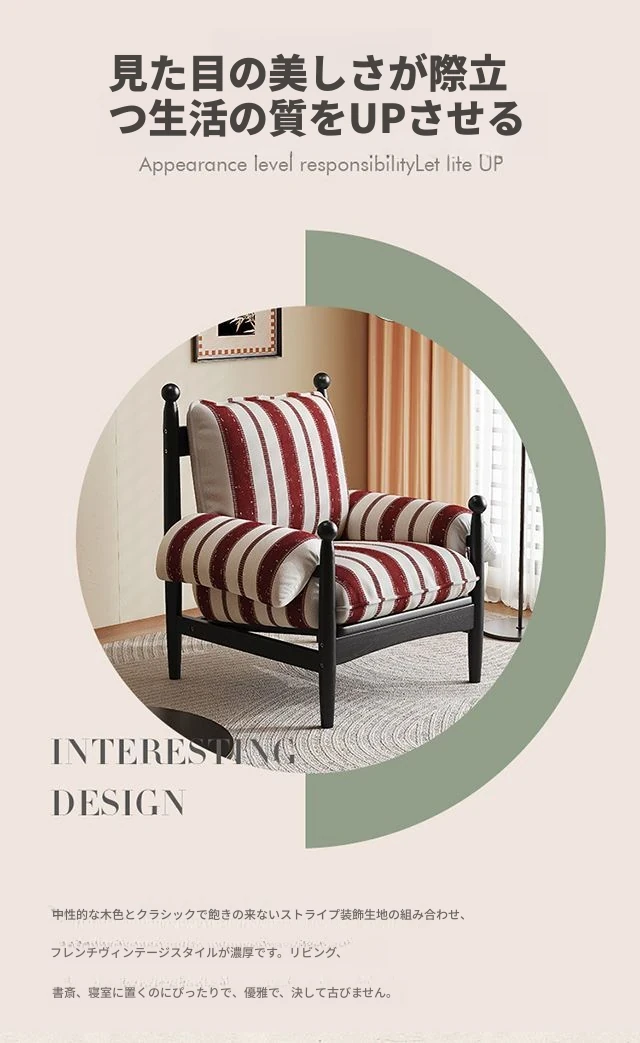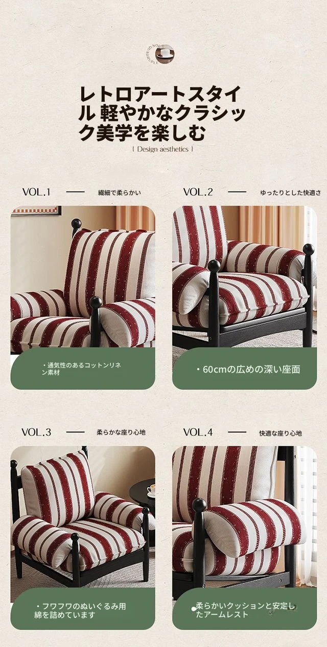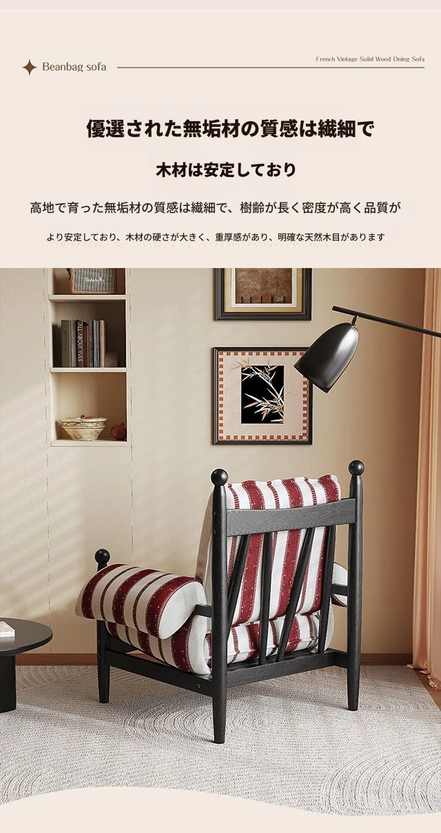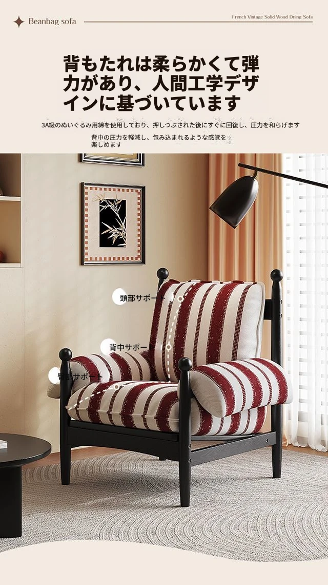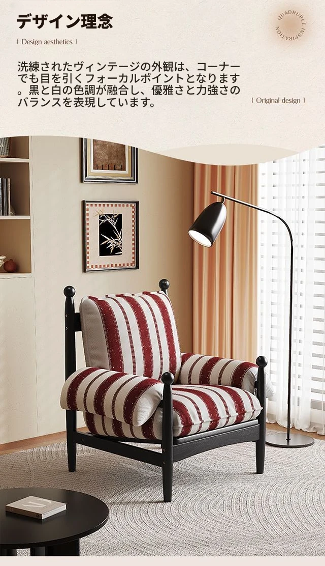 一人用ソファチェア|寝室やリビングに最適|リラックスできるバルコニーチェア|フレンチヴィンテージスタイルの赤黒椅子でおしゃれな空間を演出!