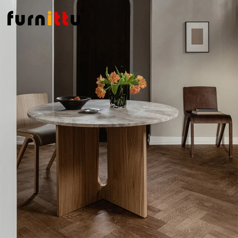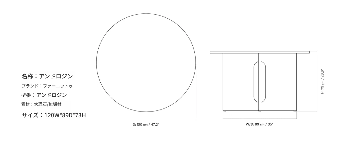 furnittuのクリエイティブデザイナーズ家具|北欧スタイルのリビング&ダイニング用大理石&無垢材テーブル「ANDROGYNE」|洗練された美しさと機能性を兼ね備えた一品!