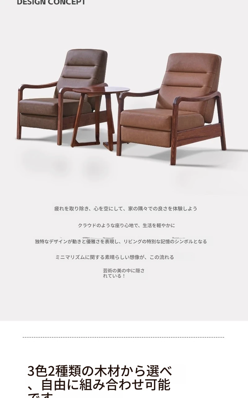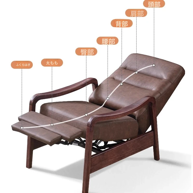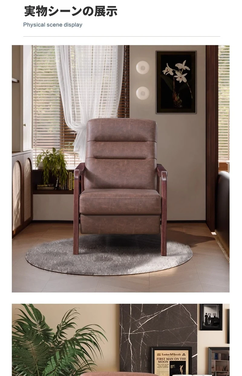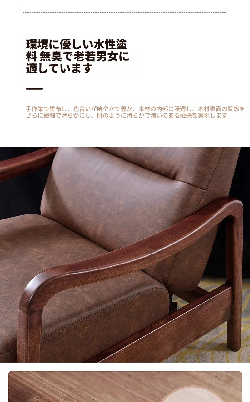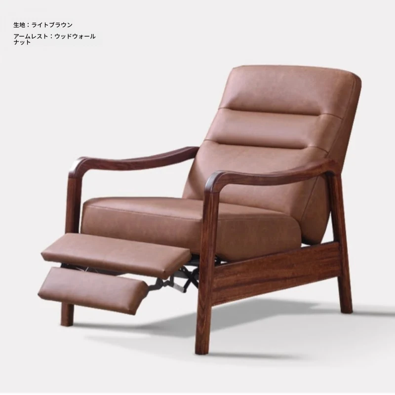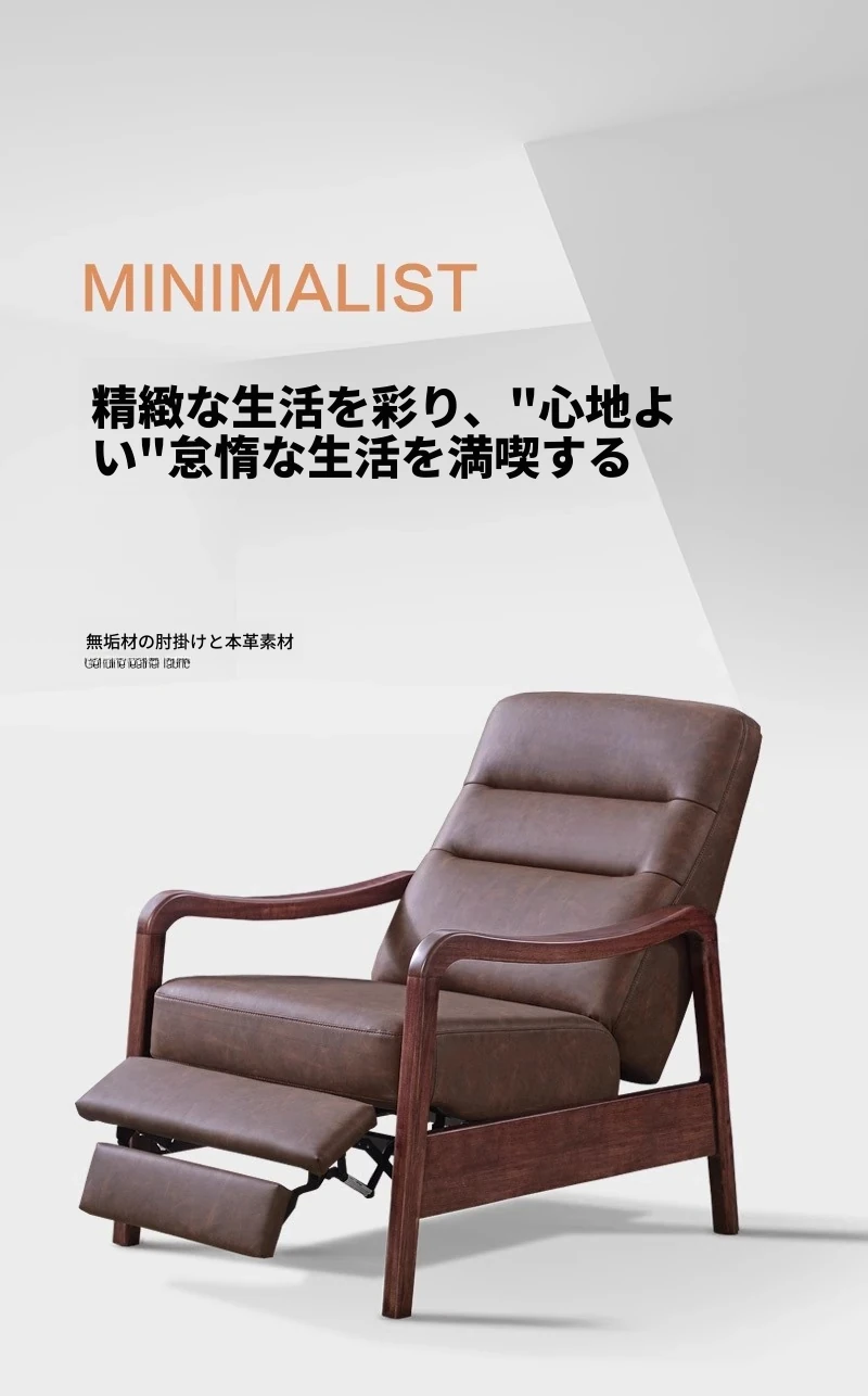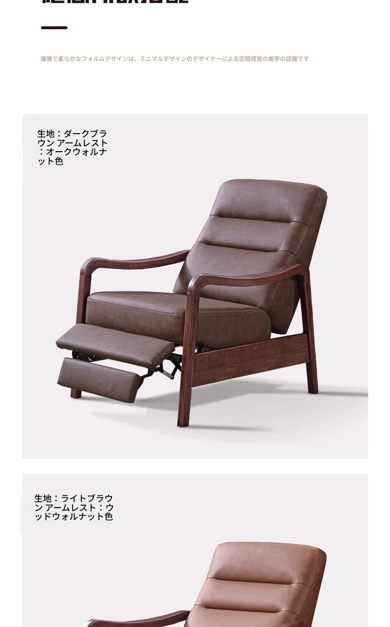 本革製ファンクショナルソファチェア|古風のリビングにぴったり!リラックスできる一人用ロッキングチェア|調整可能なアームレスト付き|ウッディブラック仕上げで高級感溢れるデザイン!