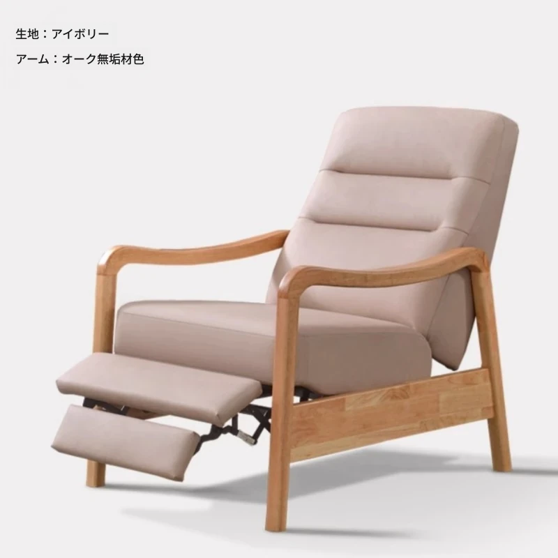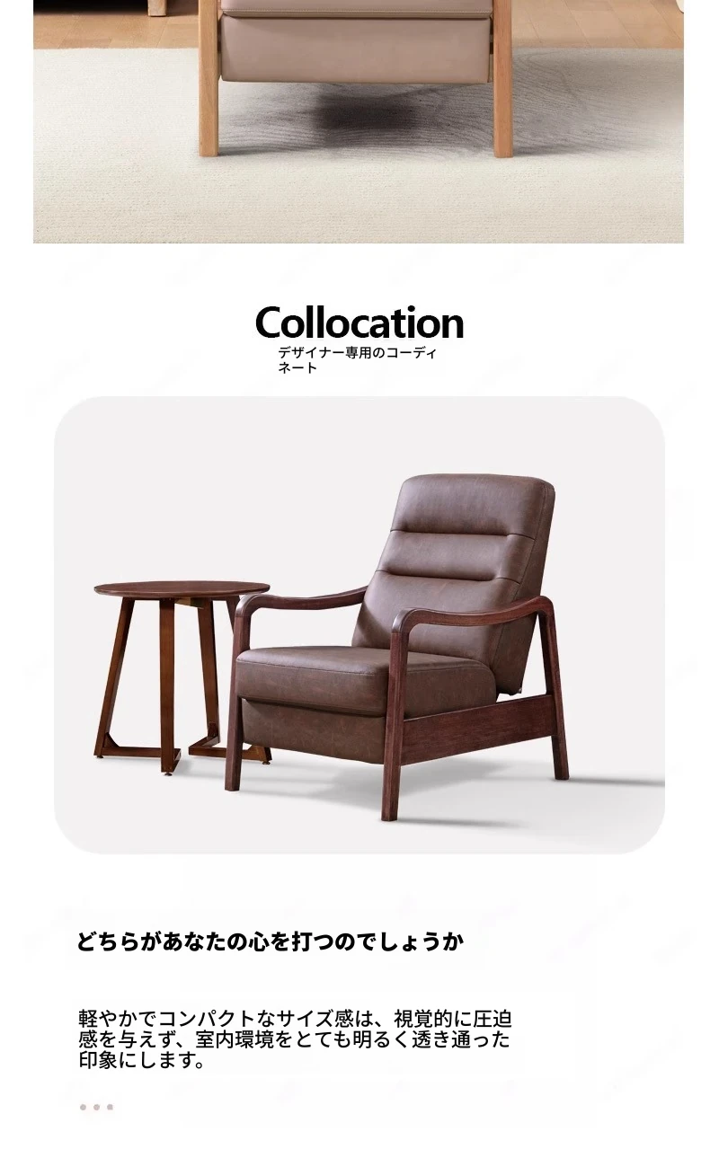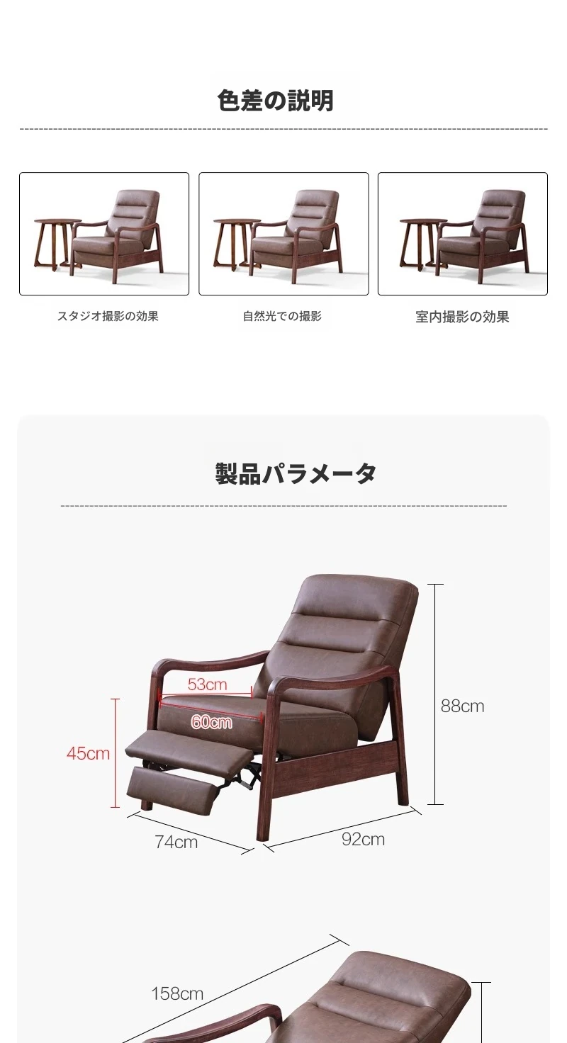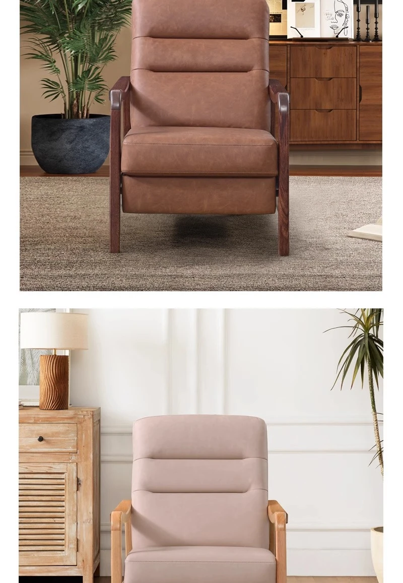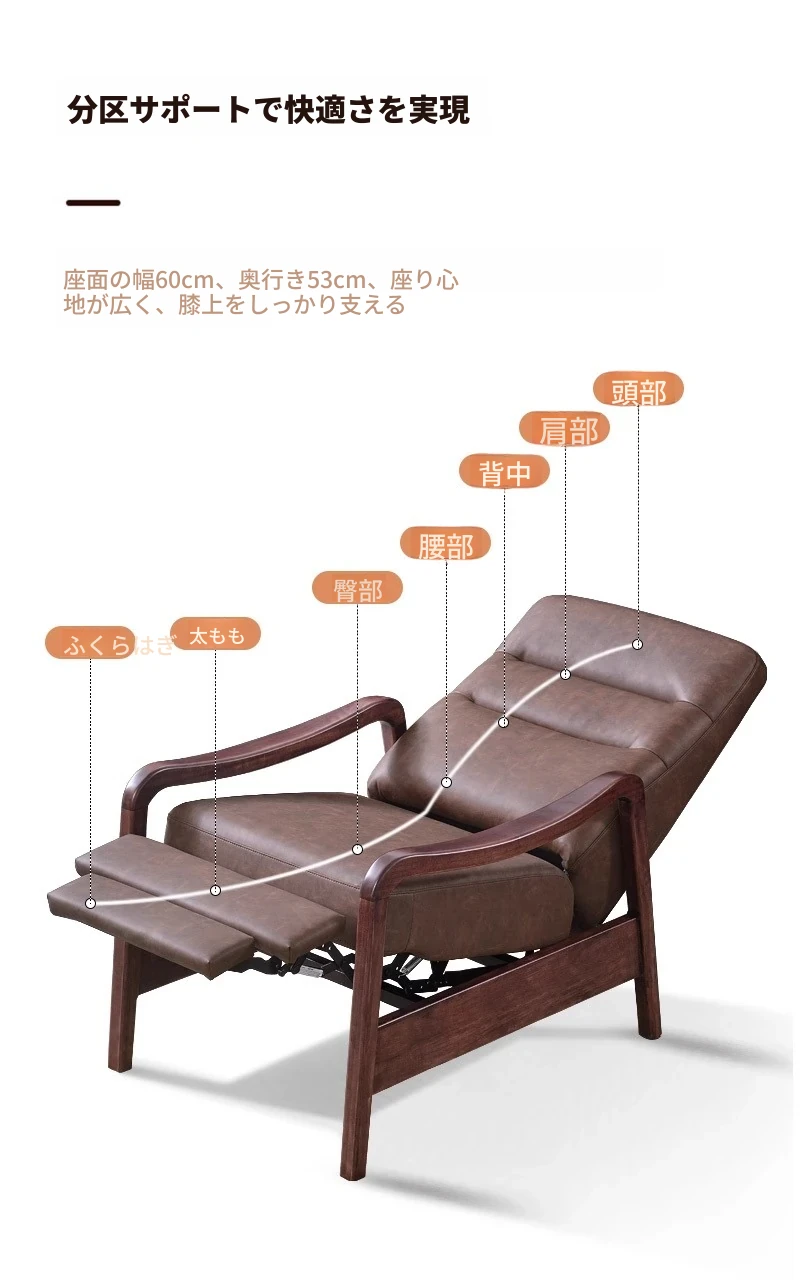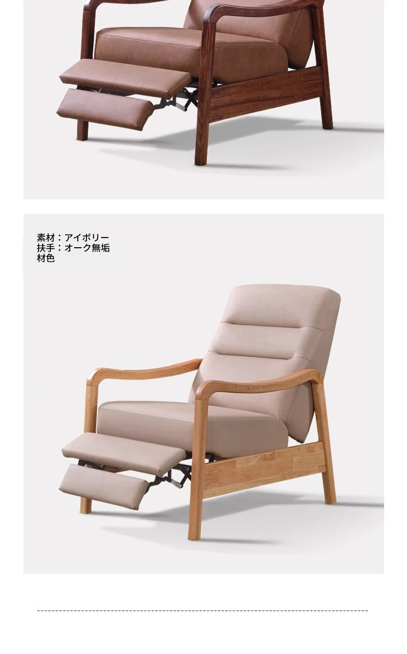 本革製ファンクショナルソファチェア|古風のリビングにぴったり!リラックスできる一人用ロッキングチェア|調整可能なアームレスト付き|ウッディブラック仕上げで高級感溢れるデザイン!