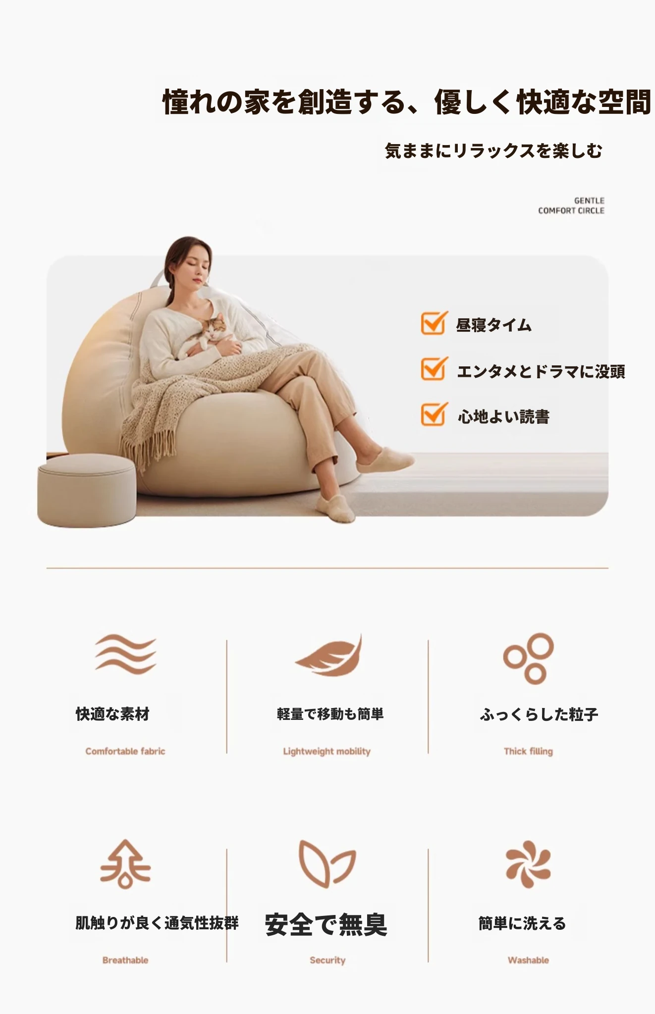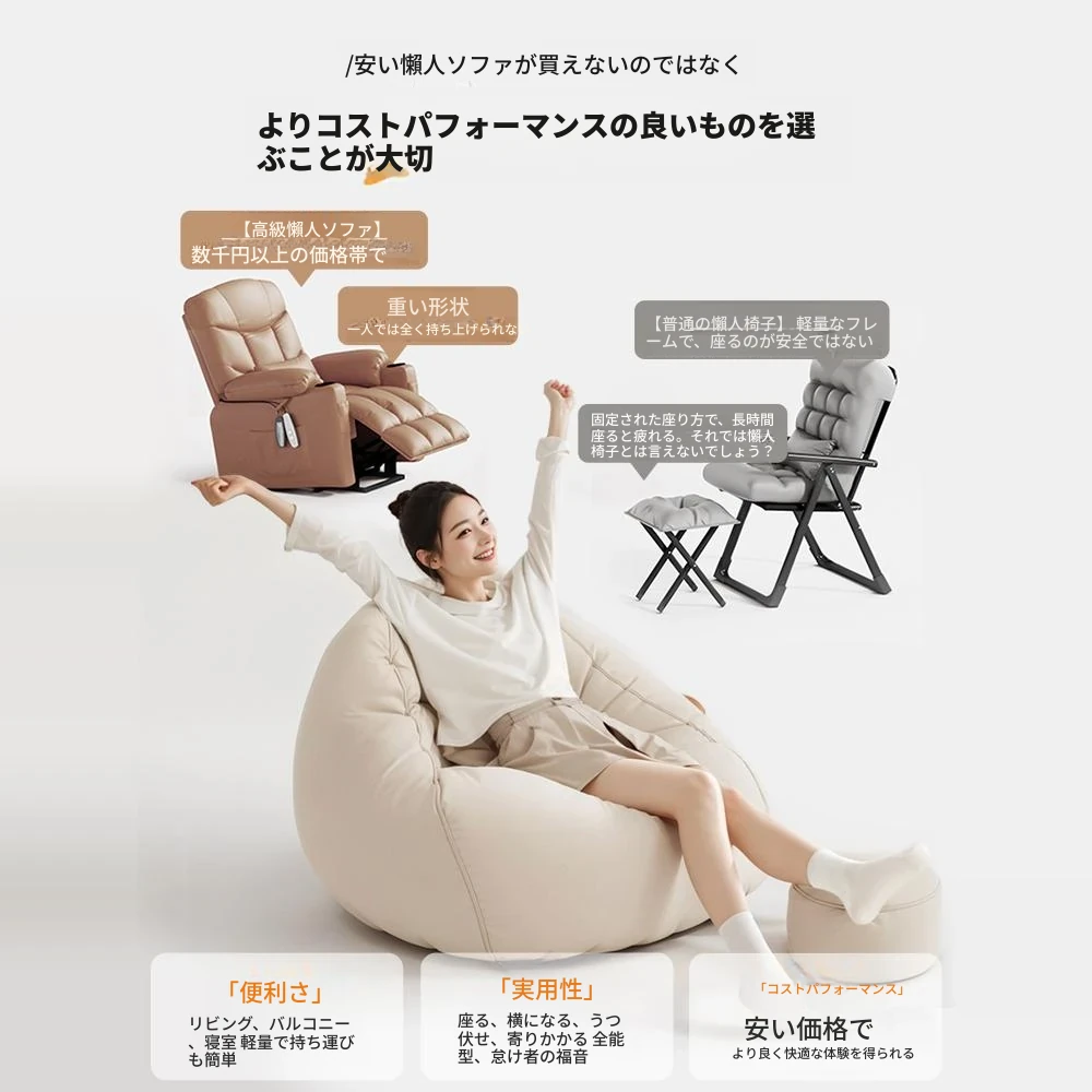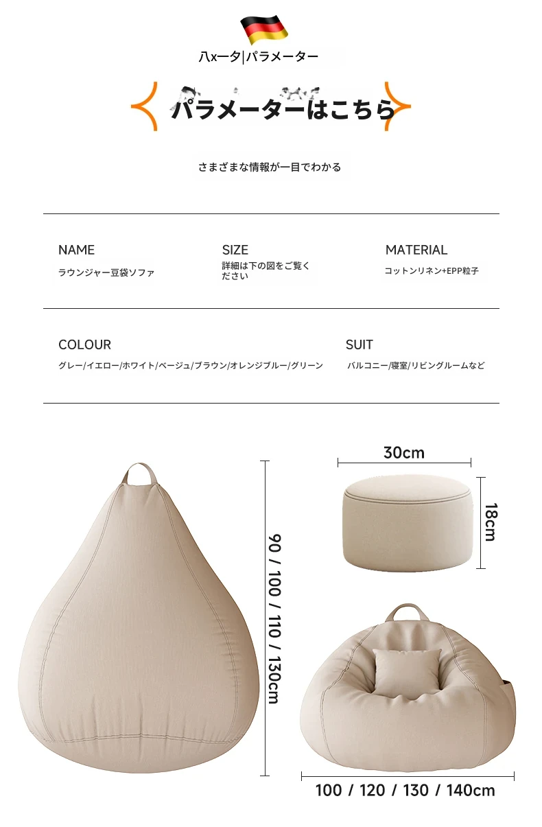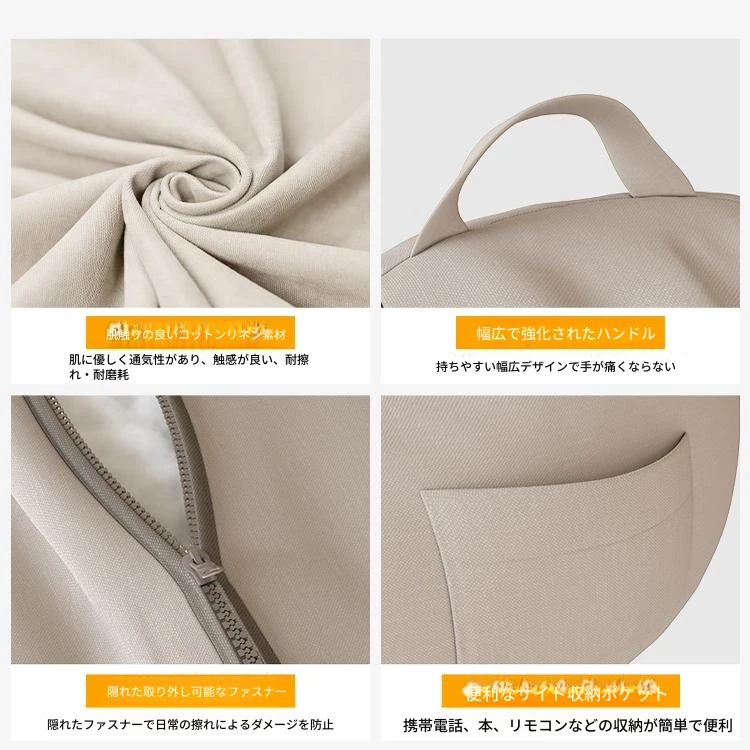 【ドイツ輸入】✅アップグレード厚手防水テクノロジー生地⭐ジャンボ130*150/クリームホワイト(クッション+フットレスト+独立カバー洗濯可能付き)