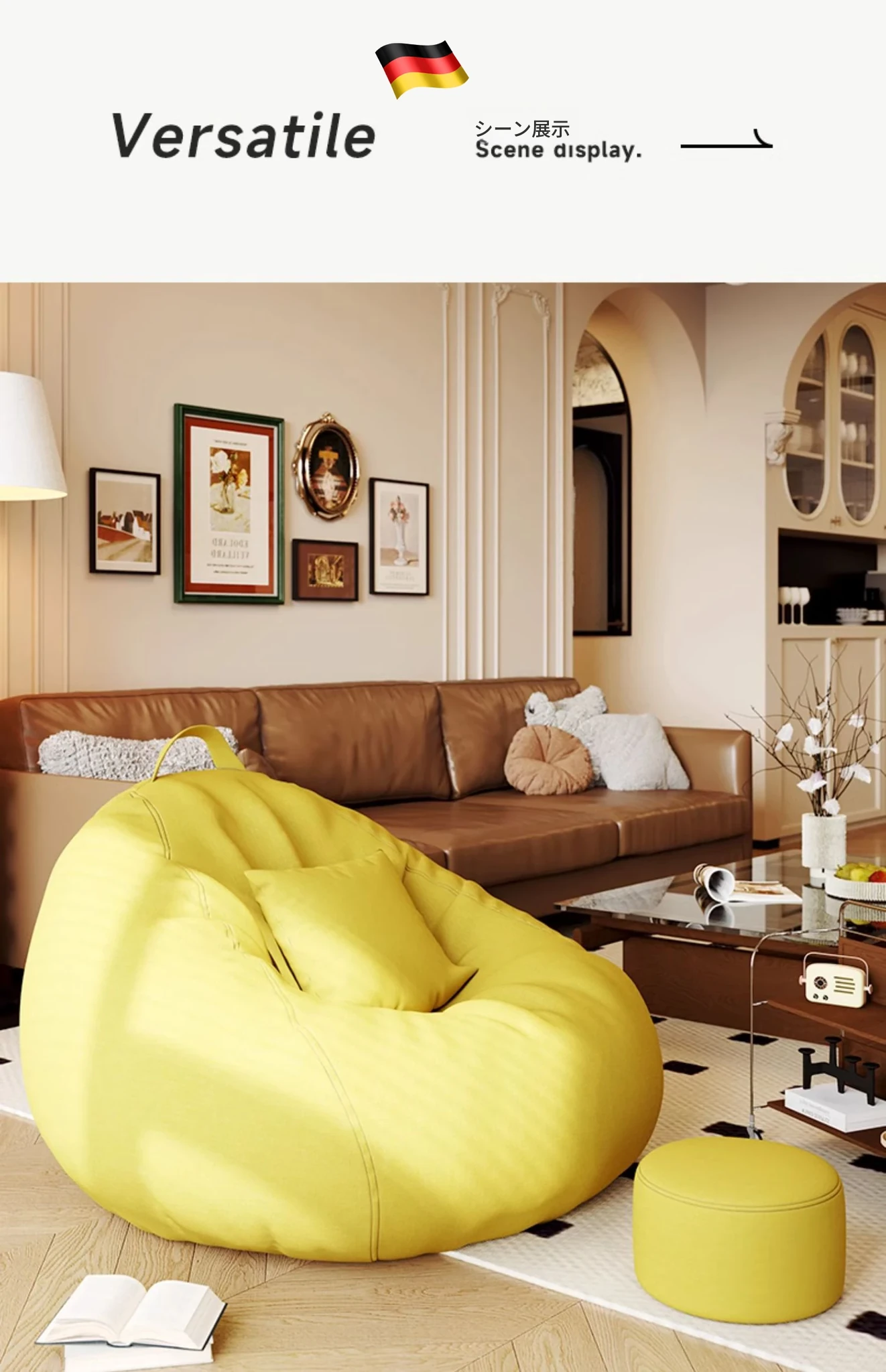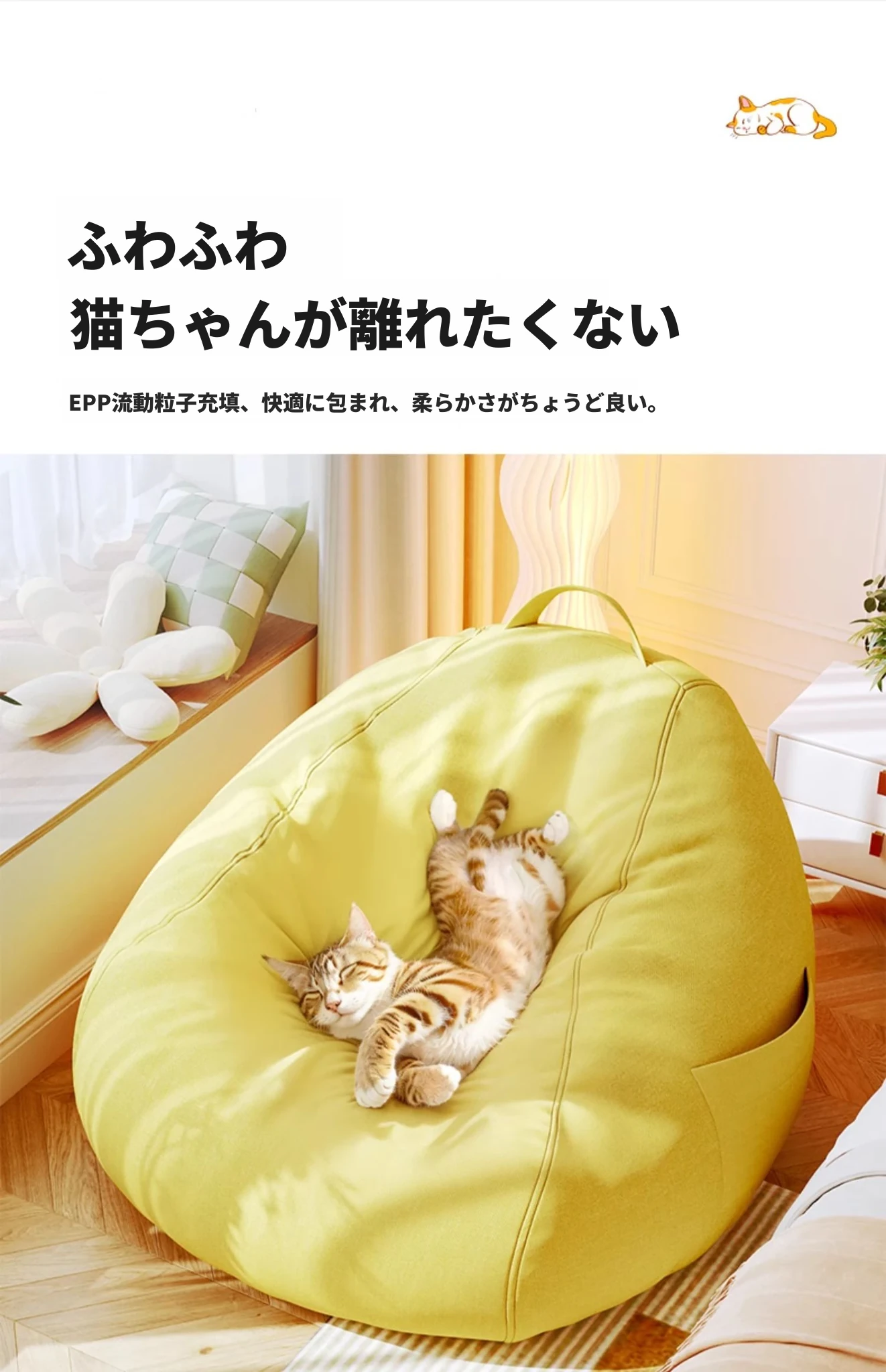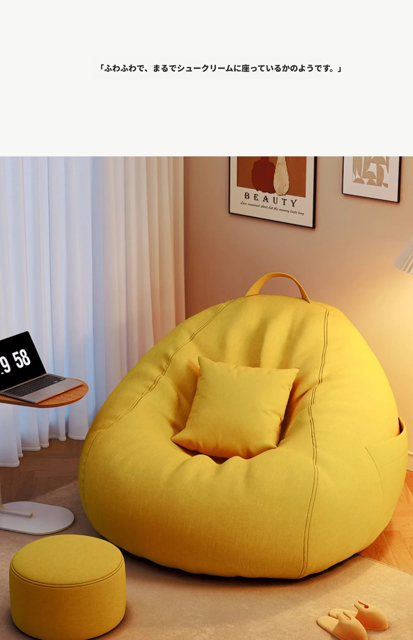 【ドイツ輸入】✅アップグレード厚手防水テクノロジー生地⭐ジャンボ130*150/スウィートイエロー(クッション+フットレスト+独立カバー洗濯可能付き)