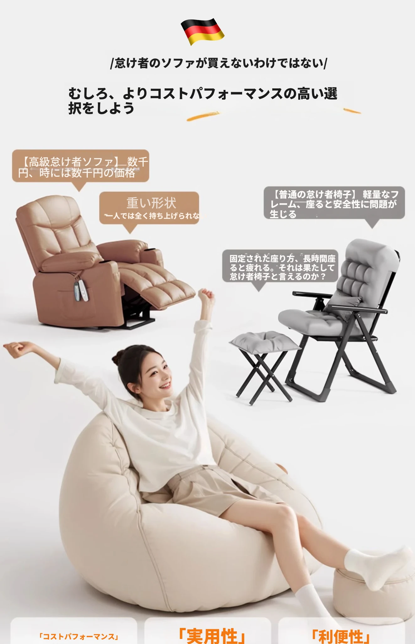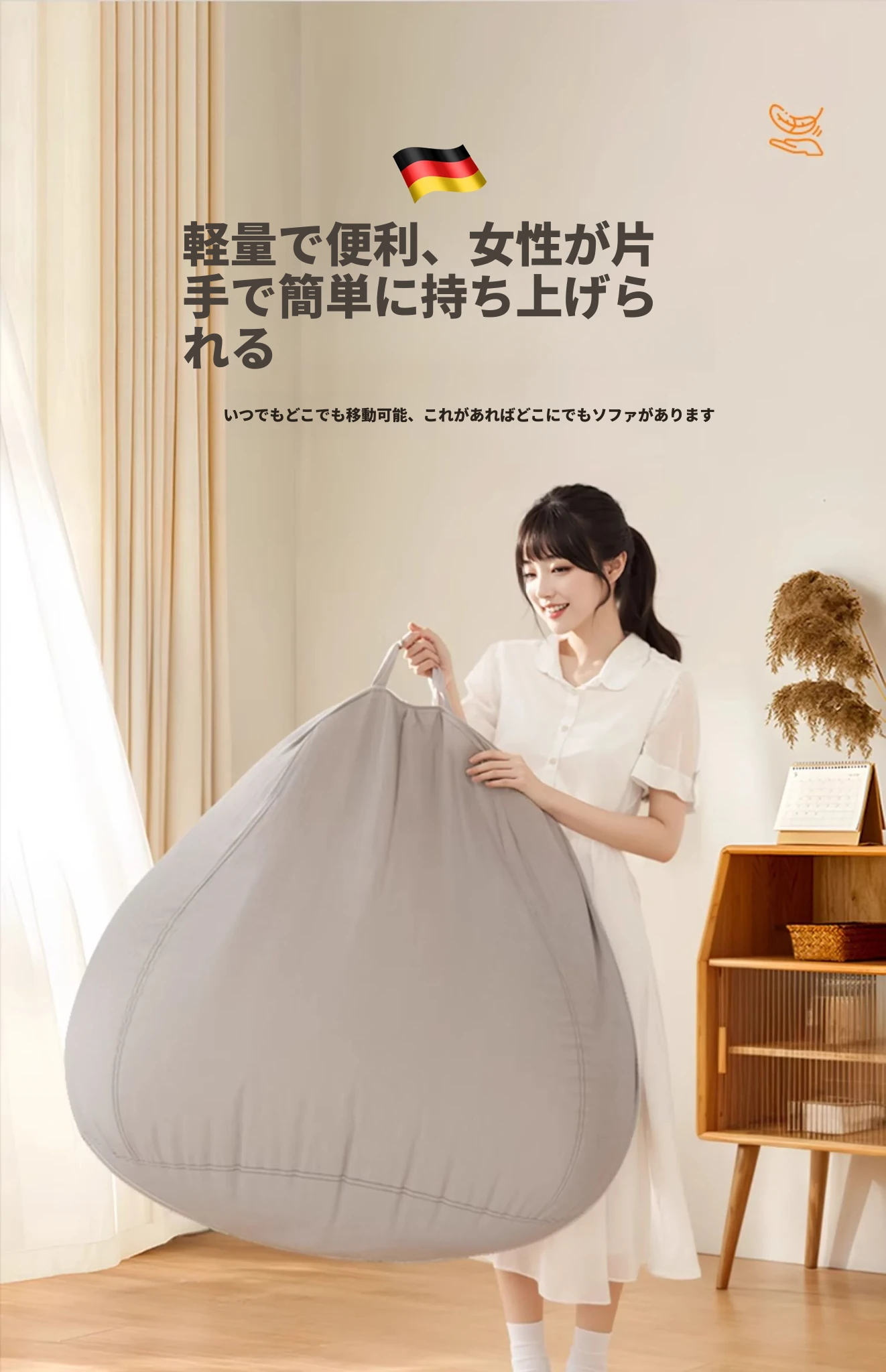 【ドイツ輸入】✅アップグレード厚手防水テクノロジー生地⭐ジャンボ130*150/ハートウォーミングオレンジ(クッション+フットレスト+独立カバー洗濯可能付き)
