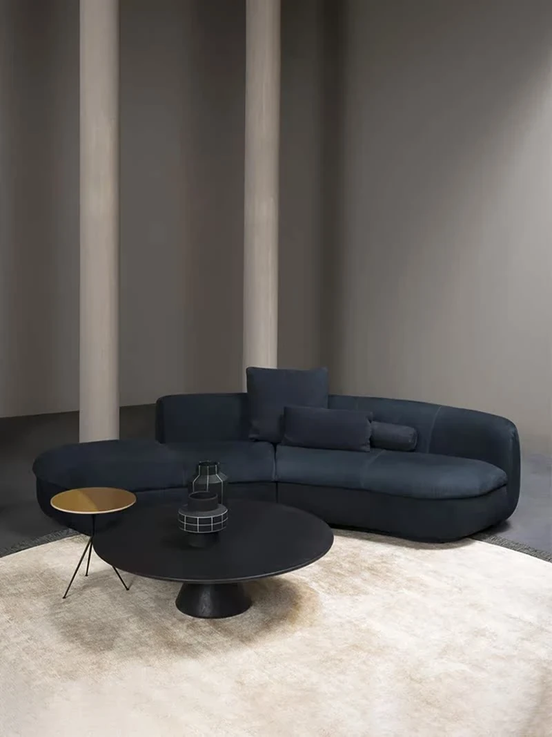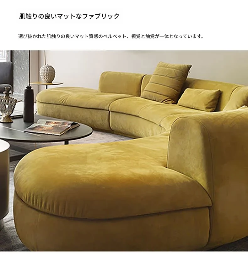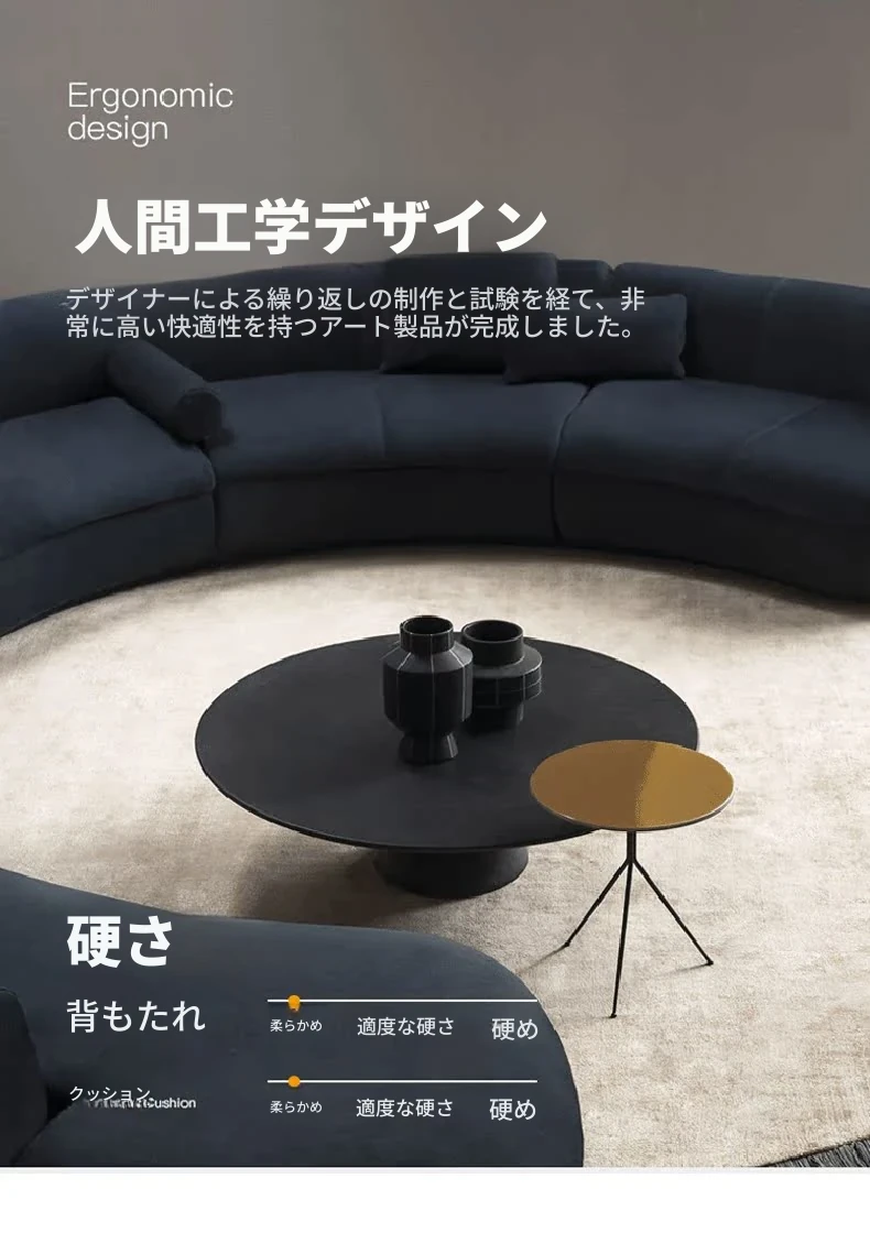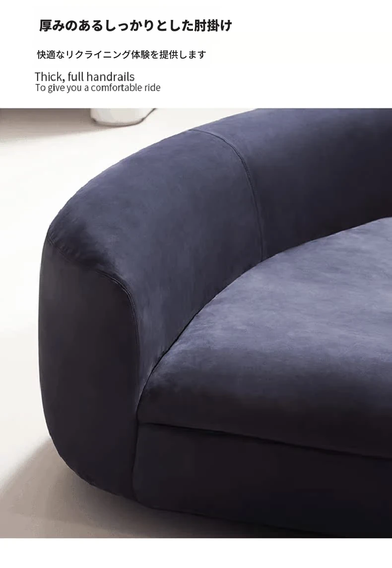 イタリアンデザイナーBAXTERのラウンドソファ、マットな生地でスタイリッシュな形状。贅沢な別荘や広々としたリビングにぴったりのエレガントなアイテムです。心地よい座り心地で、特別な空間を演出します。
