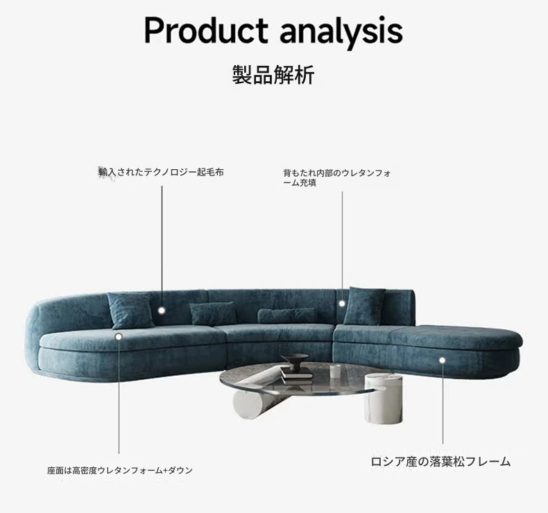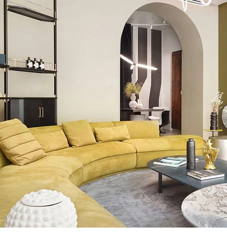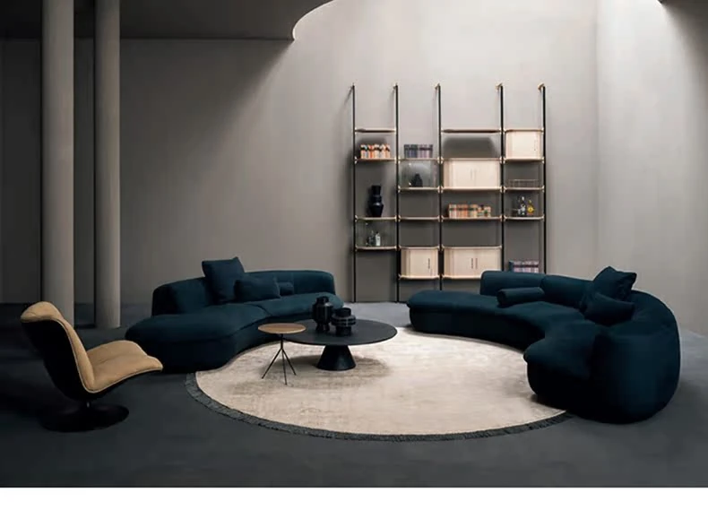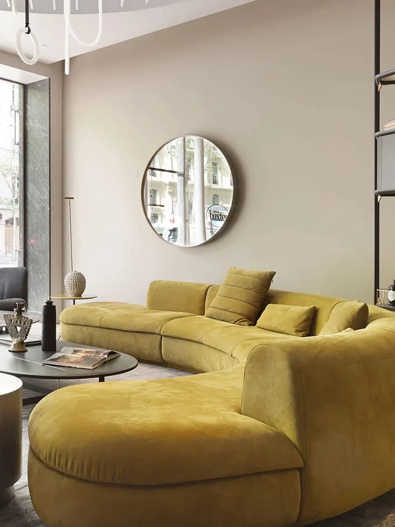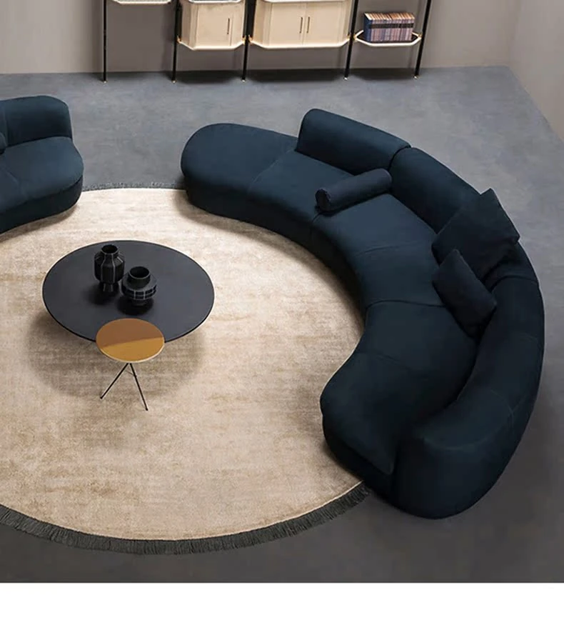 イタリアンデザイナーBAXTERのラウンドソファ、マットな生地でスタイリッシュな形状。贅沢な別荘や広々としたリビングにぴったりのエレガントなアイテムです。心地よい座り心地で、特別な空間を演出します。
