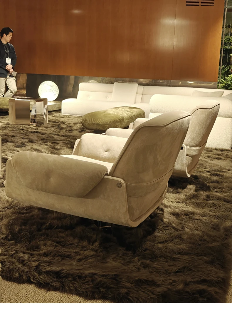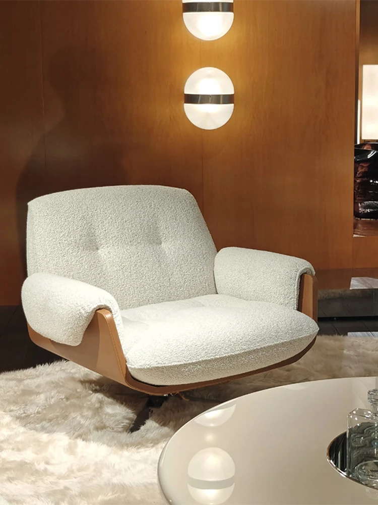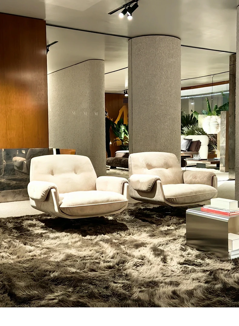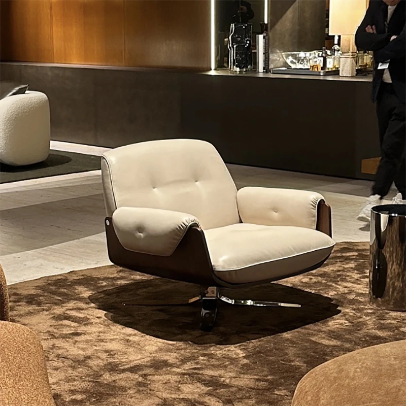 イタリアンハイエンドデザインの回転式リラックスチェア - モダンなリビングやバルコニーに最適!豪華な別荘や会所の大堂にもぴったりな一人掛けソファ。洗練されたデザインであなただけの特別な空間を演出します。