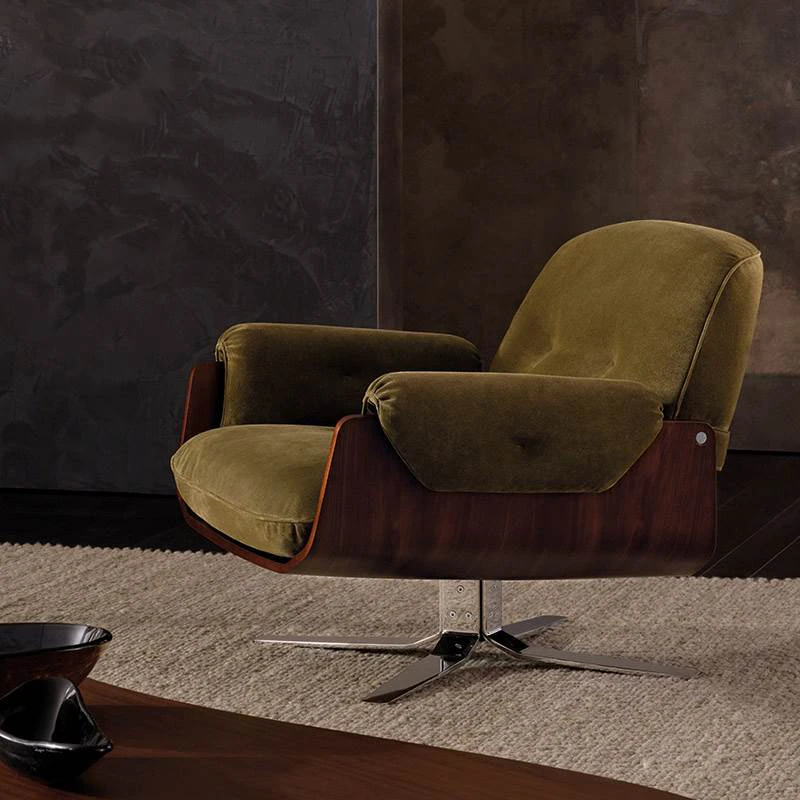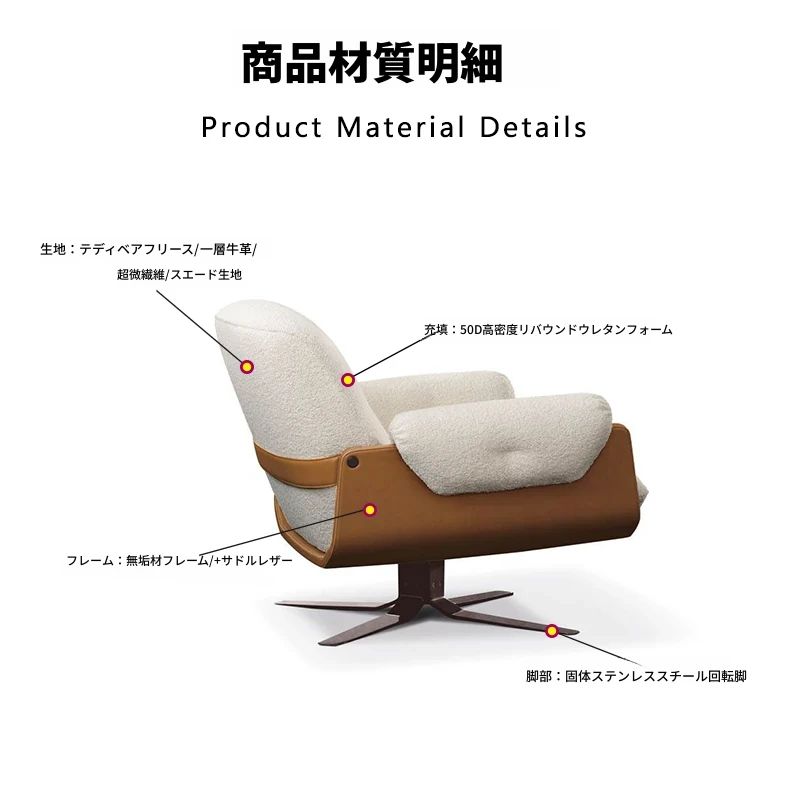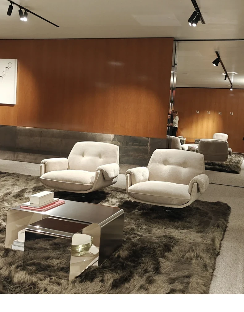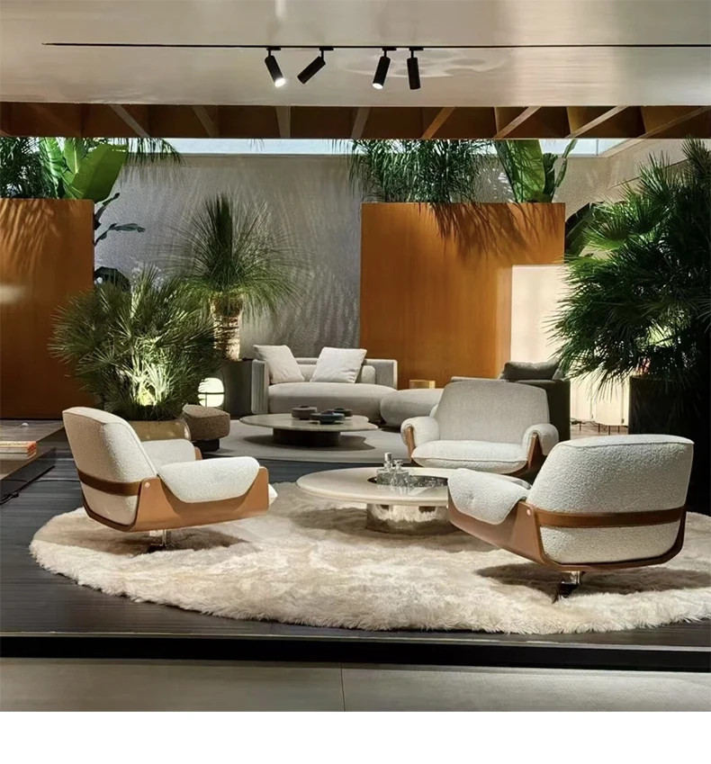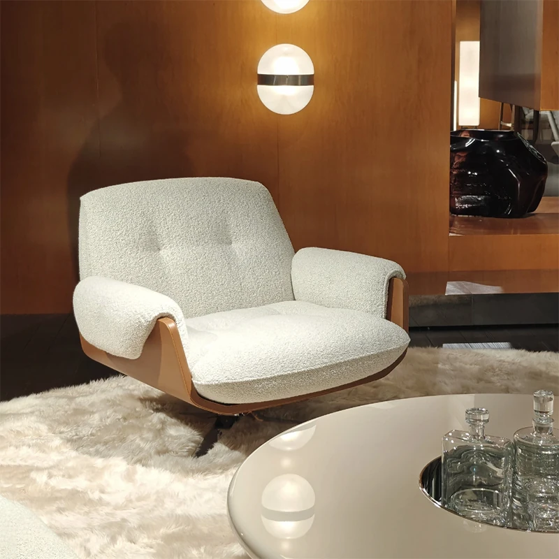 イタリアンハイエンドデザインの回転式リラックスチェア - モダンなリビングやバルコニーに最適!豪華な別荘や会所の大堂にもぴったりな一人掛けソファ。洗練されたデザインであなただけの特別な空間を演出します。