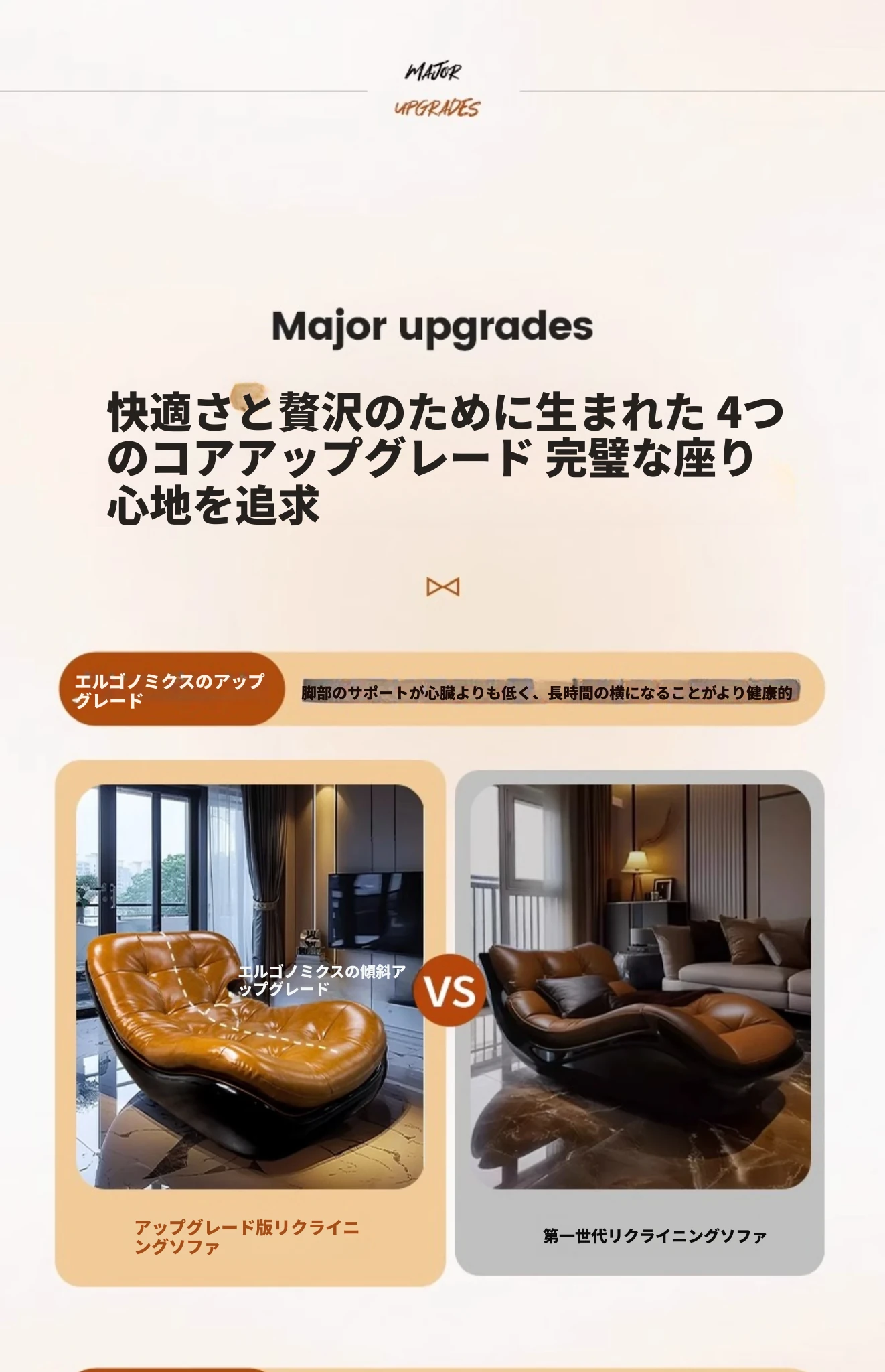 イタリアンスタイルのラグジュアリーなリクライニングソファー - 高級感溢れる一人用、快適な寝心地でリラックスできる!主寝室にぴったりなグラスファイバー製のスタイリッシュなデザイン。