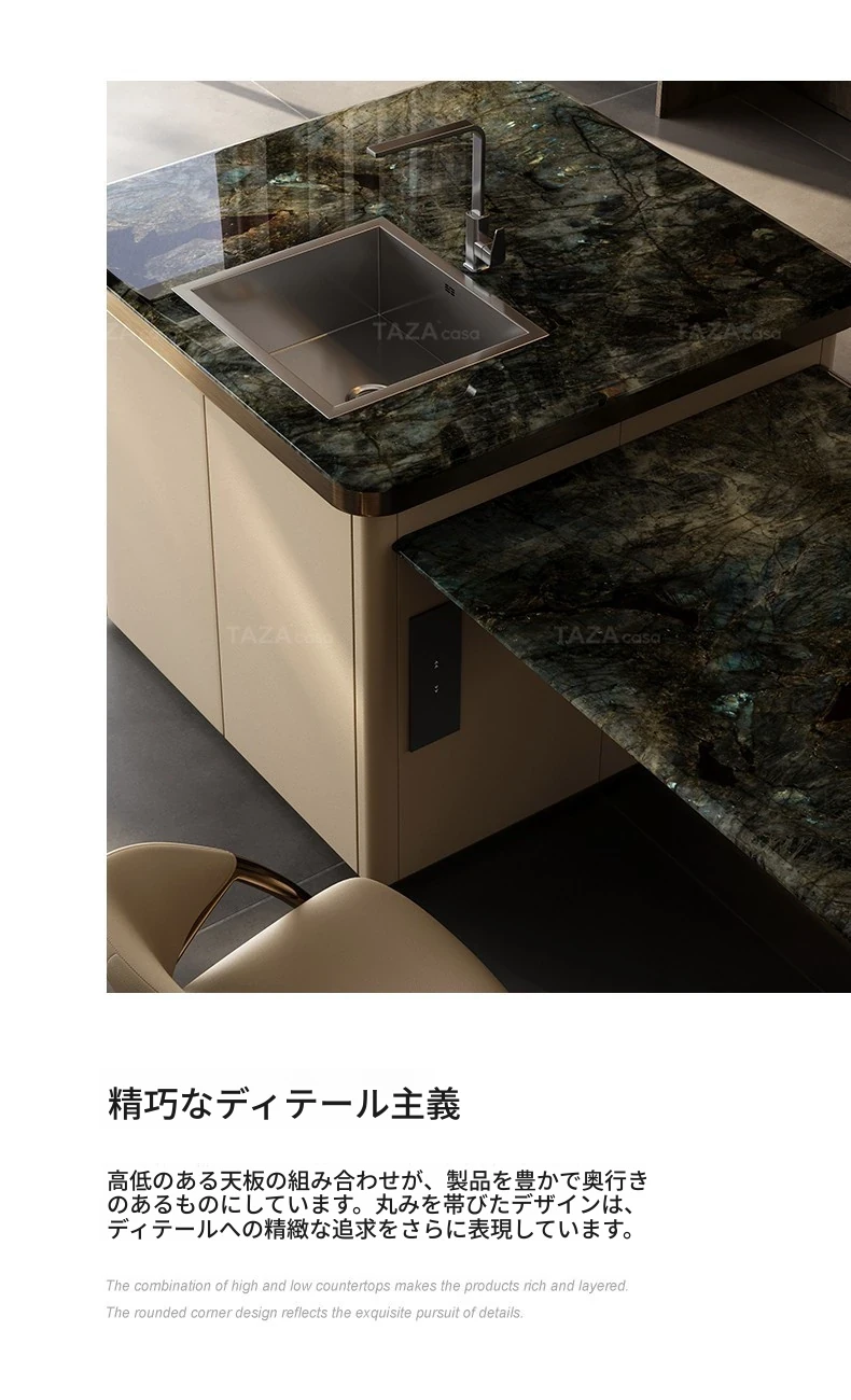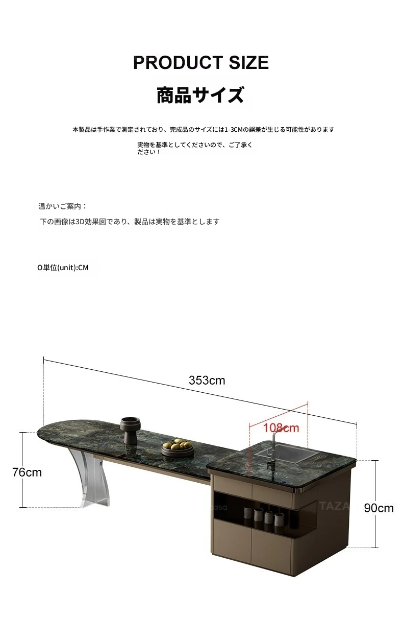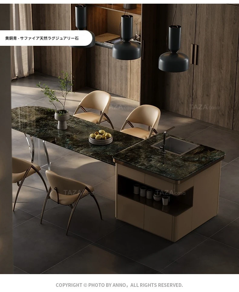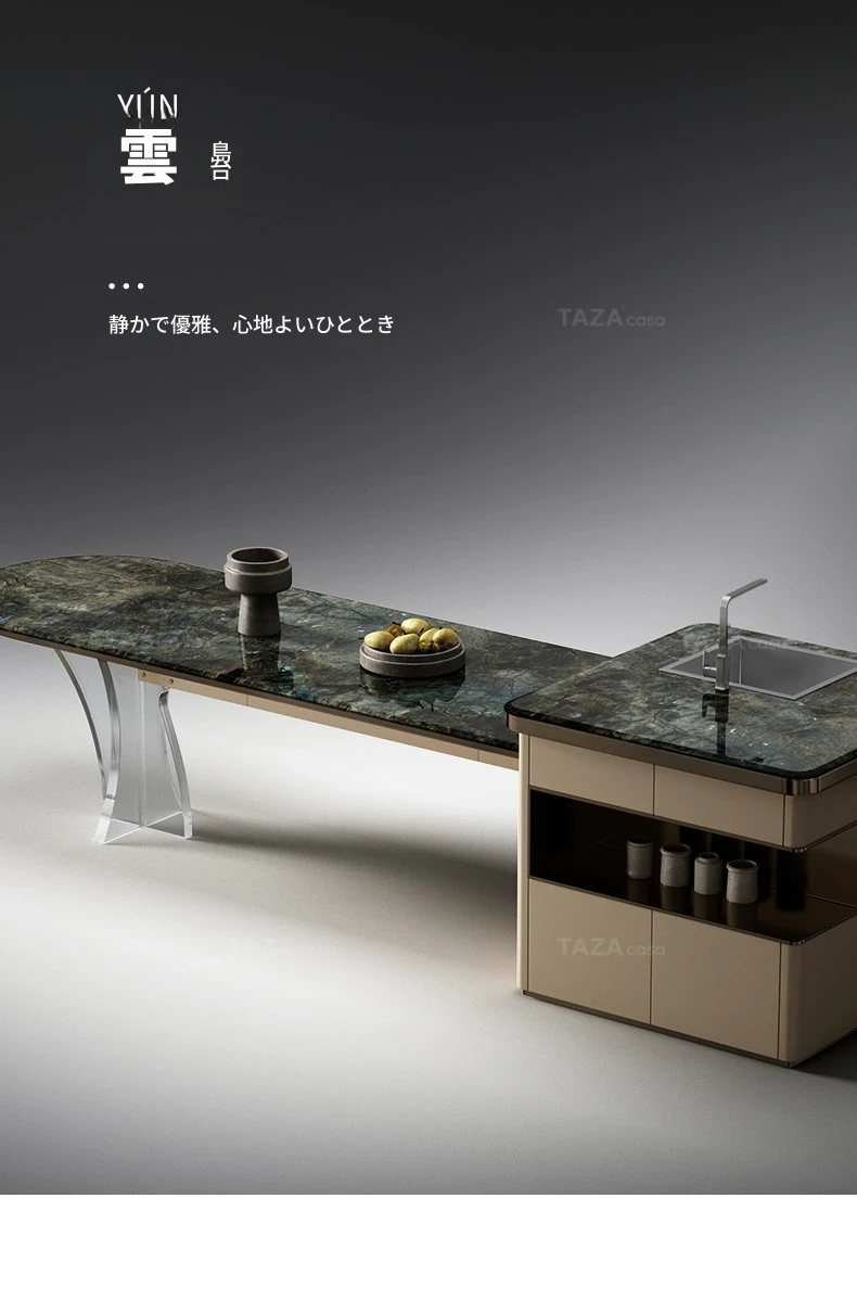 イタリアンミニマルデザインのアイランドテーブル - モダンでラグジュアリーな大平層&別荘用家具。スタイリッシュな一体型設計で、洗練された空間を演出します。