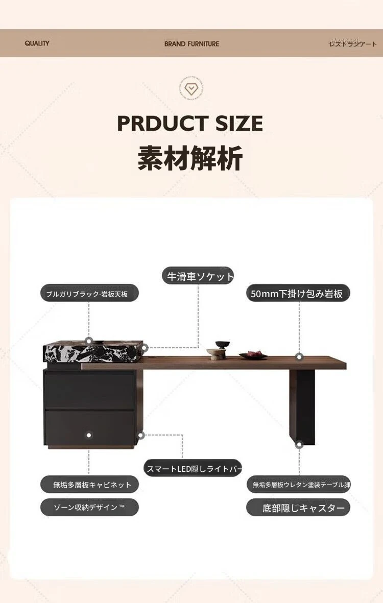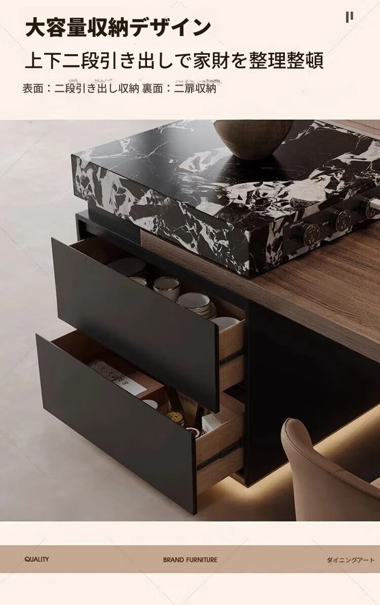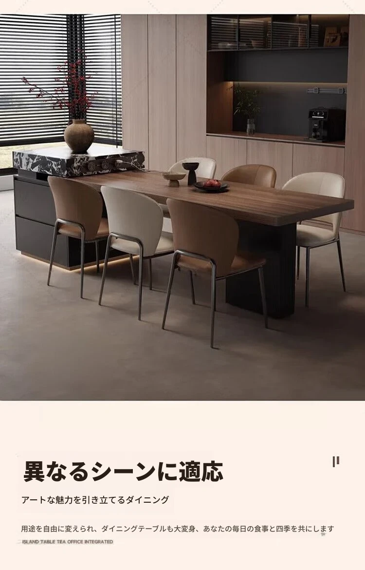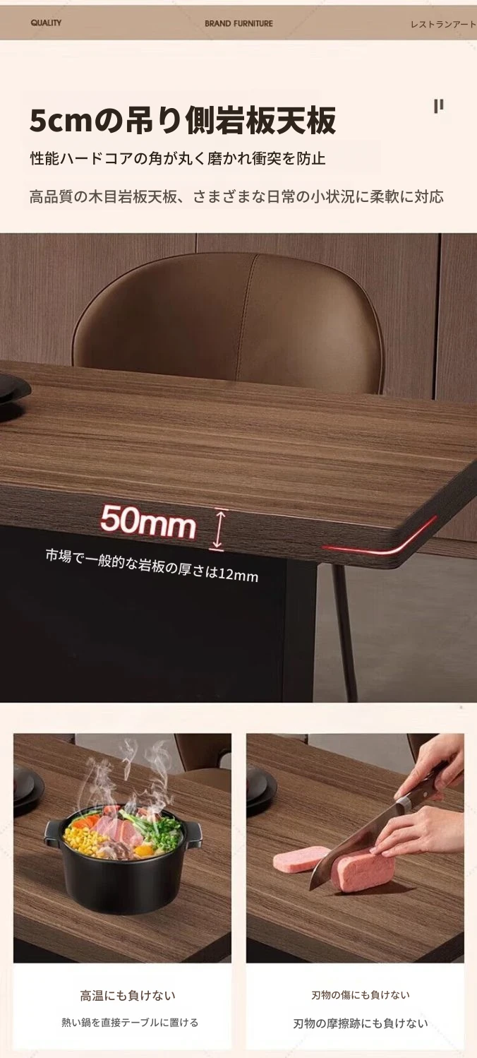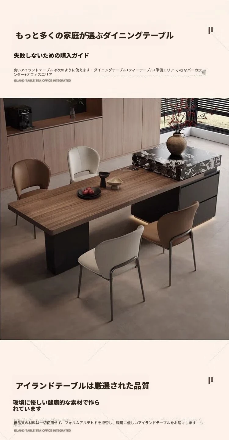 イタリアンミニマリスト伸縮式アイランドダイニングテーブル - 家庭向けの多機能大平面デザイン、木目調の岩板仕上げでスタイリッシュな食卓を演出します。