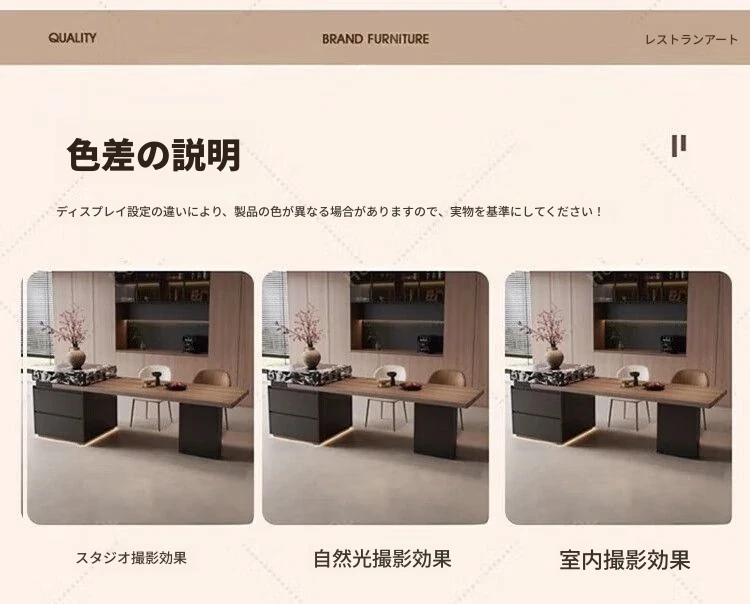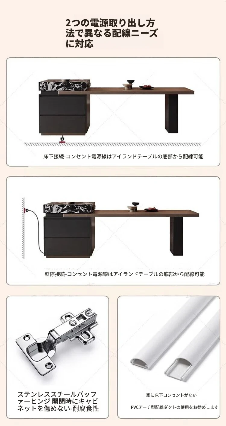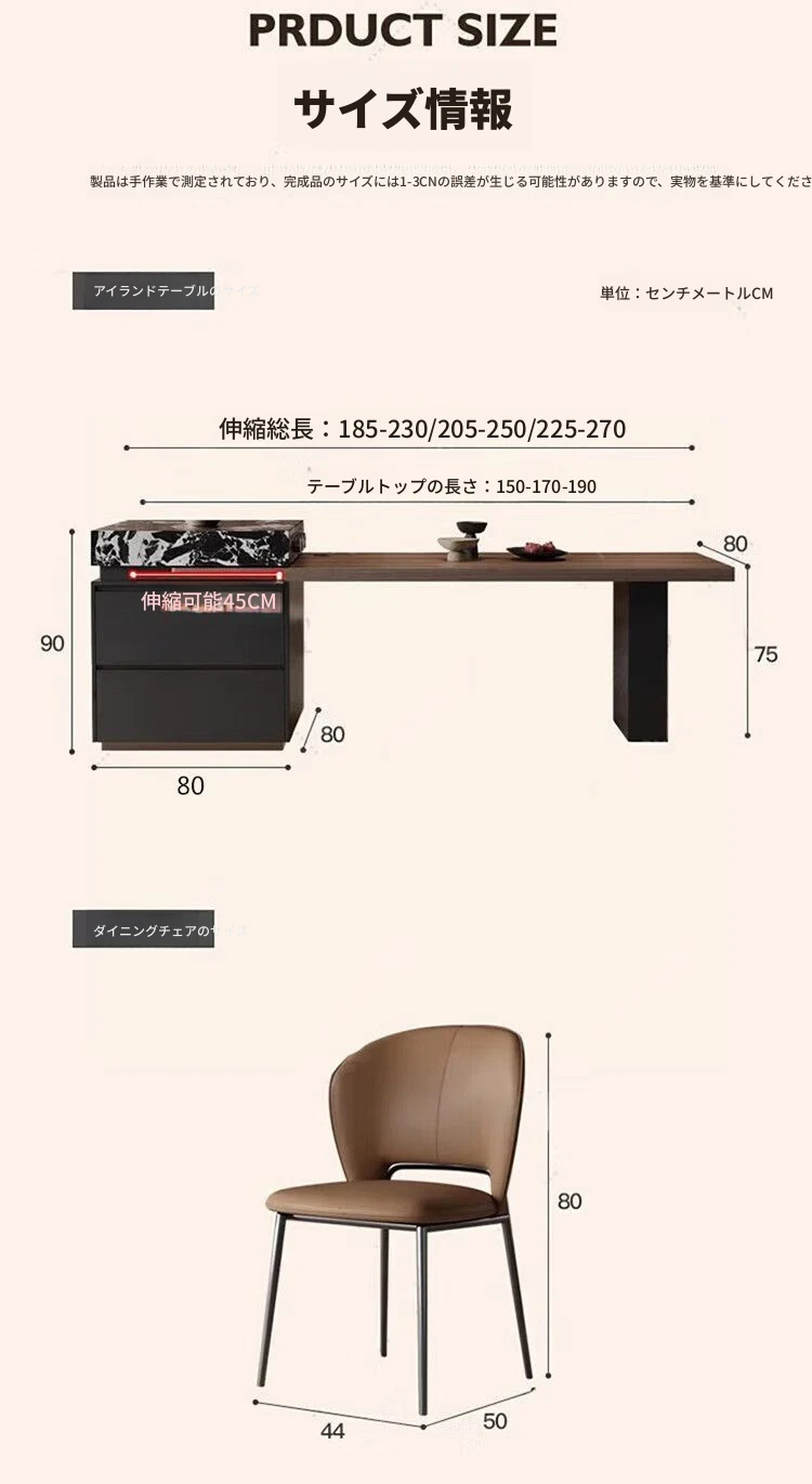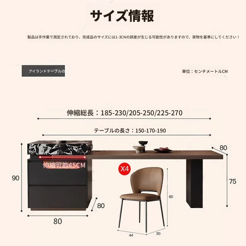 1.85-2.3メートル伸縮可能【テーブルトップ下掛け岩板】/アイランドテーブル+4椅子【無垢材多層板】