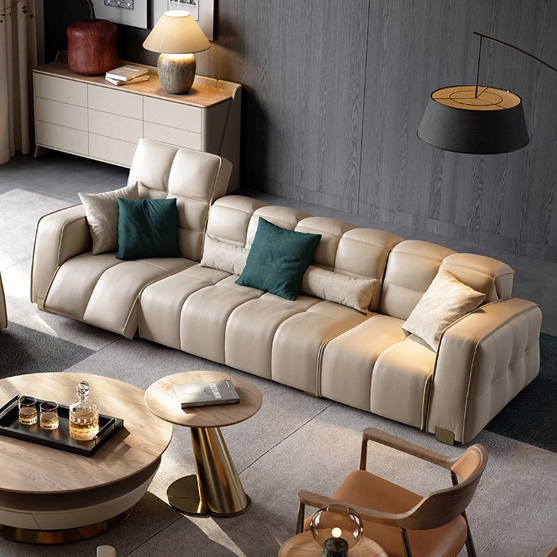 イタリアンミニマルデザインの多機能ソファ|高級感あふれる本革ソファ|別荘や高級リビングに最適なストレートコンビネーション電動ソファ|快適なひとときを提供します!