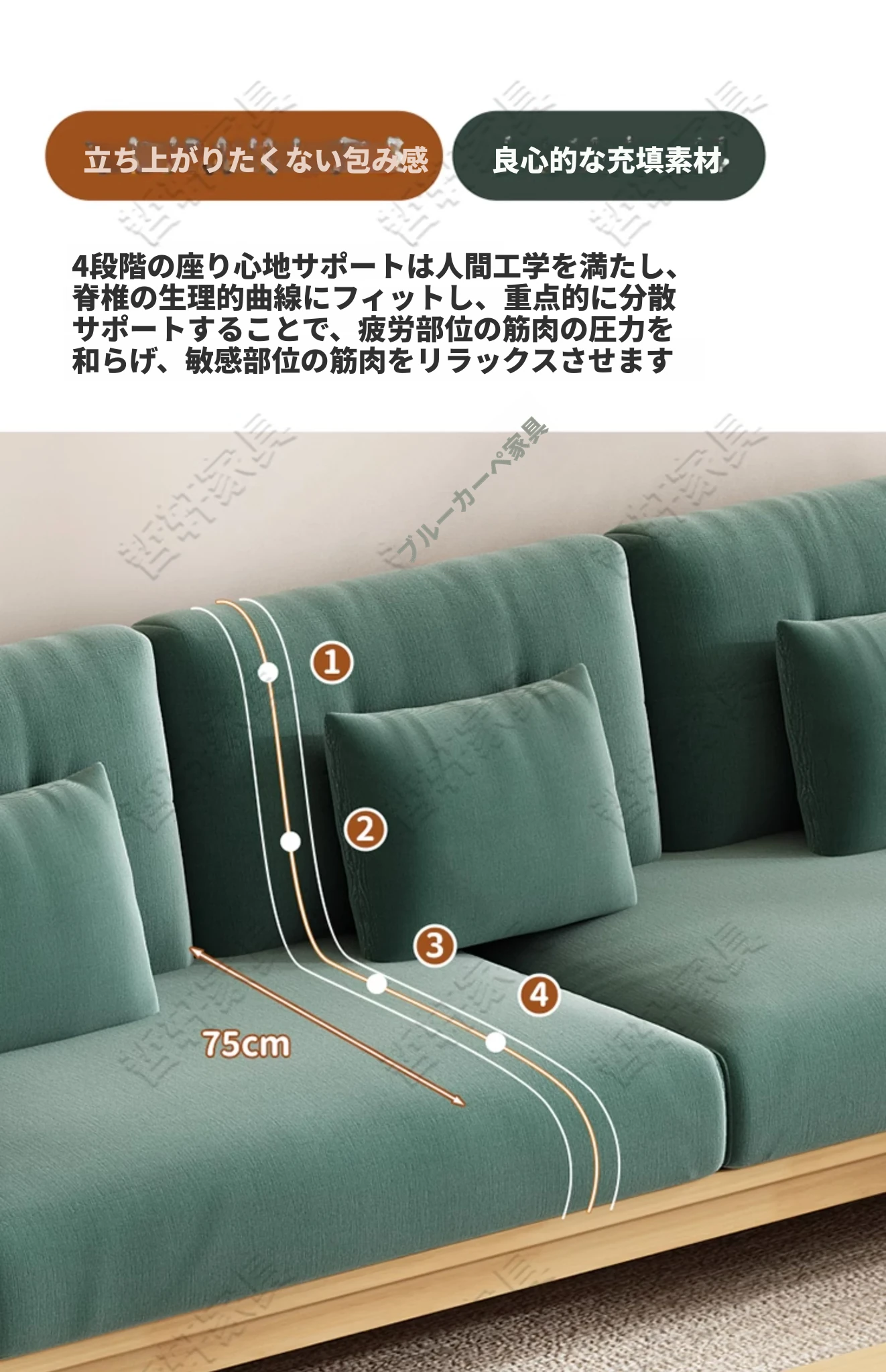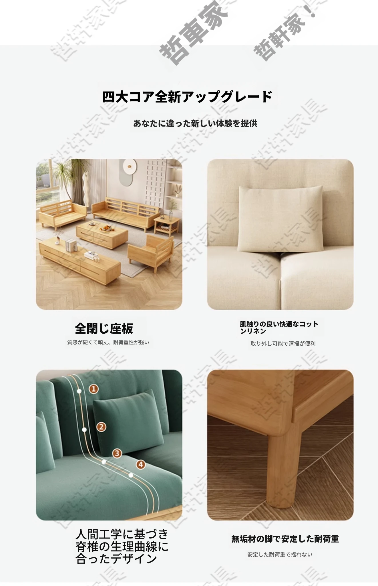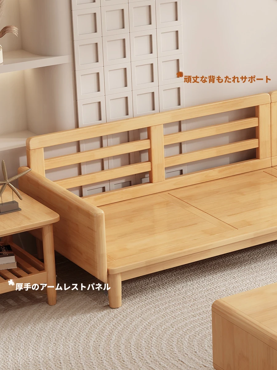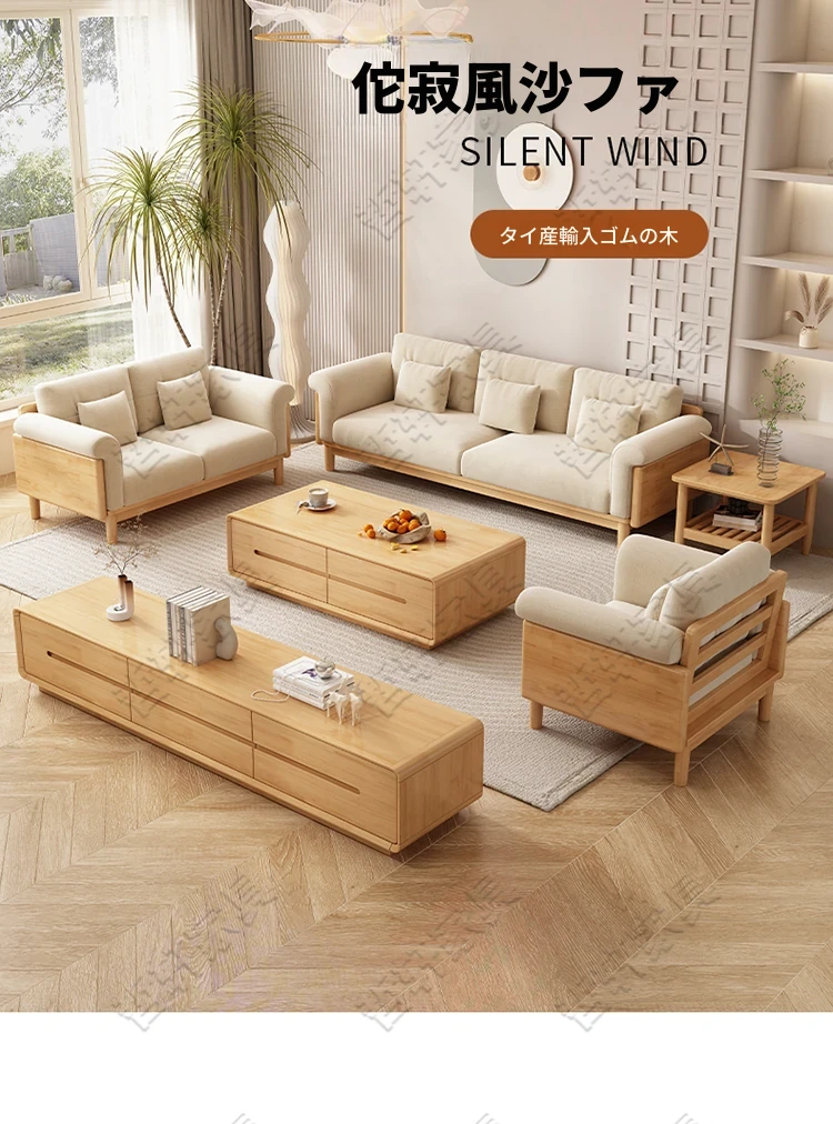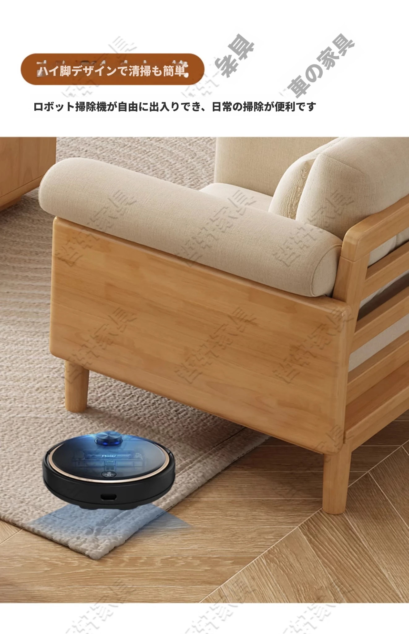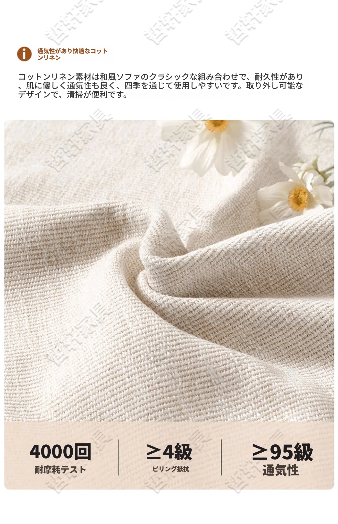 和風雲朵ソファー|無垢材使用の3人掛け|ナチュラルデザイン|小型リビングに最適|クリーミーな風合い|シンプルで洗える布製|快適な座り心地を実現!
