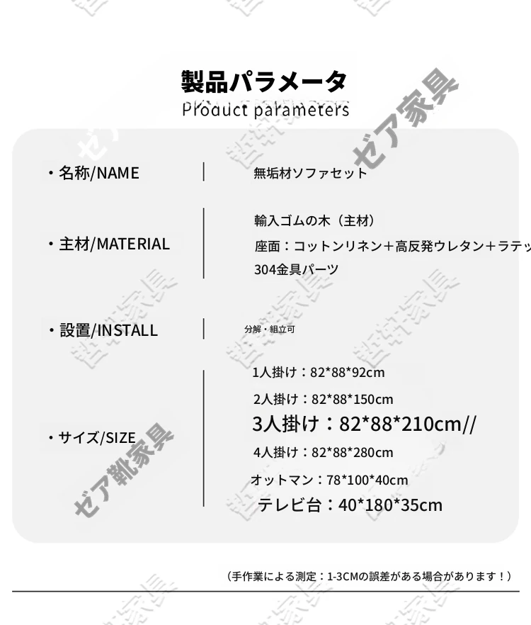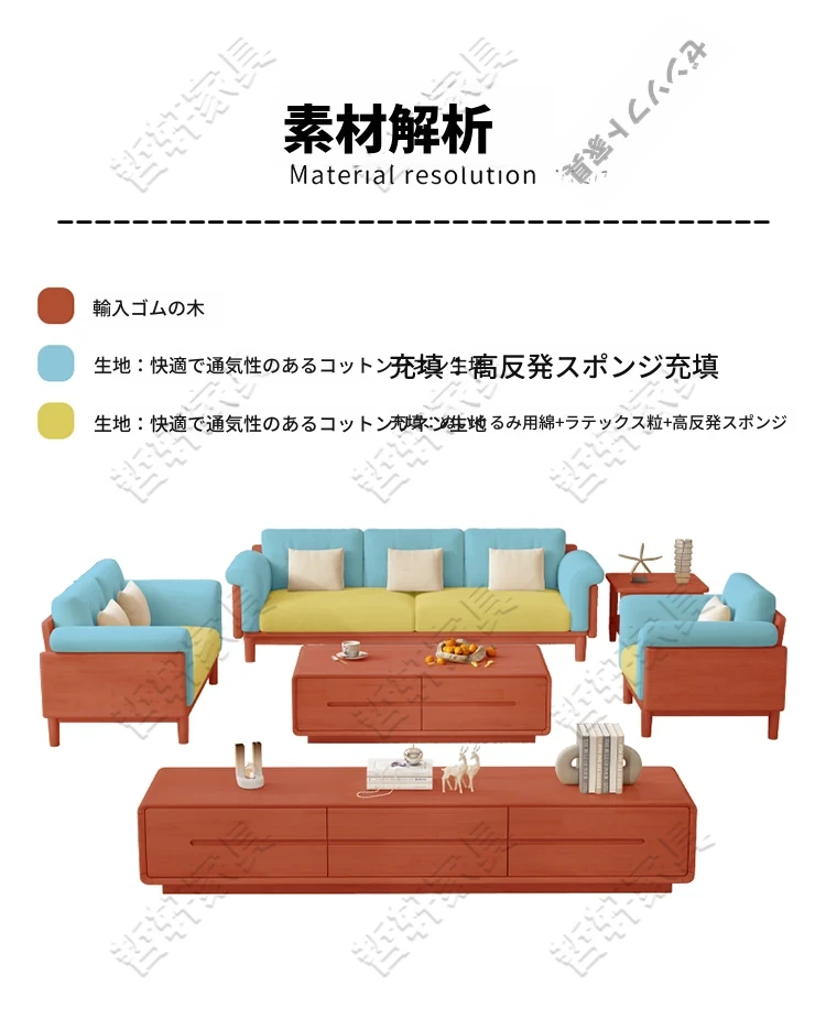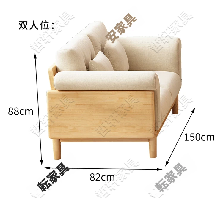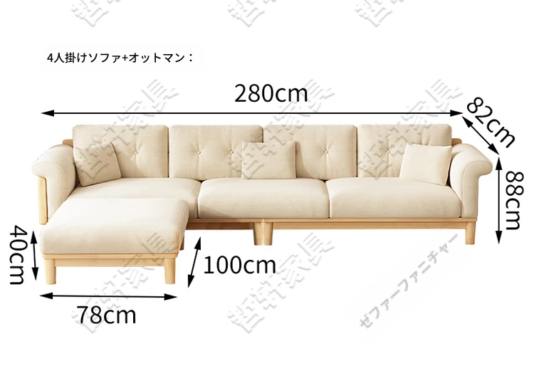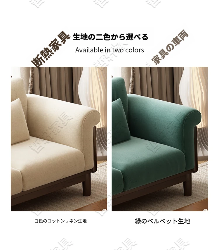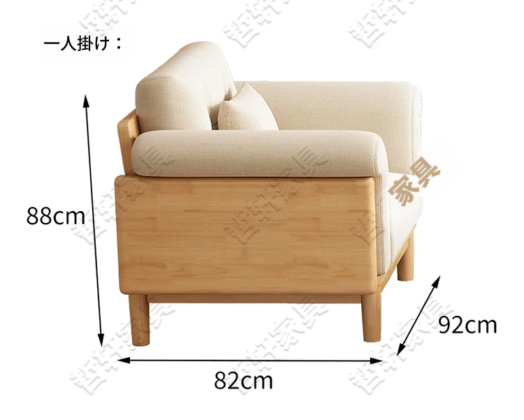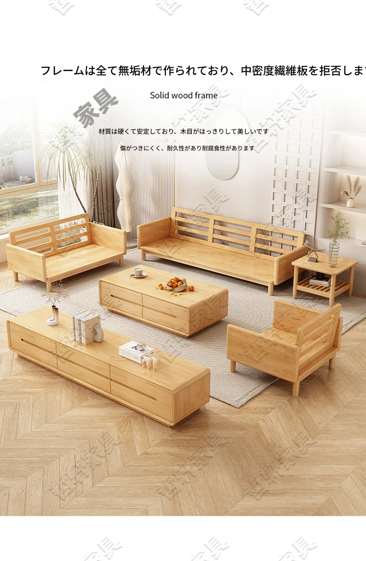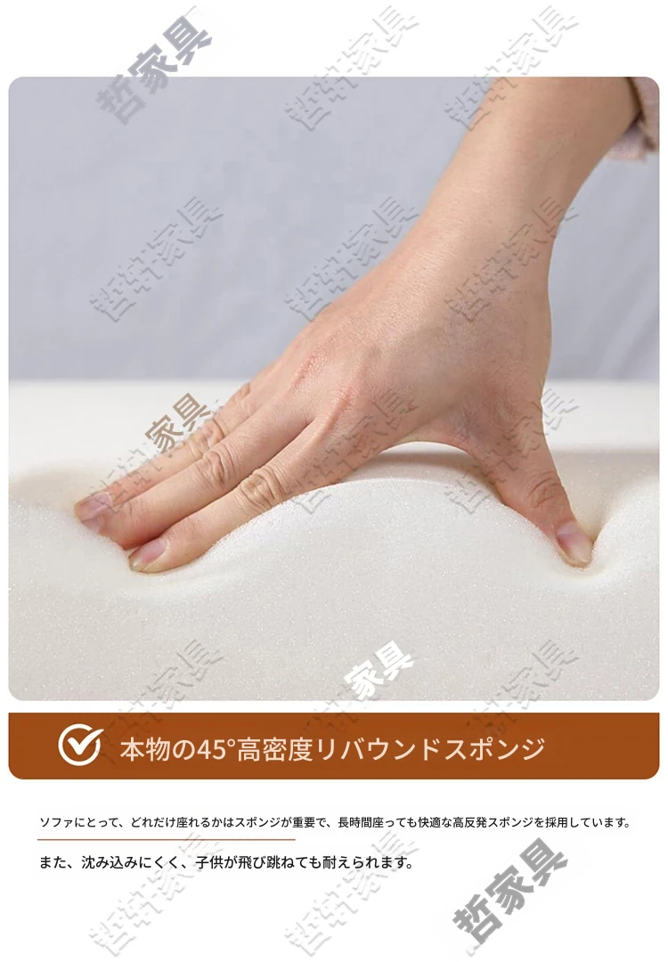 和風雲朵ソファー|無垢材使用の3人掛け|ナチュラルデザイン|小型リビングに最適|クリーミーな風合い|シンプルで洗える布製|快適な座り心地を実現!