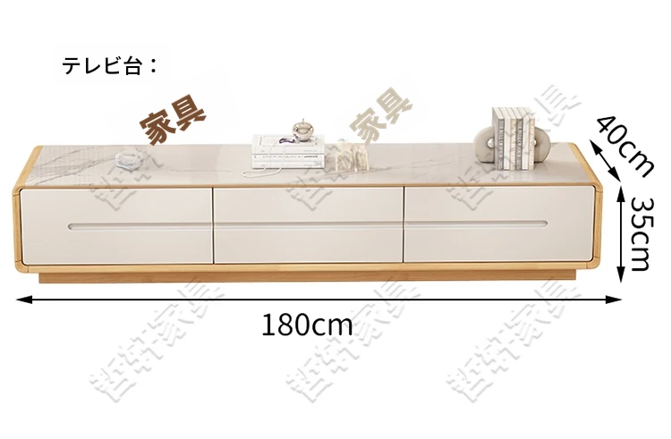 【ナチュラルウッド色】丸角岩板3引き出しテレビキャビネット