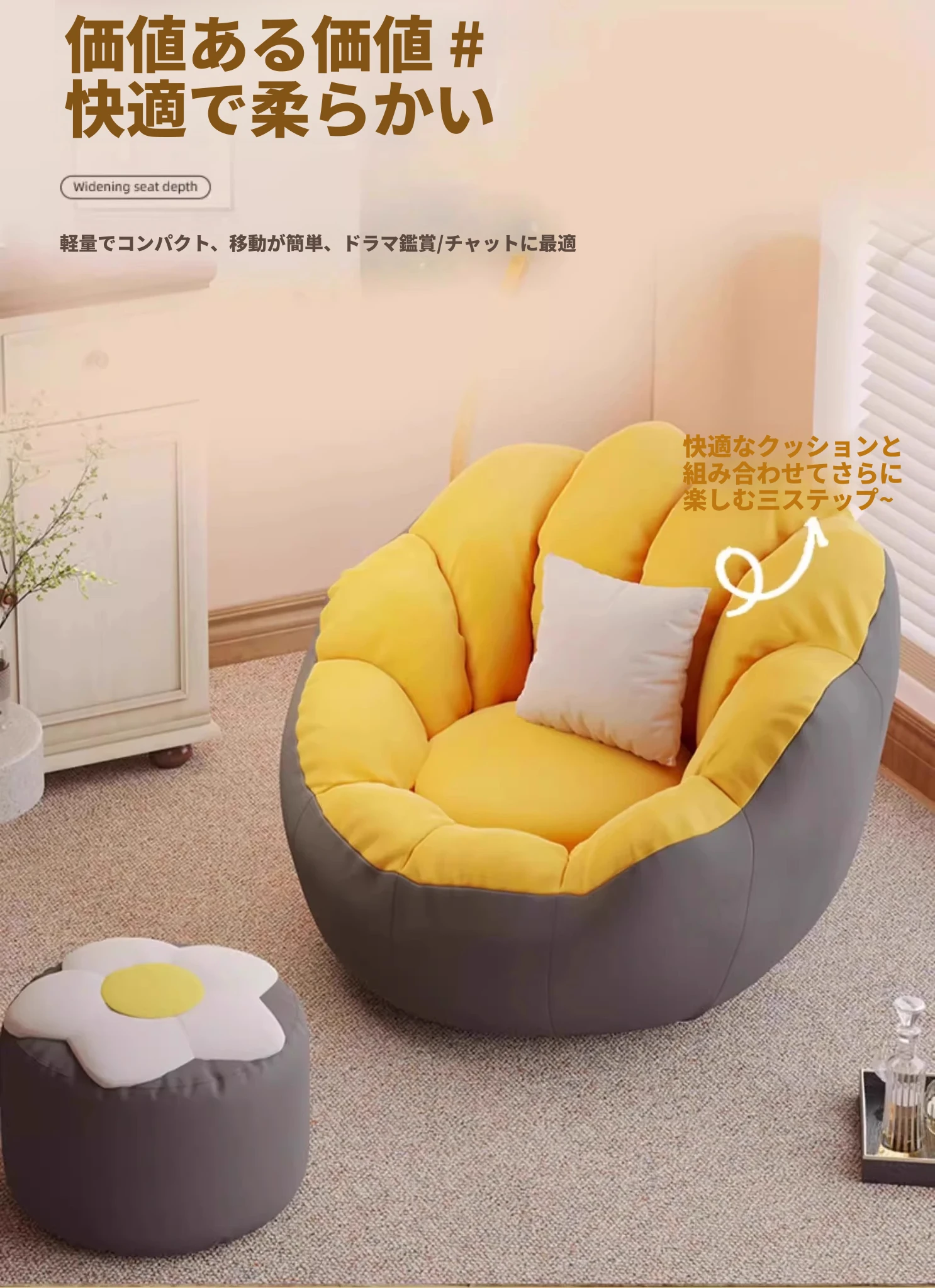 日本の職人技が光る!寝転びも座りも自在なリラックスソファー - シングルサイズ、畳スタイルの豆袋ソファ、寝室にぴったりの小さなサロンチェア。快適さとスタイルを両立!