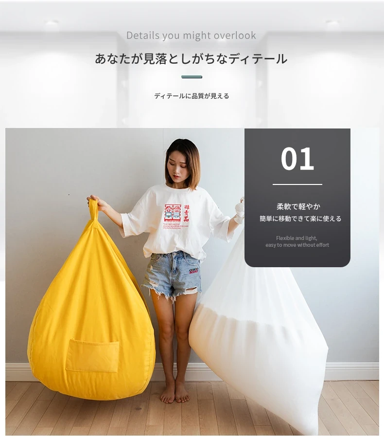 おしゃれなリラックス空間を演出!懶人豆袋ソファ、リビングや寝室にぴったりのタタミソファ。個性的で快適な一人用豆袋ソファで、心地よいひとときをお楽しみください。