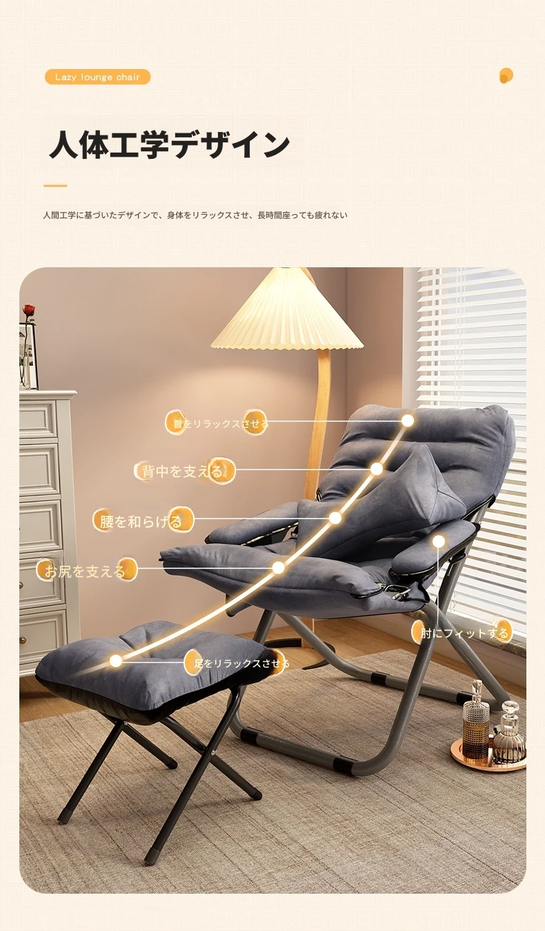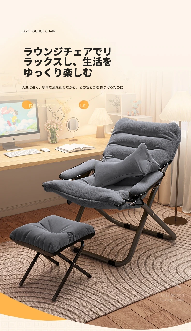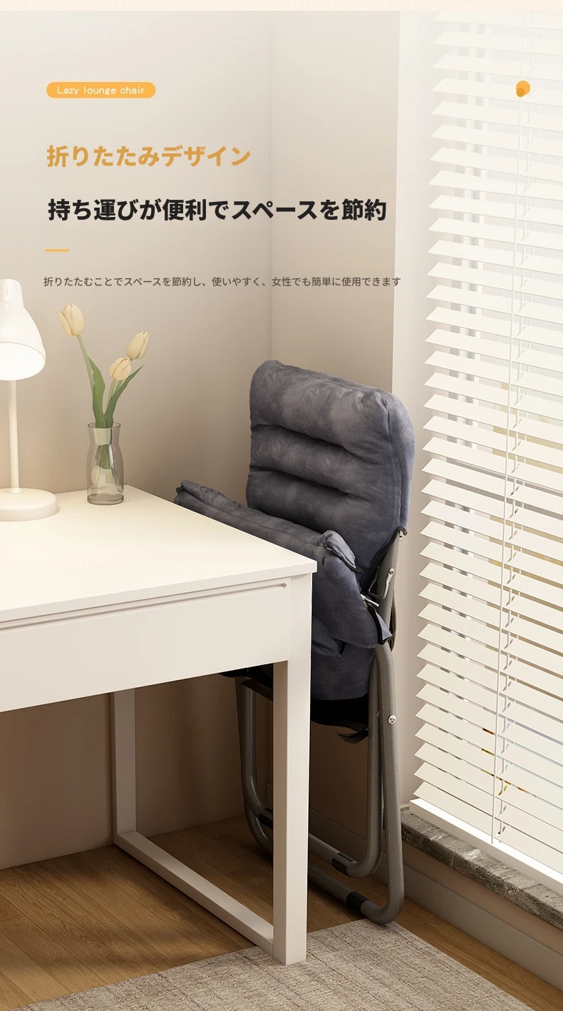 リラックスできるLazyソファ!大学生に最適な背もたれ付きのコンピューターチェア。家庭用・寝室用・バルコニーでのくつろぎタイムにぴったりな一人用リクライニングチェア。長時間の座り作業も快適!