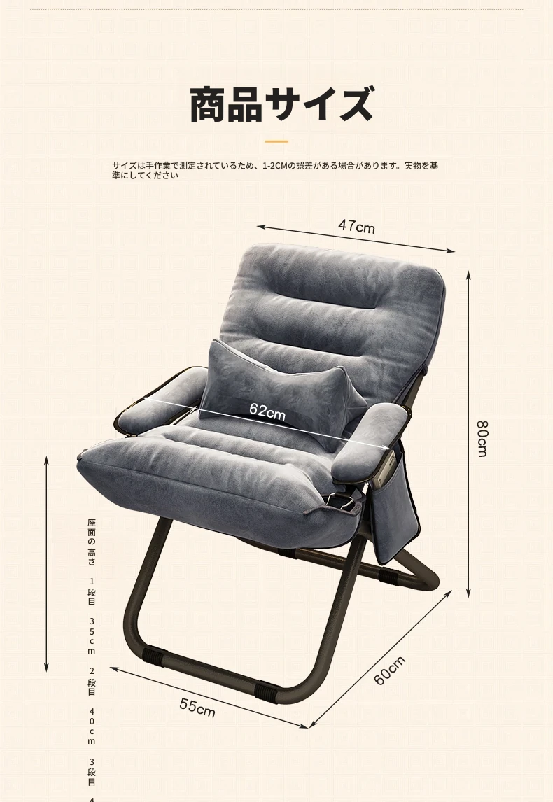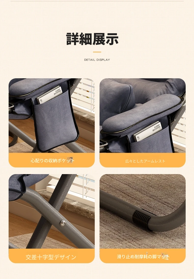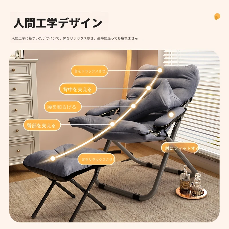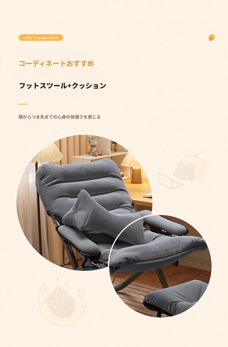 リラックスできるLazyソファ!大学生に最適な背もたれ付きのコンピューターチェア。家庭用・寝室用・バルコニーでのくつろぎタイムにぴったりな一人用リクライニングチェア。長時間の座り作業も快適!