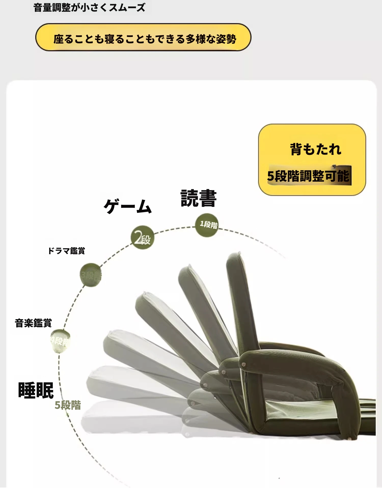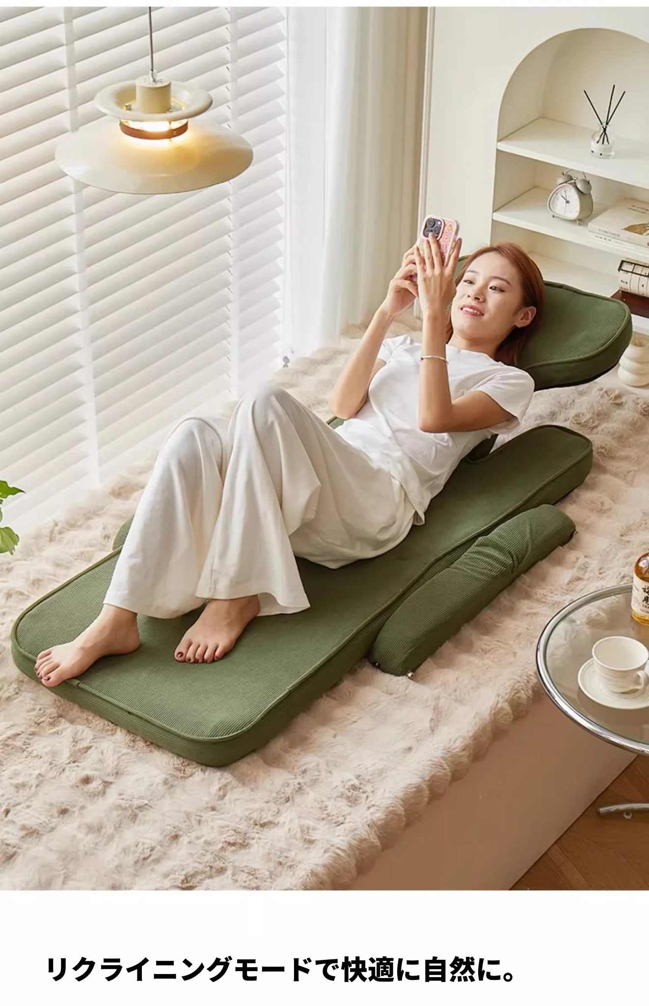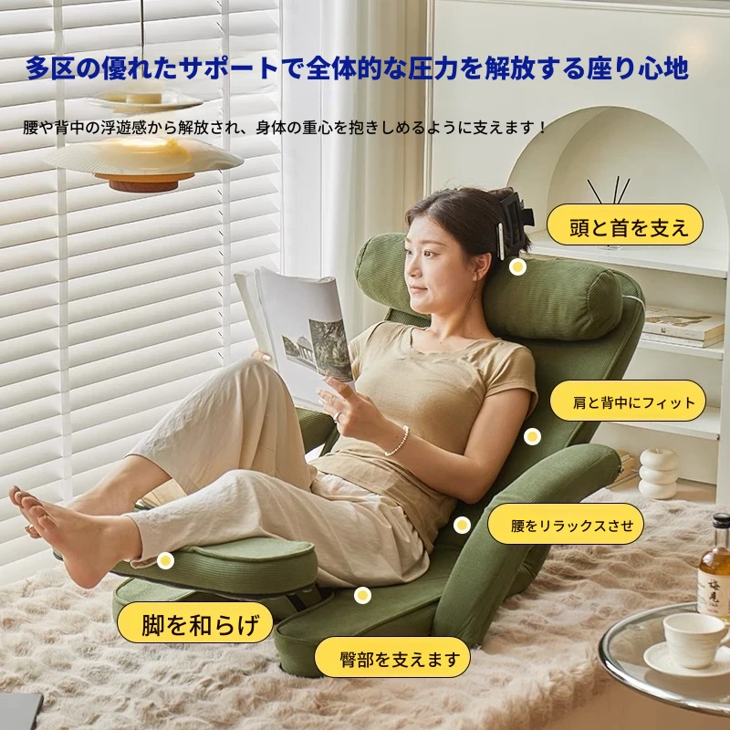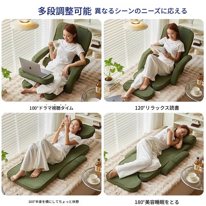 楽なリクライニングソファ、畳スタイルで読書や昼寝に最適!一人用のコンパクト折りたたみチェア、窓際でのリラックスタイムにぴったりのクッション背もたれ付き。快適なひとときをお届けします!