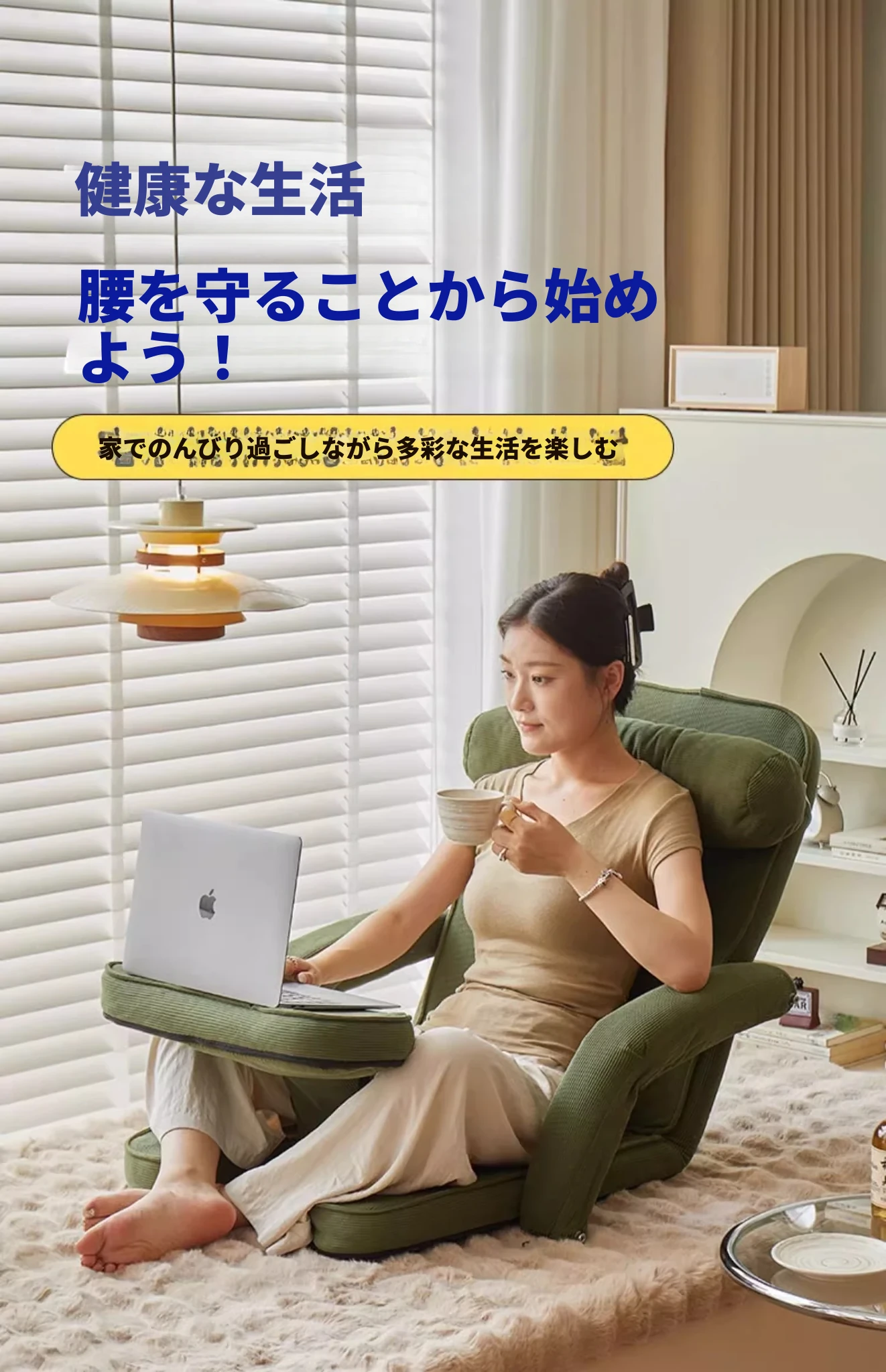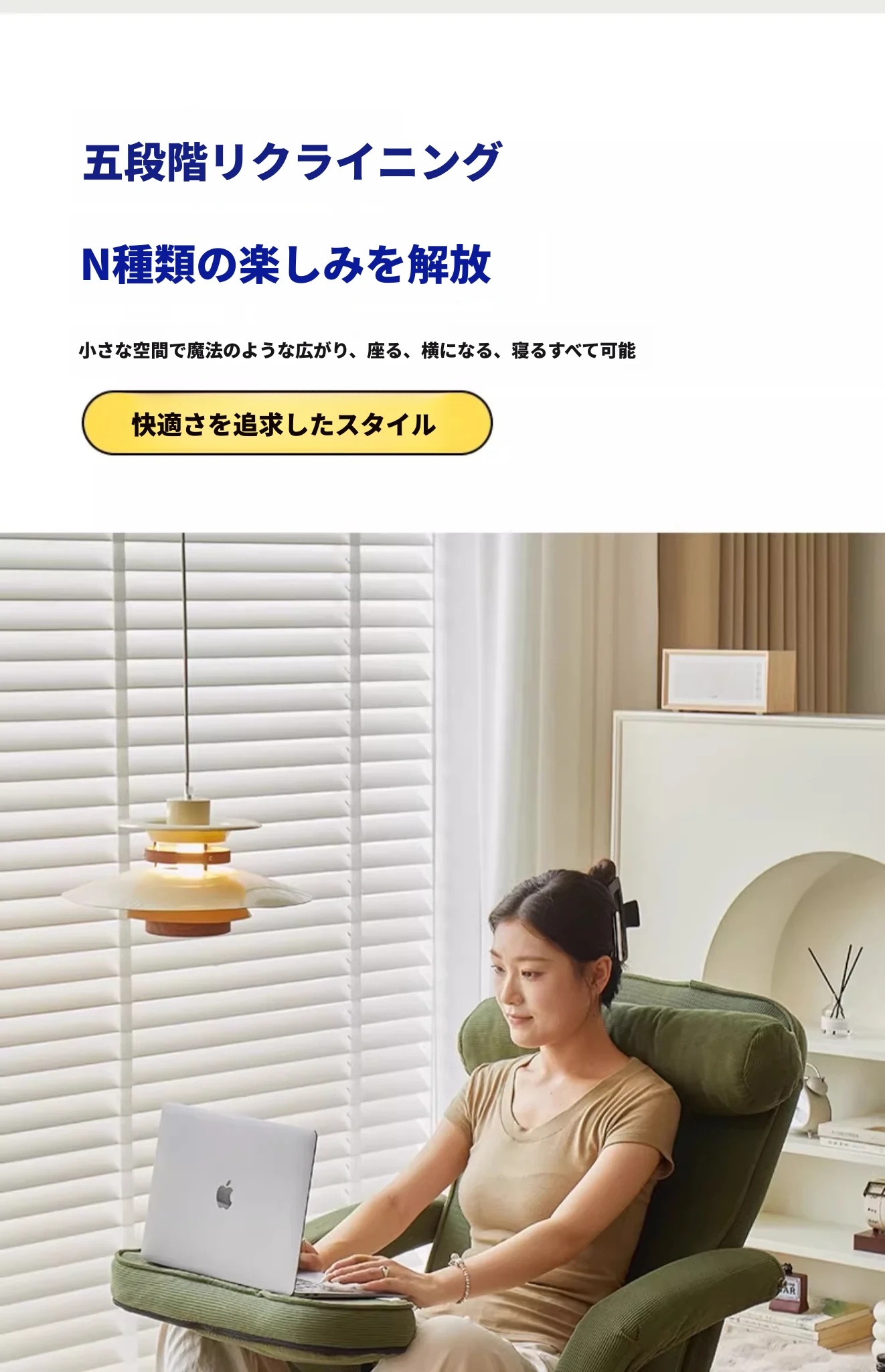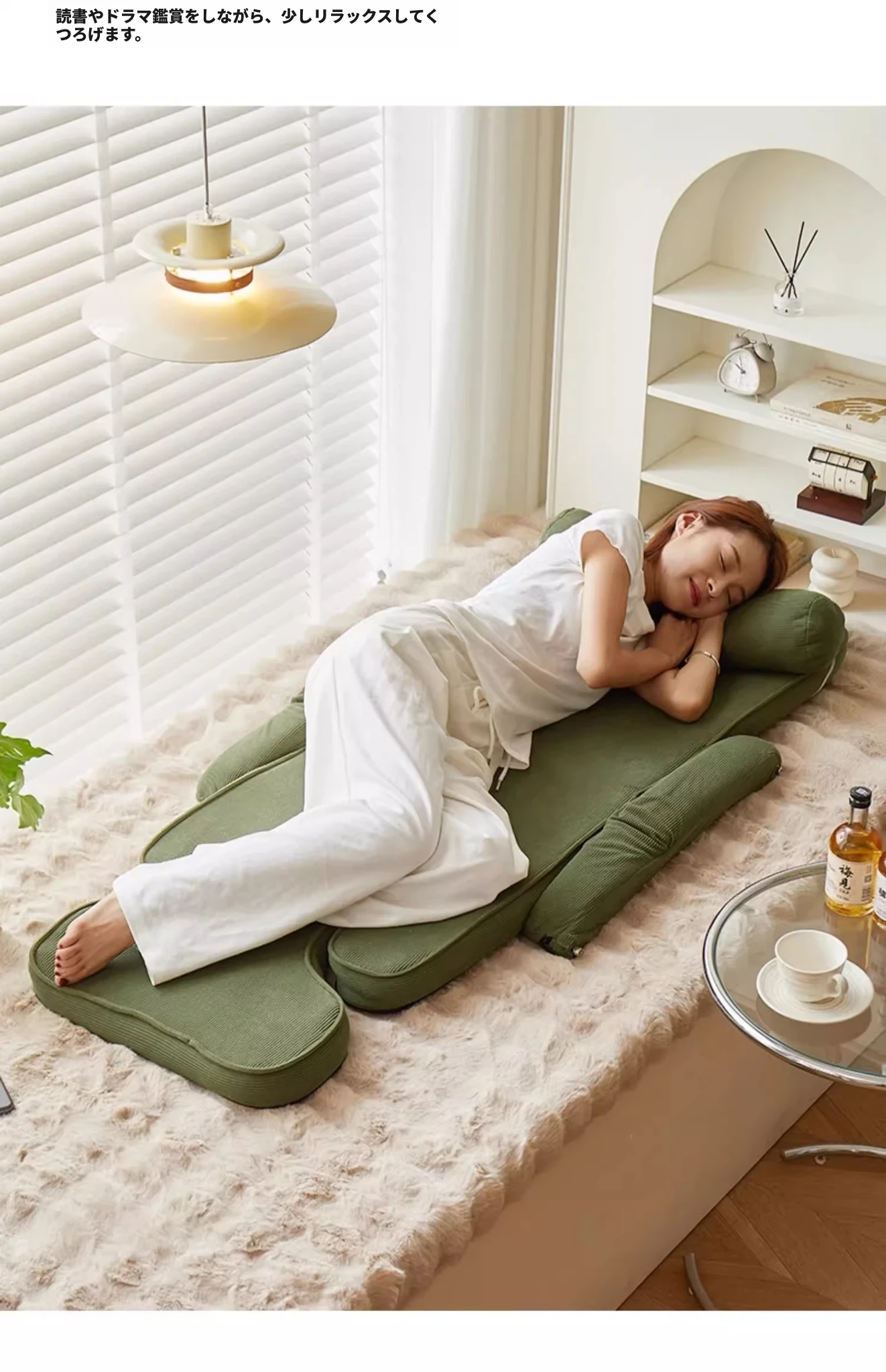 楽なリクライニングソファ、畳スタイルで読書や昼寝に最適!一人用のコンパクト折りたたみチェア、窓際でのリラックスタイムにぴったりのクッション背もたれ付き。快適なひとときをお届けします!
