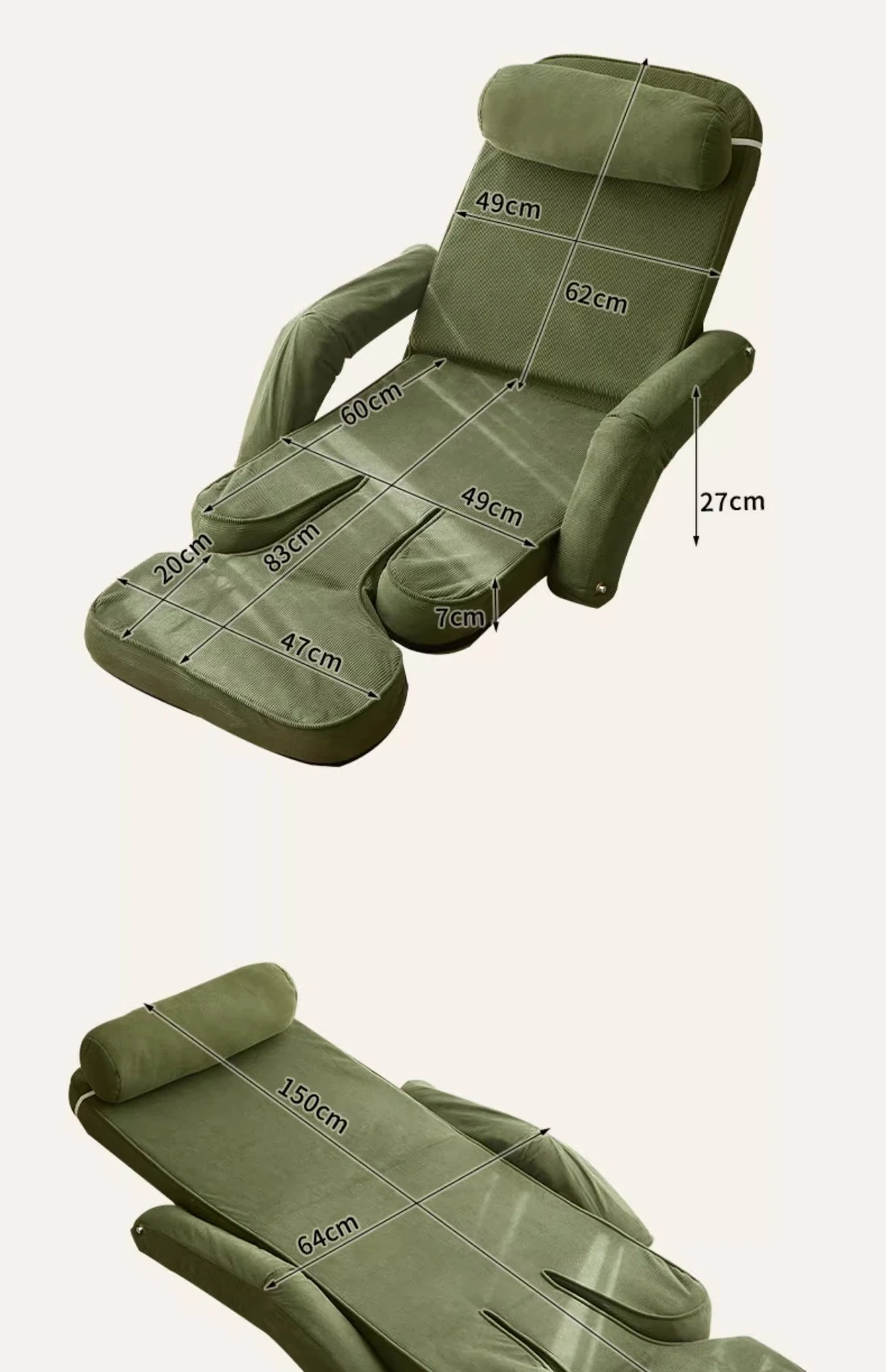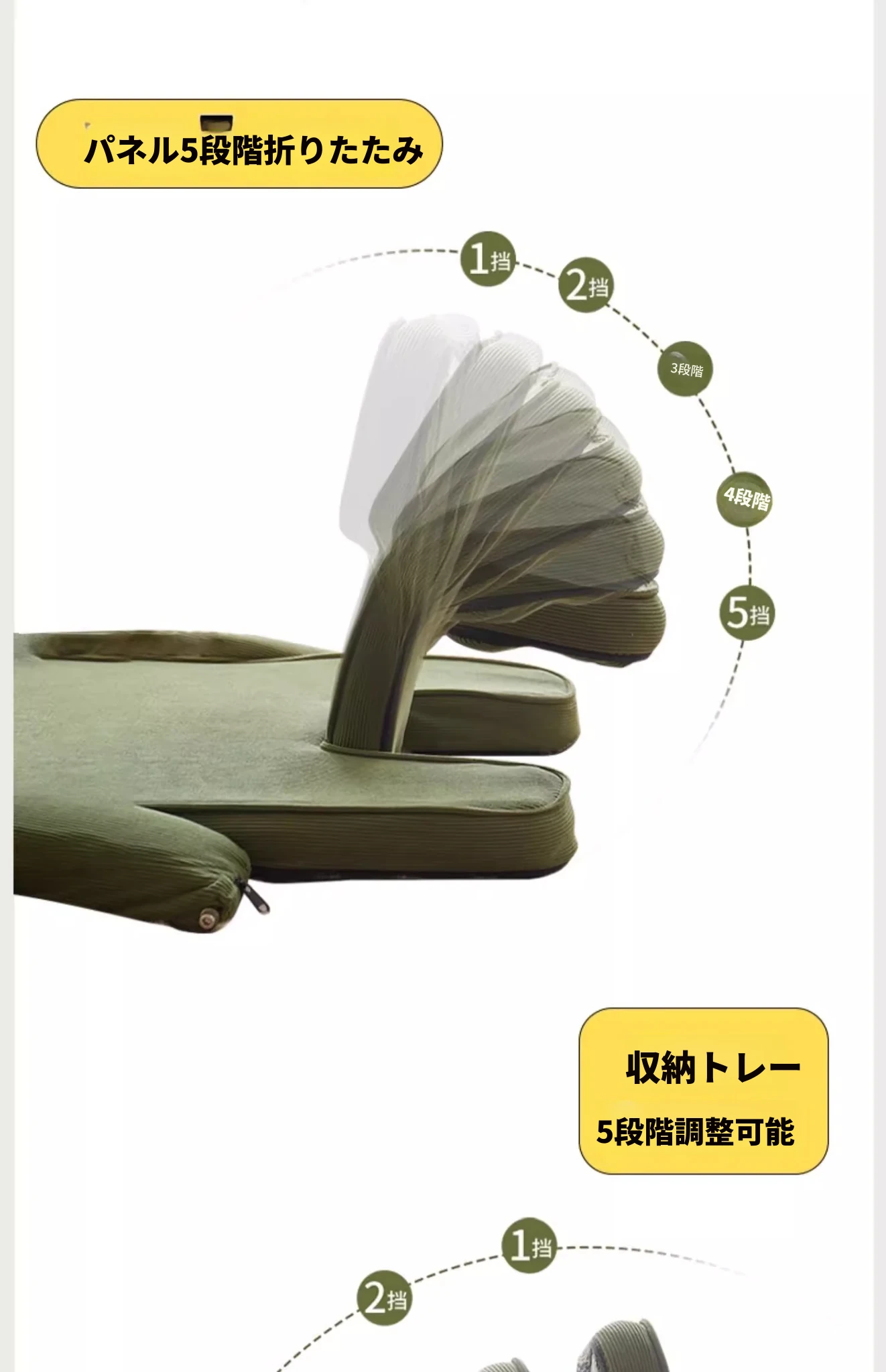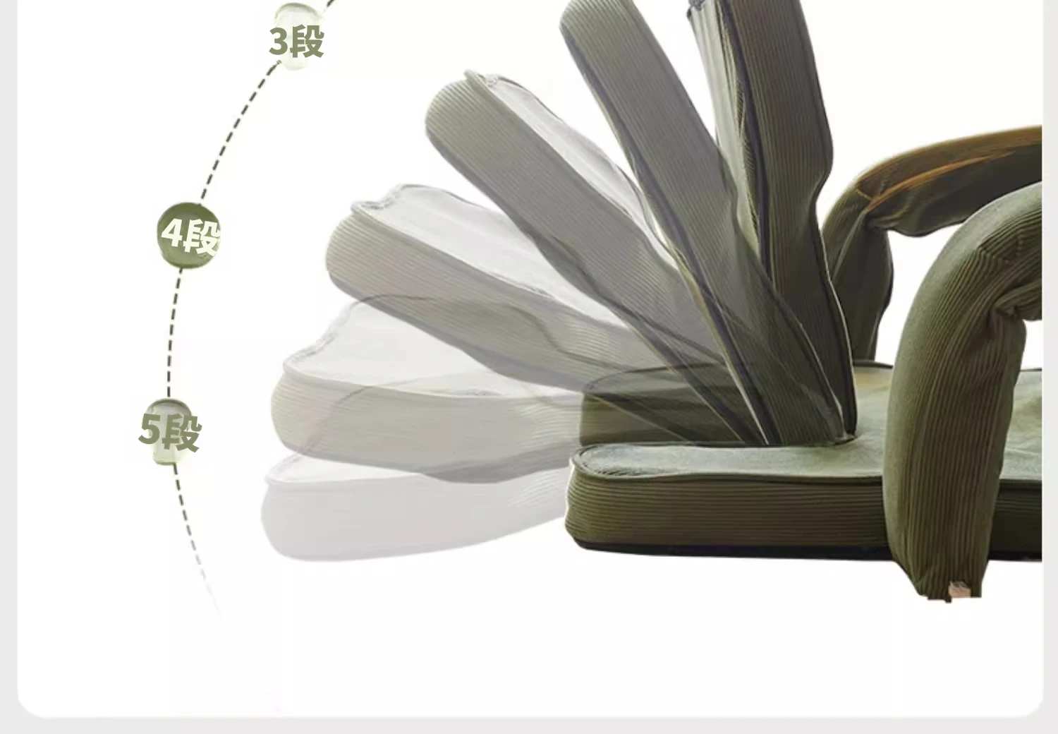 【肌触りの良いコーデュロイ】ダークグリーン(背もたれ+収納トレイ五段階調整可)