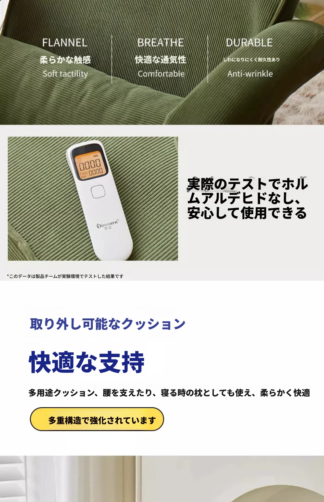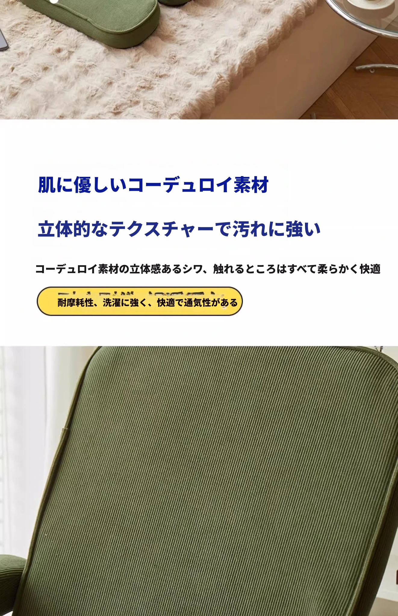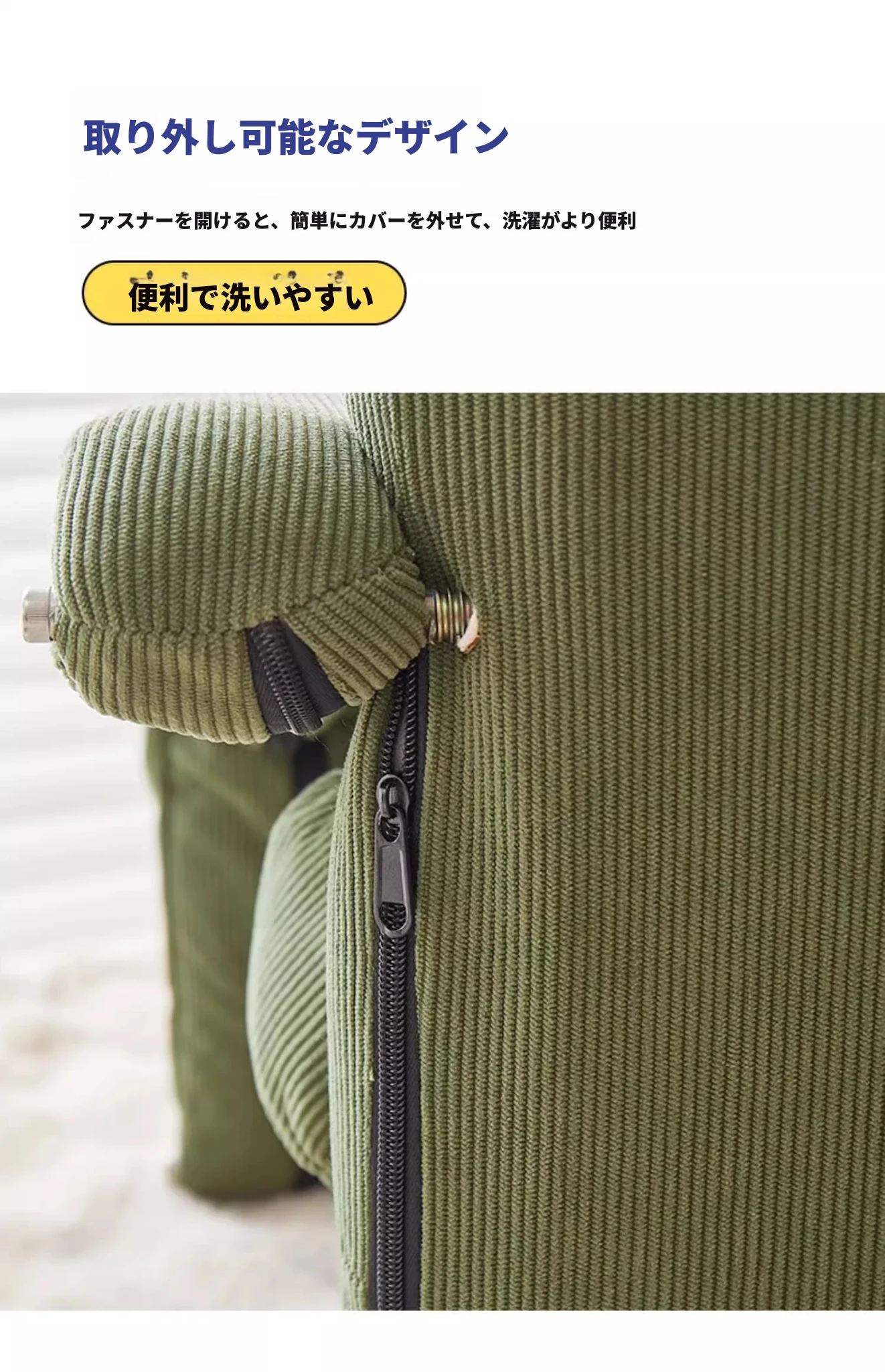【肌触りの良いコーデュロイ】ダークグリーン(背もたれ+収納トレイ五段階調整可)
