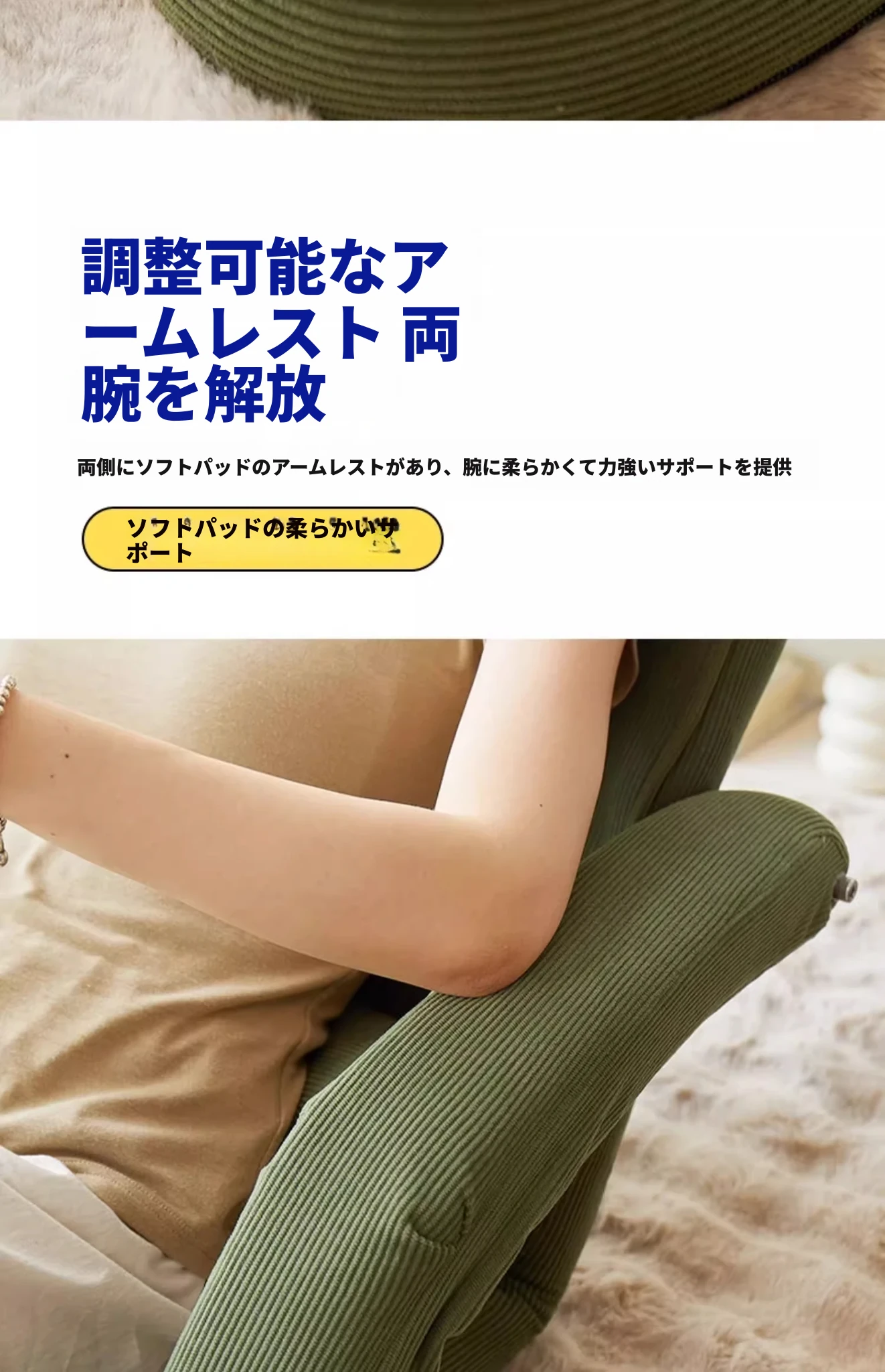 【肌触りの良いコーデュロイ】アイボリー(背もたれ+収納トレイ五段階調整可)